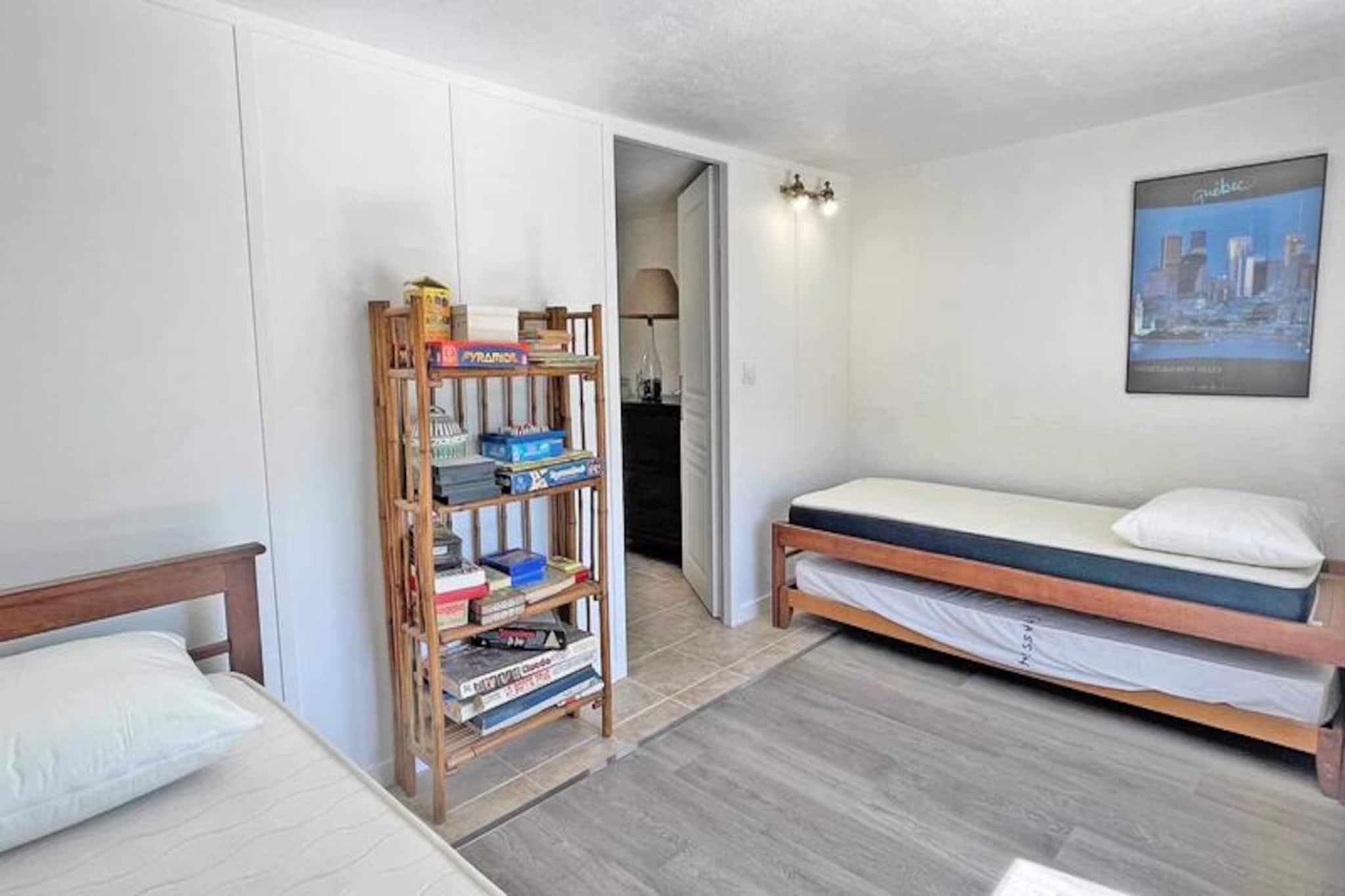 Denne 80 m² store labyrint er perfekt til op til 6 gæster og tilbyder en behagelig plads til familier eller venner. Beliggende kun 50 meter fra Nartelle-stranden, indeholder stueetagen en stue med en hjørnesofa, tv og spiseplads samt et fuldt udstyret køkken med en 4-brænder kogeplade, ovn, opvaskemaskine, køleskab/fryser, Nespresso kaffemaskine, og mere. Et badeværelse med bruser, vaskeskab, toilet og vaskemaskine er også på dette niveau. Ovenpå er aircondition tilgængelig sammen med to soveværelser - det ene med en dobbeltseng og det andet med to enkeltsenge. Mazet er ideelt beliggende nær stranden, restauranter og butikker. Byens centrum ligger 4500 meter derfra, mens butikker kun ligger 1000 meter fra ejendommen. Med alt inden for rækkevidde er det perfekt for strandelskere og dem, der ønsker at udforske lokalområdet. Ejendommen omfatter en terrasse med spisemøbler, en gasgrill og parkering foran huset. Faciliteter såsom Wi-Fi (fiber), køkkenruller og badeværelsesmåtter er til rådighed. Gæsterne kan også leje sengetøj og håndklæder eller anmode om et babysæt. Ejendommen opretholder en fredelig atmosfære med en ikke-fest og ikke-ryger politik.