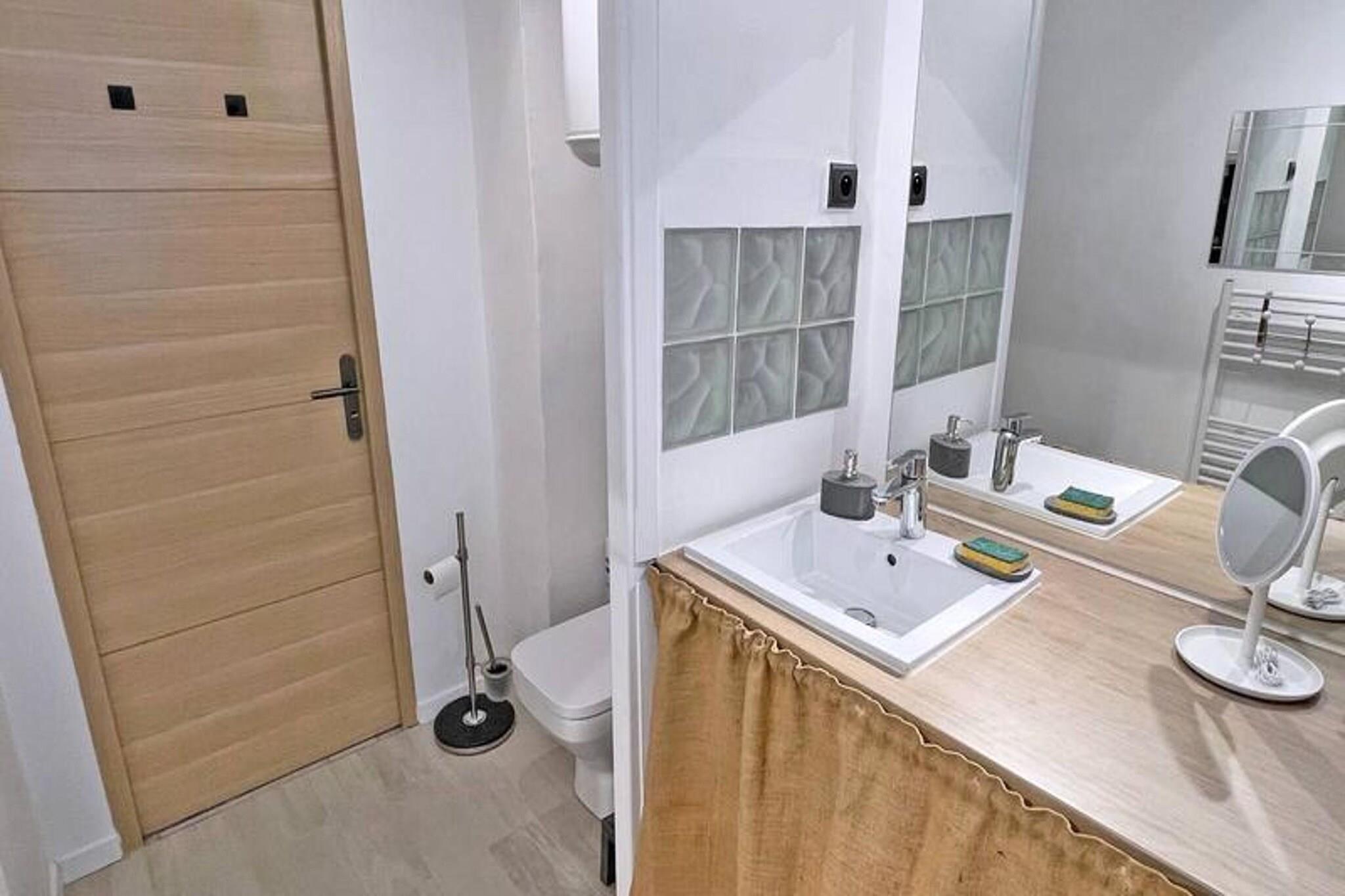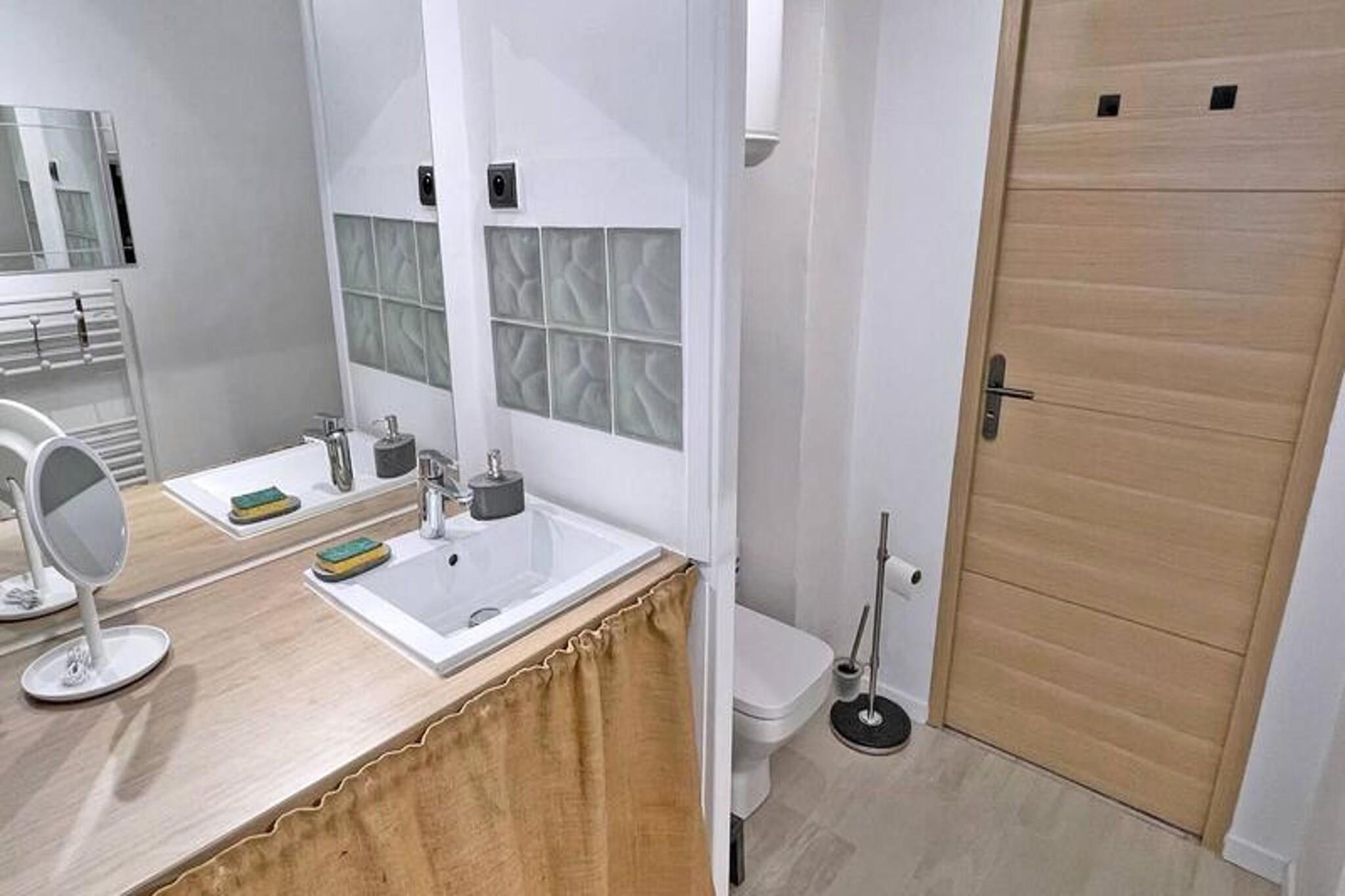 Dette charmerende studie på 26 m², beliggende på 3. sal med elevatoradgang, er et fuldt renoveret og hyggeligt oase, der er ideelt for par eller venner. Hovedværelset har aircondition, en 160 cm "rapido"-sovesofa, et fladskærms-tv og en bar med taburetter. Det åbne køkken er veludstyret med moderne apparater, herunder en 2-brænder induktionskomfur, ovn, mikroovn, Nespresso-maskine og diverse køkkenredskaber. Et badeværelse med bruser, vaskeskab og vaskemaskine fuldender interiøret, mens terrassen med spisemøbler og sofa tilbyder et indbydende sted at slappe af med en åben udsigt. Studioet er perfekt placeret i Sainte-Maxime, kun 250 meter fra byens centrum, 300 meter fra stranden og 100 meter fra de nærmeste butikker. Gæsterne vil nyde bekvemmeligheden ved at gå til lokale attraktioner, caféer og markeder. Den centrale beliggenhed sikrer også nem adgang til alle faciliteter for et virkelig behageligt ophold. Yderligere faciliteter omfatter privat parkering sikret af en port, WiFi (fiber) og en fælles cykelgarage for aktive gæster. Studiet har også en anneks altan til ophængning af vasketøj, hvilket gør det ideelt til både korte og lange ophold. Bemærk venligst, at kæledyr ikke er tilladt, og rygning er forbudt inde i boligen.