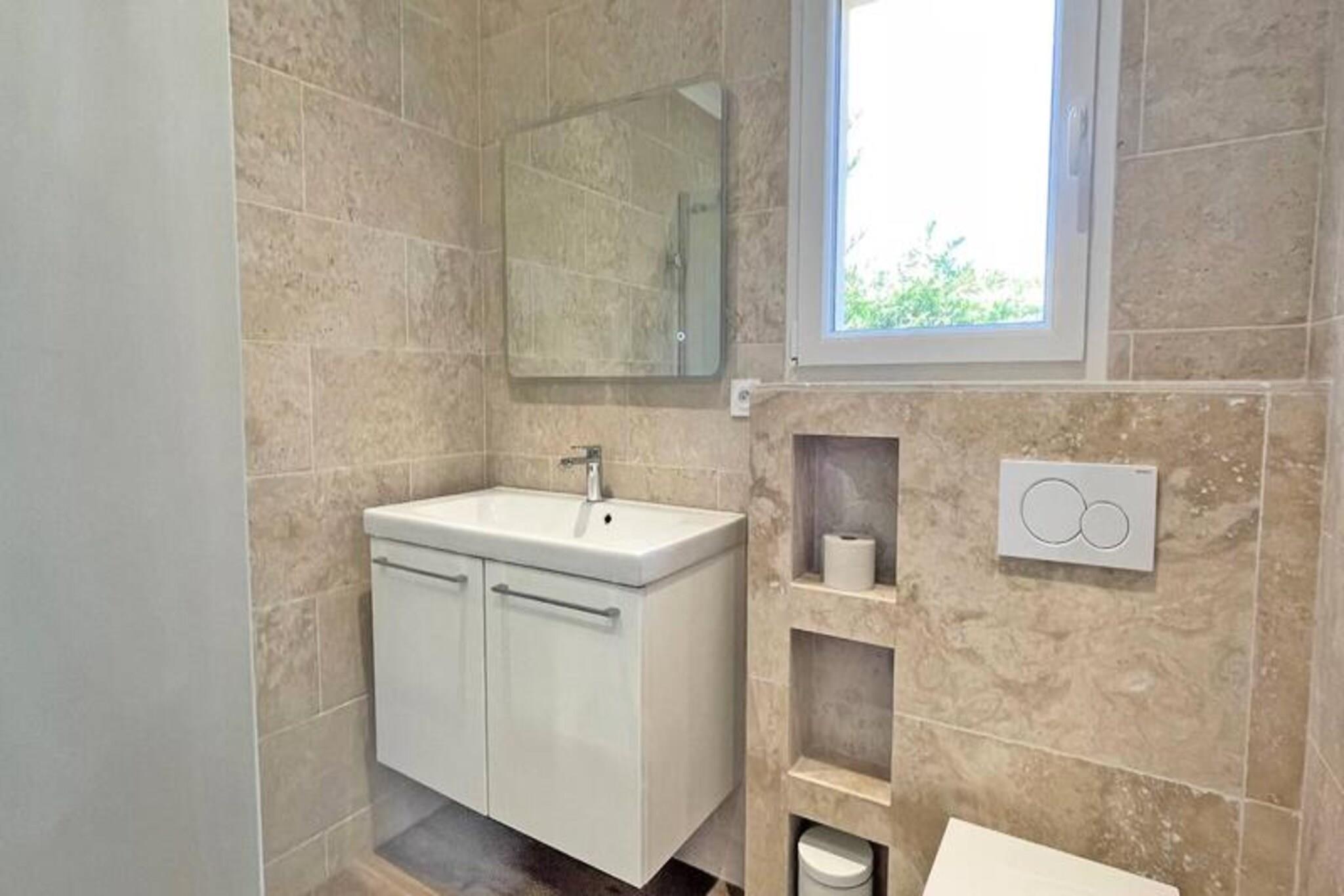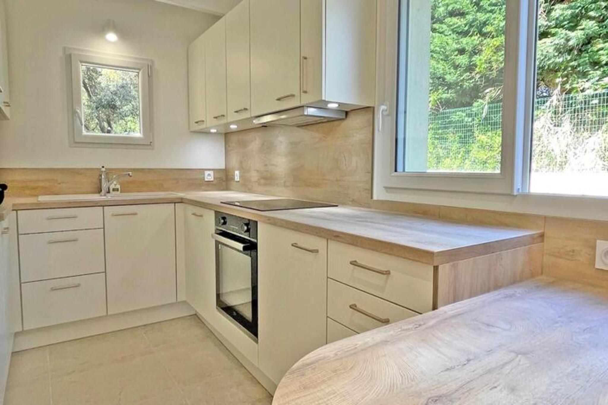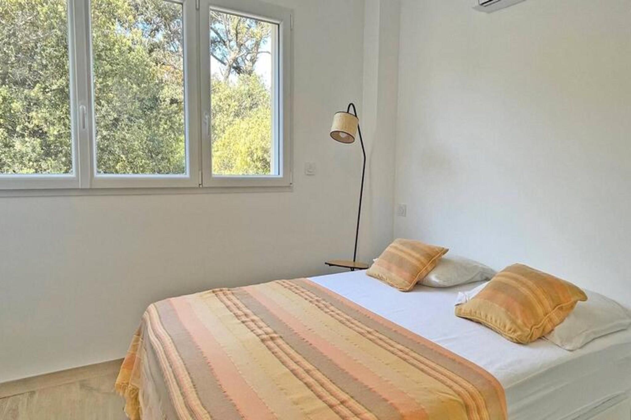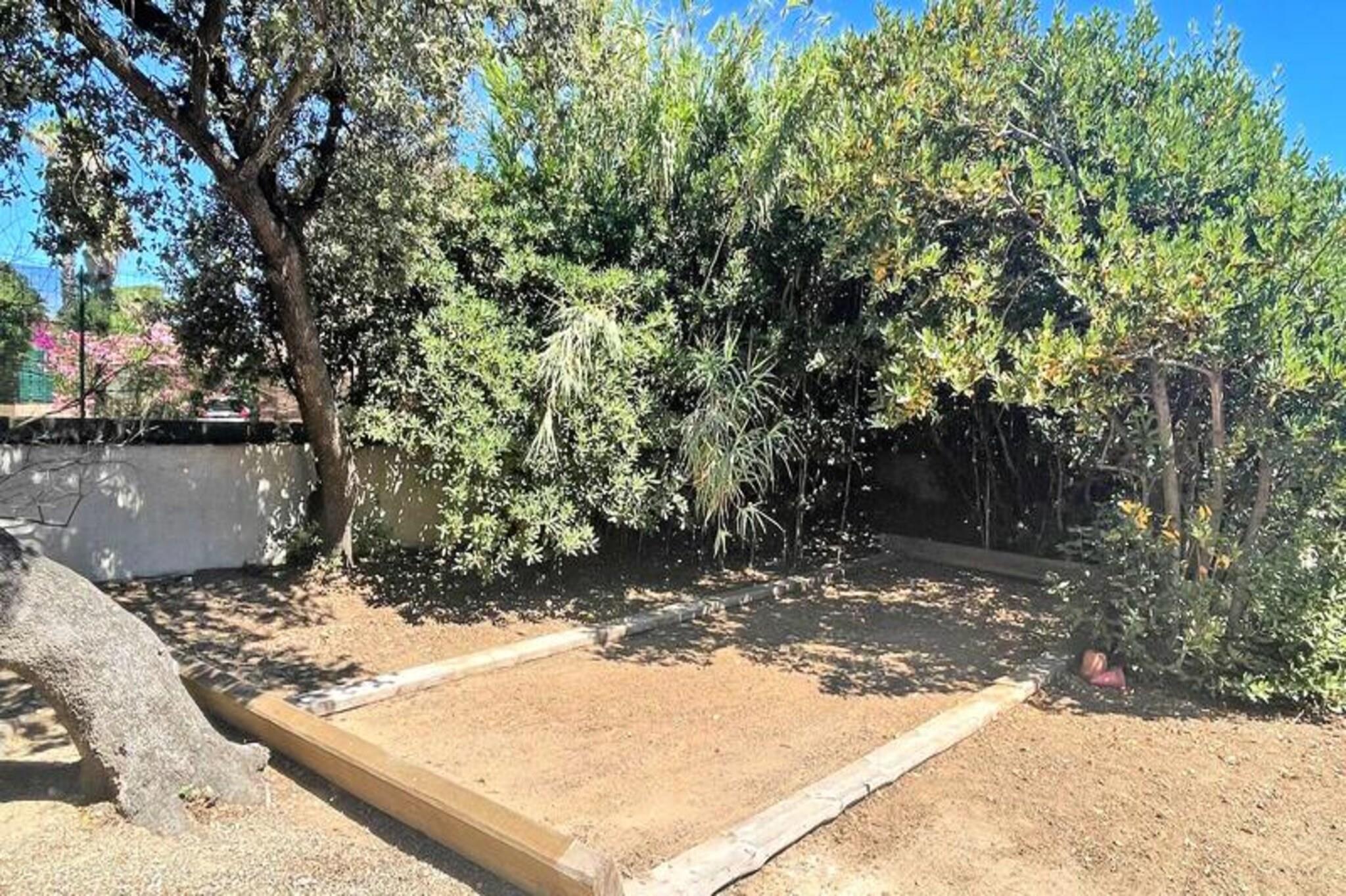 Dette charmerende duplex-hus på 65 m² er beliggende i det populære Nartelle-distrikt, kun 100 meter fra La Nartelle-stranden og flere private strande. Huset kan rumme op til 5 personer og har en stue med en 140 BZ type sovesofa og et åbent, fuldt udstyret køkken med komfur, ovn, opvaskemaskine, vaskemaskine, køleskab, fryser og Nespresso kaffemaskine. Stueetagen indeholder også et badeværelse med bruser, håndvask og toilet. Ovenpå er der to soveværelser med aircondition: et med dobbeltseng og det andet med tre enkeltsenge. Der er et andet brusebad med toilet. Huset er ideelt beliggende for strandelskere, med stranden kun 50 meter væk. Gæsterne kan nyde udendørslivet på den 15 m² store terrasse med havemøbler og en gasgrill. Området er roligt og malerisk, men alligevel tæt på lokale faciliteter, med butikker kun 1.000 meter væk. Byens centrum er en kort køretur væk, cirka 4,5 km fra ejendommen. Yderligere funktioner inkluderer parkering til et køretøj, lomme-WiFi og slutrengøring. Med sin nærhed til stranden og moderne bekvemmeligheder tilbyder dette hus en perfekt base for et afslappet og behageligt ophold i Sainte-Maxime.
