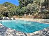 Denne rummelige 5-værelses villa, beliggende i et fredeligt og eftertragtet område, byder på cirka 150m² boligareal på en 1500m² skovklædt grund. Det er perfekt til familier eller grupper, der kan rumme op til 10 personer. Villaen har aircondition i nogle soveværelser og ligger kun 900 m gang fra byens centrum. Stueetagen omfatter et fuldt udstyret køkken, en stor stue med spise- og opholdsstue samt en mastersuite med aircondition, dobbeltseng og eget badeværelse. Der er desuden gæstetoilet og udgang til stor terrasse med havemøbler og gaskogeplade. Haveniveauet har yderligere tre soveværelser: et med en dobbeltseng, et med fire enkeltkøjesenge og et andet værelse med aircondition og en dobbeltseng. Disse værelser har alle udgang til haven eller terrassen. Niveauet indeholder også et badeværelse med badekar, bruser, dobbelt håndvask og vaskemaskine. Villaens ydre byder på en privat 10x5m swimmingpool med sikkerhedsalarm, samt terrasser til spisning og afslapning. For ekstra bekvemmelighed inkluderer villaen Wi-Fi, hvilket gør den velegnet til fjernarbejde. Parkering er tilgængelig foran huset eller i gården (med plads til 2-3 køretøjer). Kæledyr er tilladt efter anmodning og mod et tillægsgebyr. Ejendommen er beliggende i gåafstand fra centrum, strand og butikker. Bemærk venligst, at der er en stejl stigning for at få adgang til villaen, og at der kræves et depositum og turistskat.