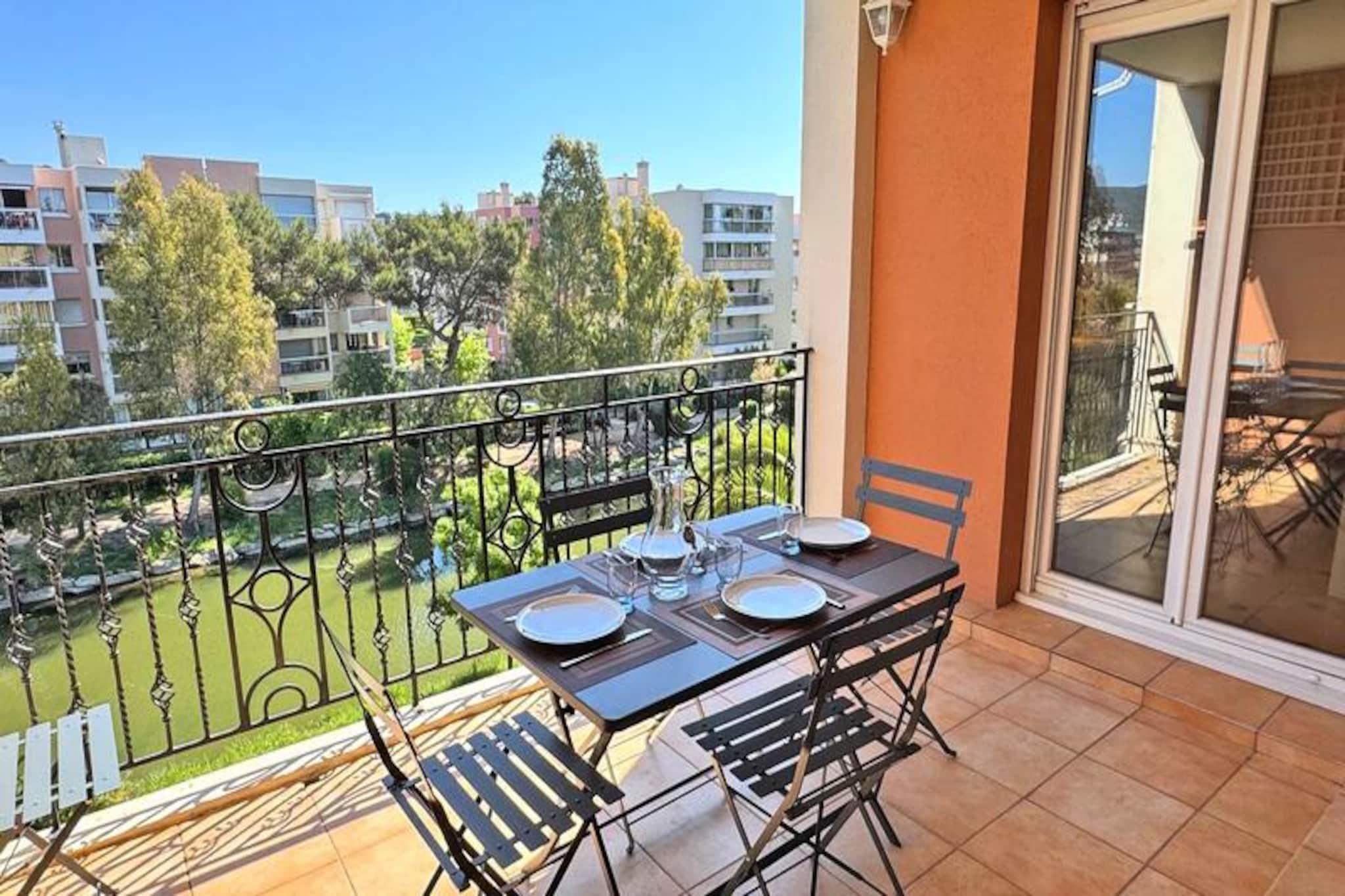 Væk dine sanser i hjertet af den franske riviera i denne elegante lejlighed i Port Marine Residence, hvor charmen ved Sainte-Maxime møder moderne komfort. Beliggende på tredje sal med elevatoradgang tilbyder dette 67 m² store tilflugtssted en rolig oase kun få skridt fra de gyldne strande og det pulserende bycentrum. Forestil dig at nippe til din morgenkaffe på terrassen med udsigt over den rolige Préconil-flod, mens middelhavsbrisen fylder luften. Dette er din port til Saint-Tropez-bugten, en destination kendt for sin glamour, kultur og naturlige skønhed. Indenfor er lejligheden omhyggeligt designet til at rumme op til seks gæster. Den airconditionerede stue indbyder til afslapning med sin hyggelige sovesofa, lænestole og en spiseplads, der åbner ud til terrassen. Det åbne køkken er fuldt udstyret med moderne apparater, perfekt til at tilberede måltider til servering under åben himmel. To komfortable soveværelser tilbyder afslappende tilflugtssteder: det ene med en dobbeltseng og det andet med alsidige enkeltsenge, der kan sættes sammen. To badeværelser, det ene med bruser og det andet med badekar, sikrer bekvemmelighed for alle gæster. Yderligere faciliteter inkluderer Wi-Fi, vaskemaskine og privat parkeringskælder for din ro i sindet. Gå udenfor og oplev Sainte-Maximes herligheder. Du kan slentre blot 350 meter til sandstrandene, eller udforske det charmerende bymidte, kun 500 meter væk, med dets butikker, caféer og provencalske markeder. For en dag med eventyr kan du tage en kort færgetur til Saint-Tropez, eller begive dig ud i de omkringliggende bakker for at vandre og nyde den betagende udsigt. Selve ejendommen tilbyder en swimmingpool (sæsonbestemt) til afslappende eftermiddage under solen. Uanset om du søger en romantisk ferie, en familieferie eller en base for at udforske Côte d'Azur, tilbyder denne lejlighed den perfekte blanding af afslapning og spænding. Lad Sainte-Maximes charme fange dig og skabe minder for livet.
