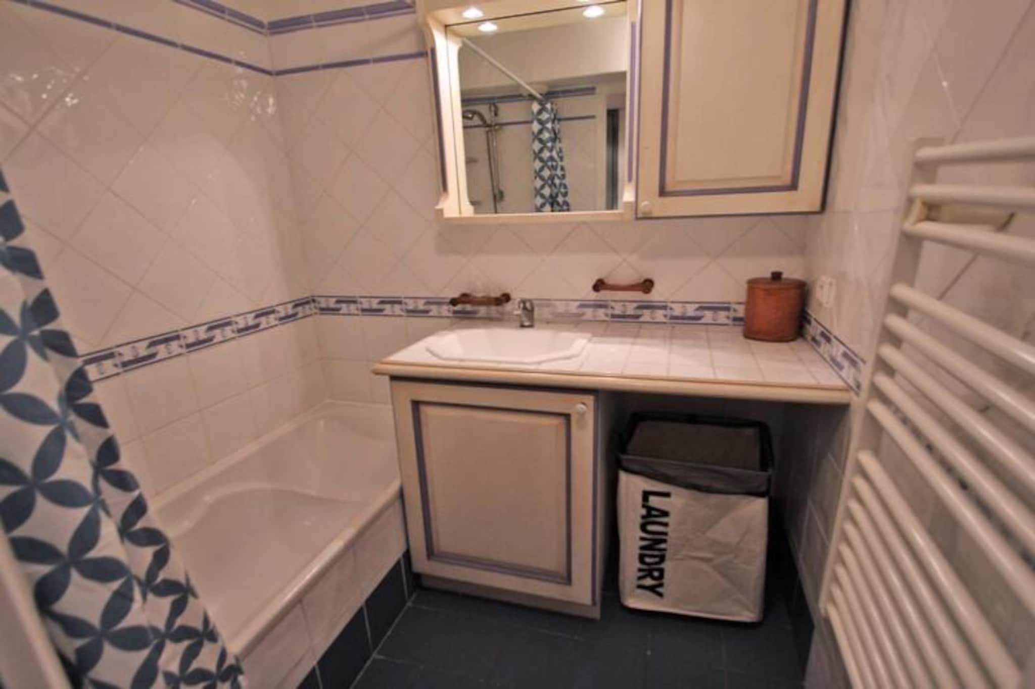 Med udsigt over floden 'Le Préconil's rolige vand tilbyder denne moderne 3-værelses lejlighed i Port Marine Residence en rolig oase kun få skridt fra Sainte-Maximes pulserende hjerte. Med sit moderne design og gennemtænkte faciliteter er dette feriested perfekt til familier eller små grupper, der søger komfort og bekvemmelighed ved den franske riviera. Residensen kan prale af en swimmingpool og aircondition, hvilket sikrer et afslappende ophold uanset årstiden. Indvendigt har lejligheden en lys og luftig opholdsstue med en hyggelig lounge, et spisebord og direkte adgang til en privat terrasse, hvor du kan nyde måltider under åben himmel med udsigt over poolen og floden. Det åbne køkken er fuldt udstyret med moderne apparater, herunder opvaskemaskine, ovn og Dolce Gusto-kaffemaskine, hvilket gør madlavning til en leg. Soveværelset tilbyder en fleksibel sengeopdeling, et stort skab og et ensuite brusebad, mens det andet soveværelse har to enkeltsenge og rigelig opbevaringsplads. Et andet badeværelse med badekar og et separat toilet bidrager til bekvemmeligheden. Denne lejlighed ligger kun 350 meter fra stranden og 450 meter fra byens centrum, og du er i gåafstand fra Sainte-Maximes charmerende butikker, restauranter og livlige markeder. Uanset om du slentrer langs promenaden, udforsker de nærliggende strande eller tager en færge til Saint-Tropez, tilbyder beliggenheden uendelige muligheder for eventyr. Med gratis parkering på stedet, lomme-Wi-Fi og kæledyrsvenlige muligheder kombinerer denne lejlighed moderne komfort med en uovertruffen beliggenhed, hvilket gør den til den ideelle base for din Côte d'Azur-ferie.