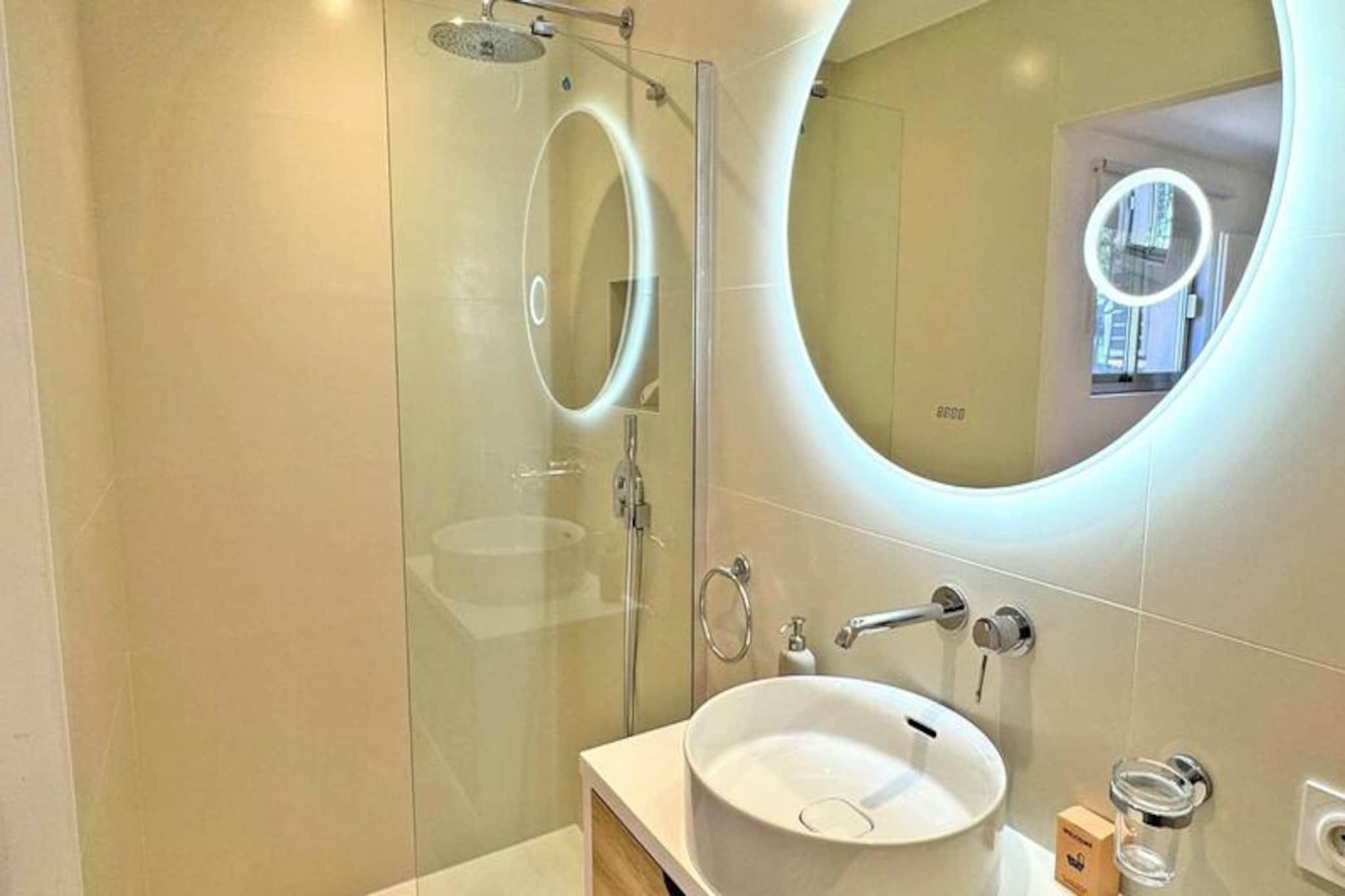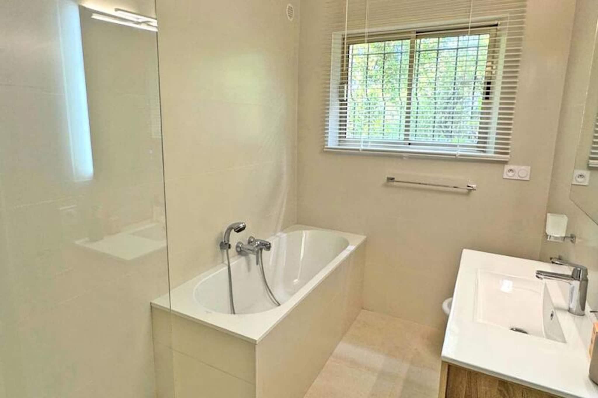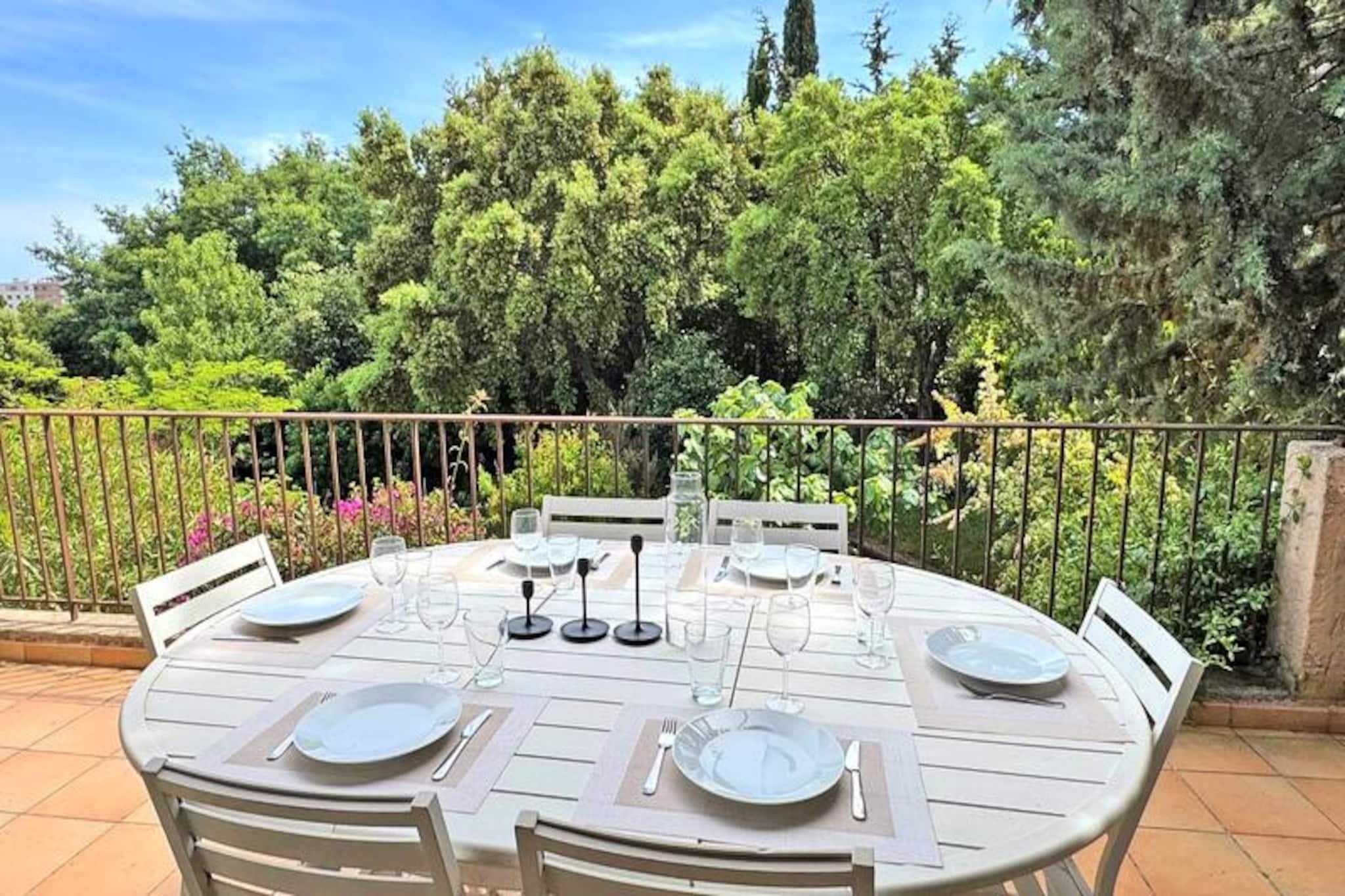I det fredfyldte Grand Pin Estate tilbyder denne smukt renoverede 4-værelses lejlighed et idyllisk tilflugtssted for familier eller venner, der søger en blanding af moderne komfort og kystcharme. Kun 1,3 km fra byens centrum og stranden kombinerer denne bolig i stueetagen bekvemmelighed med ro, hvilket gør den til den perfekte base for jeres middelhavsferie. Forestil dig at vågne op til delvis havudsigt, nyde morgenmaden på den rummelige 30 m² store terrasse og planlægge din dag i de solbeskinnede omgivelser. Lejligheden kan prale af en lys, airconditioneret opholdsstue med spiseplads, stue og et fuldt udstyret køkken med high-end apparater som et amerikansk køleskab, induktionskogeplade og Nespresso-maskine. Tre gennemtænkt designede soveværelser giver afslappende nætter: to med dobbeltsenge og et med køjesenge, ideelt til børn. Soveværelset har et eget brusebad, mens det store badeværelse tilbyder en luksuriøs bruseniche og badekar. Yderligere faciliteter såsom et vaskerum, WiFi egnet til fjernarbejde og privat parkering til to biler sikrer et problemfrit ophold. Gå udenfor og nyd måltider under åben himmel på terrassen, komplet med spisemøbler og en elektrisk stegepande. De rolige omgivelser og den private port forstærker følelsen af ??eksklusivitet, mens nærheden til butikker, strande og det pulserende bycentrum sikrer, at du aldrig er langt fra begivenhedernes centrum. Uanset om du udforsker lokale markeder, slapper af ved havet eller nyder regionens kulinariske lækkerier, placerer denne lejlighed dig i hjertet af det hele. Med sit moderne design, førsteklasses beliggenhed og gennemtænkte faciliteter lover denne Grand Pin Estate-lejlighed en uforglemmelig ferieoplevelse. Kæledyr er velkomne efter anmodning, hvilket gør den til et ideelt valg for hele familien. Book dit ophold og skab varige minder ved den fantastiske middelhavskyst.