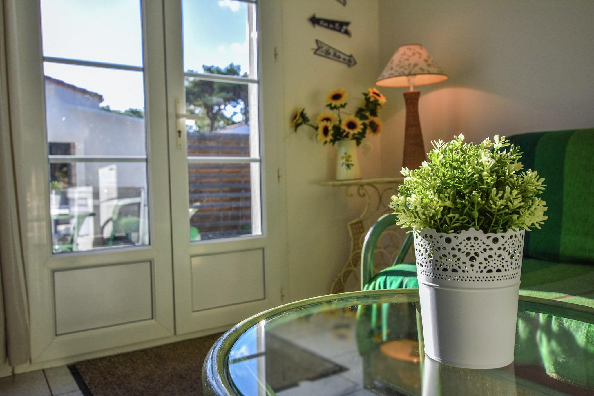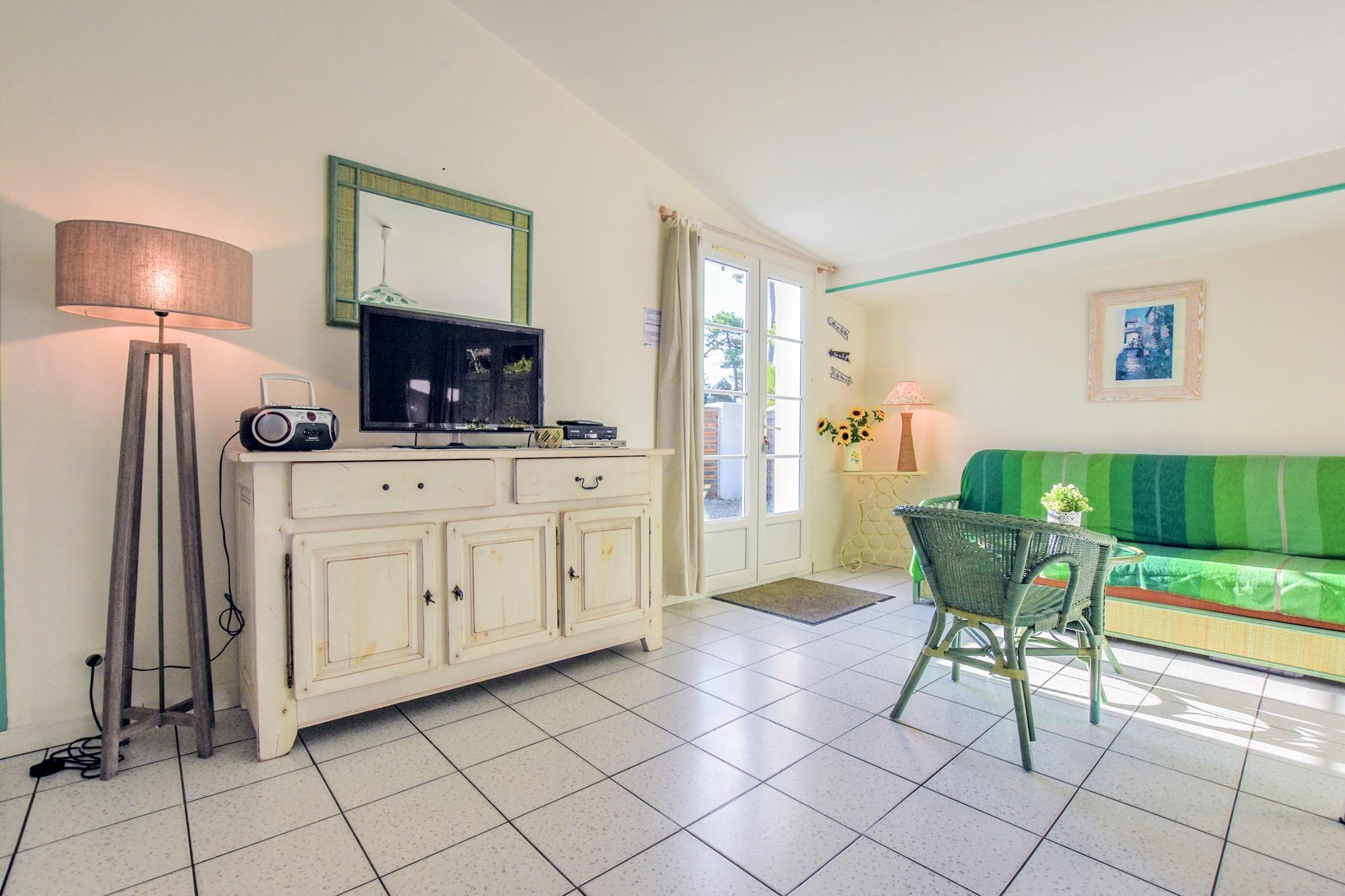 Drømmer du om at tilbringe din ferie på en fransk ø? L 'Île-de-Ré, der er tilgængelig med bro, er stedet for dig. Dette feriehus ligger i nærheden af Sainte-Marie-de-Ré, kun 300 m fra stranden og havet. Indkvarteringen er på et niveau og vinduerne og grønne skodder er i regionens karakteristiske stil. Hvis du har børn, kan du lade dem lege i legepladsen, der er specielt designet til dem og tilgængelig ved en port fra din terrasse. Lejeprisen er todelt, men takket være hegnet, det giver fuldstændig privatlivets fred. Øen er et sandt paradis for cyklister, de kan krydse hele længden og bredden af det langs cykelstier. Stranden har en strand med livreddere kun 2 km væk på cykel. Den befæstede by Saint -Martin-de-Ré (8 km) har en citadel og en lille havn med fantastisk mad og restauranter. Østersne er et must! Den historiske havneby La Rochelle (13 km) er let tilgængeligt med bil. den gamle havn og besøge tårnet Saint Nicolas fra det 14. århundrede du vil også finde det største akvarium i Europa. Les Baleines (24 km) og dets fyr er placeret på øens vestligste punkt. Derfra har du en fantastisk udsigt over Atlanterhavet. Den gamle søby Rochefort (ca. 50 km) er også værd at besøge. Der kan du beundre skibet Hermione, en berømt gengivelse af General Lafayette fregat. Igen med bil kan du også besøge Marais Poitevin Regional Natural Park (33 km).