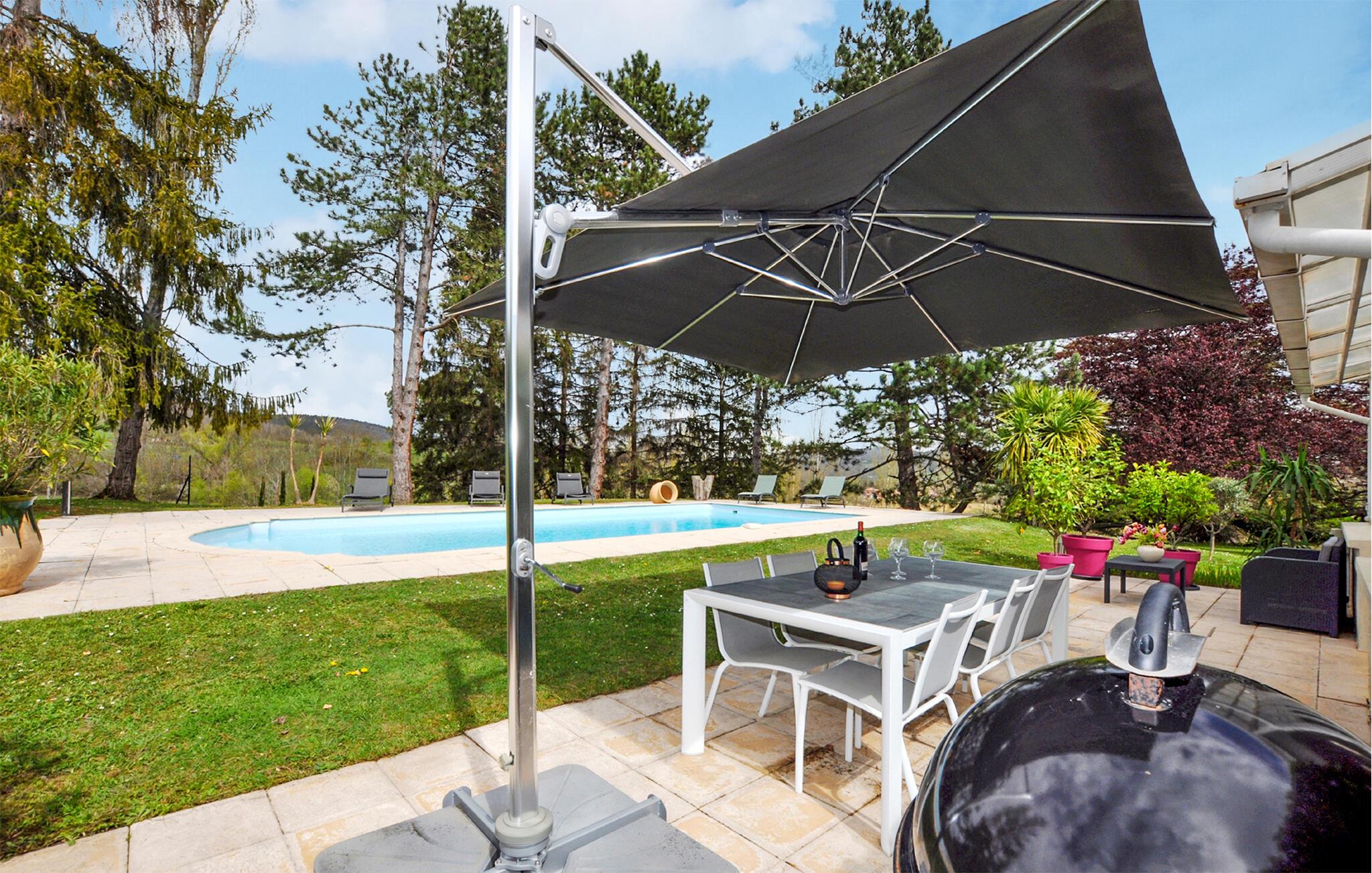 På de varme dage kan I nyde det gode vejr fra morgen til aften på terrassen og køle jer af i poolen, når varmen er lige ved at få jer. Børnene kan løbe rundt og spille bold i den smukt anlagte have, mens de voksne tilbereder saftige bøffer på grillen og lægger planer for de kommende dage.