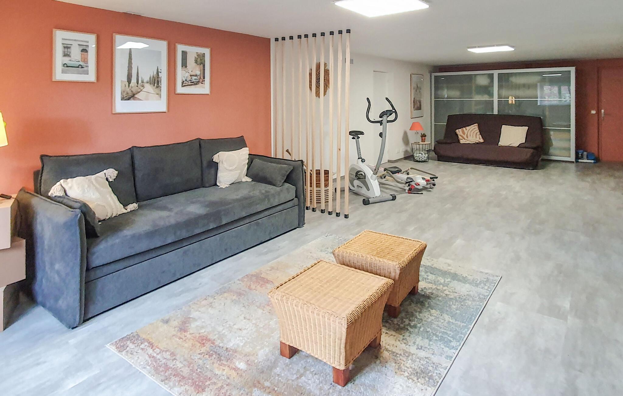 Hvis I er på udkig efter en skøn base for en ferie i naturskønne omgivelser, er dette rummelige hus i Tabre det helt rigtige valg for jer. Udover de mange kvadratmeter kan I glæde jer til de mange fine faciliteter, der gør jeres ophold helt og aldeles bekymringsfrit. Huset er flot indrettet med et komfortabelt soveværelse, endnu et værelse med sovesofa og et fitness-område, så I kan holde formen ved lige. Om aftenen kan I, hvis vejret bider lidt fra sig, sætte jer godt til rette i lænestolene med hver jeres bog i stuen.