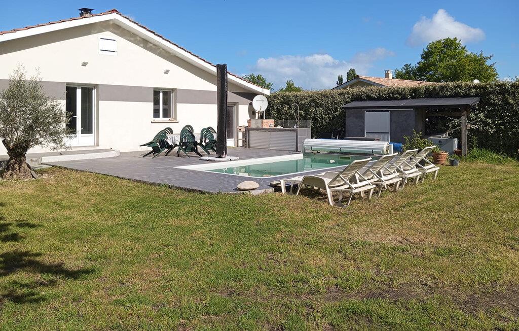 Træd ud på jeres solrige terrasse og Begynd dagene med en forfriskende svømmetur i den smukke pool. Slap af på liggestolene, mens børnene leger i den indhegnede have og tilbereder en lækker grill ved solnedgang.