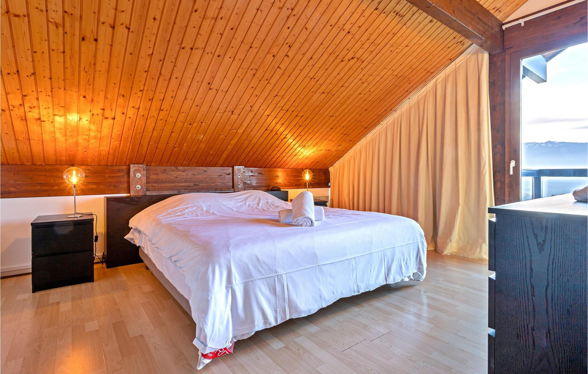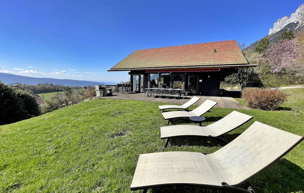 Ferievillaen i Talloires nær Annecy-søen tilbyder komfortabel indkvartering. Beliggende på en stor grund, er det et ideelt sted for naturentusiaster og paragliding aficionados. Nærheden til Angon-vandfaldene, Col de la Forclaz, Annecy-søen og Talloires' strande øger dens tiltrækningskraft. I stueetagen har villaen en garage til en bil, et soveværelse, et brusebad og et vaskerum udstyret med væsentlige apparater. Indgangen til stuen fører til et hyggeligt opholdsområde med pejs, spiseplads med udgang til terrasse og et fuldt udstyret køkken. Der er også et yderligere soveværelse med tre enkeltsenge, et separat brusebad og et toilet på denne etage. På første sal finder du 3 velindrettede soveværelser, som hver byder på naturskøn udsigt over bjergene fra deres respektive balkoner. Derudover er der et fælles badeværelse og et separat toilet til rådighed på dette niveau. Udendørs kan villaen prale af en stor grund med en rummelig terrasse med en betagende udsigt over dalen og bjergene. Den private poolgarage til en bil, parkering til to biler og en privat swimmingpool på 12m x 4m pool med sikkerhedsafdækning. Havemøbler og en grill supplerer uderummet. Huset ligger op ad bakke mod Col de la Forclaz: ideel beliggenhed i starten af mange vandreture eller mountainbiketure. Der er gratis shuttlebus på plads hele sommeren for at gå ned til stranden. Alle lokale butikker er i Talloires eller Menthon Saint-Bernard omkring 6 km væk. Bemærk at nødvendigt sneudstyr er nødvendigt under vinterophold.