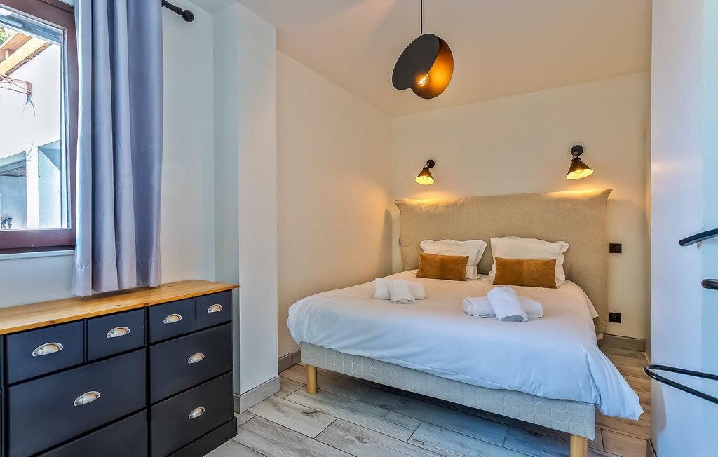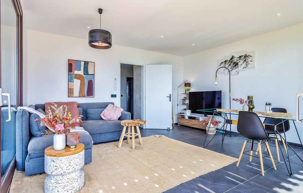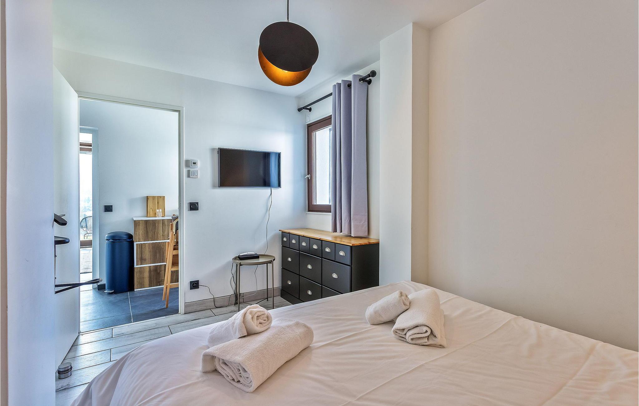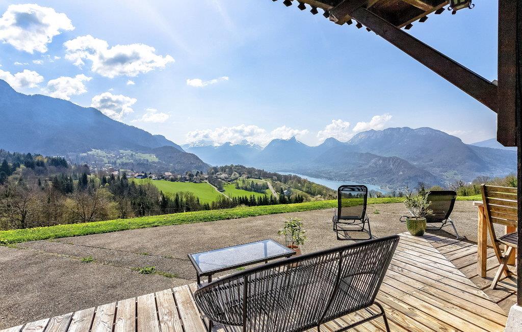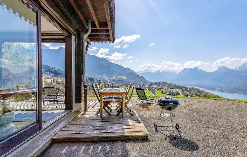 Ferielejligheden i Talloires, beliggende i en malerisk hytte, har en fortryllende udsigt over søen Annecy og de omkringliggende bjerge. Lejligheden har et opholdsområde, der åbner ud til en terrasse med udsigt over Annecy-søen og bjergene. Inden for dette rum er der en hyggelig sofa, et tv til underholdning og internetadgang. Et veludstyret køkken i lejligheden inkluderer moderne bekvemmeligheder, der giver alt, hvad der er nødvendigt for nem tilberedning af måltider. Der er et komfortabelt soveværelse med direkte adgang til en balkon med en fantastisk udsigt over søen. Lejligheden indeholder også et brusebad med hårtørrer, samt et separat toilet. Lejligheden er en del af en hytte med tre andre lejligheder til rådighed for ferieudlejning, hvor ejerne også bor på stedet. Udvendigt ligger hytten på en stor grund på 2 hektar, delt mellem de feriegæster, der bor i de forskellige lejligheder og ejerne. Lejligheden har egen terrasse ud mod søen samt grill og udendørsmøbler. Fra hytten kan du tage på smukke vandreture såsom stigningen af Tournette eller Col de Frètes. Alle lokale butikker ligger omkring 5 km væk i centrum af landsbyen Talloires-Montmin ved søen eller i centrum af landsbyen Menthon Saint-Bernard omkring 6 km væk. Bemærk venligst, at snekæder eller vinterdæk er en nødvendighed i vinterhalvåret. Nyd din ferie i de franske alper med udsigt over søen og storslåede bjerge.