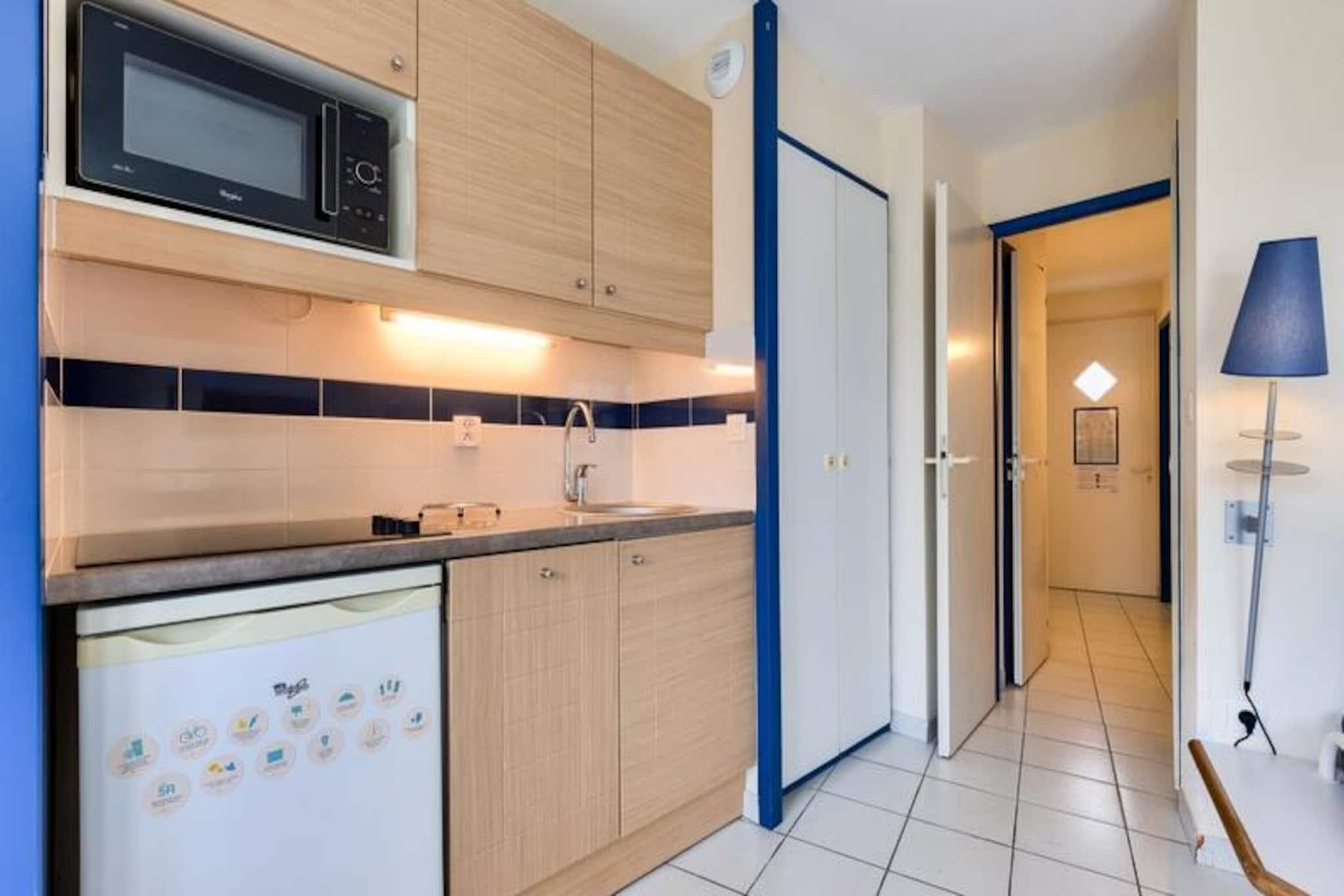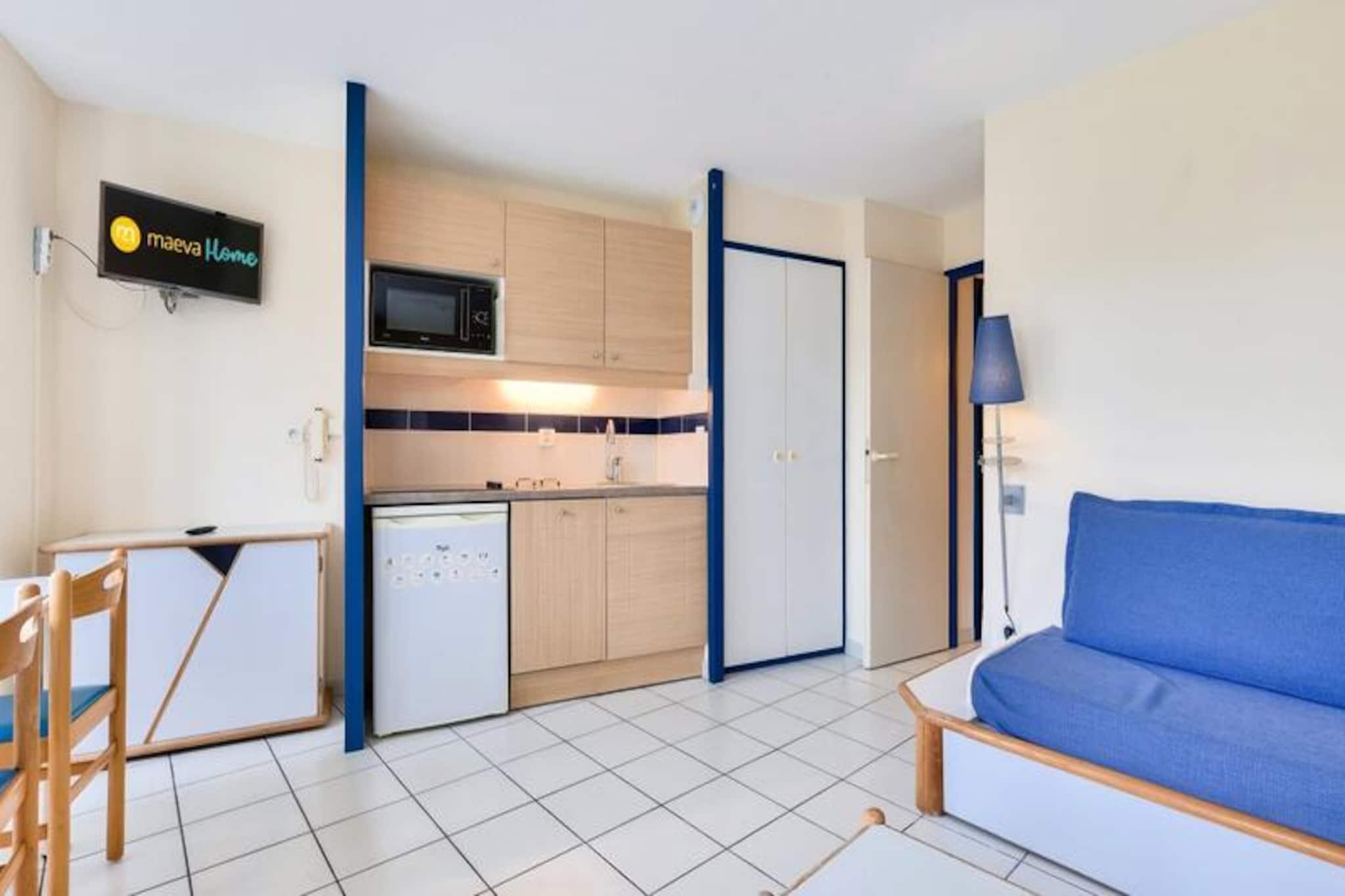 La Résidence Port Bourgenay - maeva Home está situada en Talmont-Saint-Hilaire, en la región de Vendée, a solo 9 km de Les Sables-d'Olonne. Se trata de una auténtica finca de 90 hectáreas rodeada de un pinar y con vistas directas a un lago. La residencia peatonal está dividida en cinco distritos y ofrece tiendas donde encontrará todo lo necesario para unas vacaciones cómodas y relajantes. Puedes llegar al océano a pie o en bicicleta a través del pinar, el Talmondaise (lanzadera) también puede dejarte en la playa de Veillon, situada a 2,5 km, donde podrás disfrutar de numerosas actividades. La residencia también cuenta con 3 piscinas y una zona acuática con tobogán. Fechas de apertura: La piscina del centro: del 27/04 al 12/09 La piscina del Moulin: del 15/06 al 08/09 La piscina de Bocage: del 15/06 al 02/09 En el sitio: Pizzería, panadería, bar/heladería. (Estos servicios son independientes de la residencia) Los alojamientos de Maeva Home son alquileres privados totalmente equipados ubicados dentro de la residencia. Limpieza adicional: A realizar al final de la estancia, ya sea por parte del cliente o pagando el servicio en el momento de la reserva, en el pre-check-in o a la llegada. Se beneficiará de las ventajas y servicios a la carta según sus deseos. Entretenimiento y ocio (cargo adicional): * Dos campos de golf de 18 hoyos * Tenis, minigolf 1 salón, 1 dormitorio, 1 rincón cocina, 1 baño y 1 aseo. Equipamiento del salón: 2 sofás cama, 1 de ellos con cama nido. Instalaciones de la habitación: 1 dormitorio con 1 cama doble. Equipamiento de baños: 1 ducha o 1 bañera y 1 aseo. Equipamiento de la cocina: Zona de cocina abierta al salón. Superficie: aproximadamente 26 m² Las ventajas de este alojamiento: trastero, TV... Etiqueta de selección de hogar maeva: Apartamentos mantenidos, al día y con equipamiento de calidad. Para unas vacaciones exitosas y confortables. Acceso Wifi - Con suplemento - sujeto a disponibilidad. Se admiten mascotas - Además, consulte directamente con la residencia para conocer los precios (permitidos para determinados alojamientos). Kit Bebé - Sujeto a disponibilidad: 1 cuna plegable (norma NF EN 716), 1 cochecito (el contenido puede variar según la residencia) - precios a consultar en recepción. Ropa de cama - Con coste adicional - El contenido puede variar según la residencia: sábana bajera, sábana o funda nórdica y funda de almohada. Toallas - Cargo extra. Posibilidad de cambio de ropa de diario disponible, consultar precios en recepción. Limpieza final de estancia - Servicio de limpieza obligatorio a pagar al realizar el check-in o a la llegada. Aparcamiento - gratuito descubierto situado en la residencia. Piscina - Incluida. En el centro de la residencia encontrará: Piscinas climatizadas, toboganes y piscina infantil con juegos acuáticos. Información de la agencia maeva Home. Fecha de apertura: 29/04 al 15/09, accesible a todos Tobogán y piscina supervisados ??únicamente del 01/07 al 31/08 Tasa turística (cargo adicional) - El pago de la tasa turística se realiza a través de su espacio personal: https://mon-compte.maeva.com, el importe varía según la ubicación. Gratis para menores de 18 años. Televisión - Dependiendo de tu alojamiento Se admiten mascotas - extra Limpieza final de estancia - Servicio de limpieza obligatorio a pagar al realizar el check-in o a la llegada. Ropa de cama - Cargo adicional.
