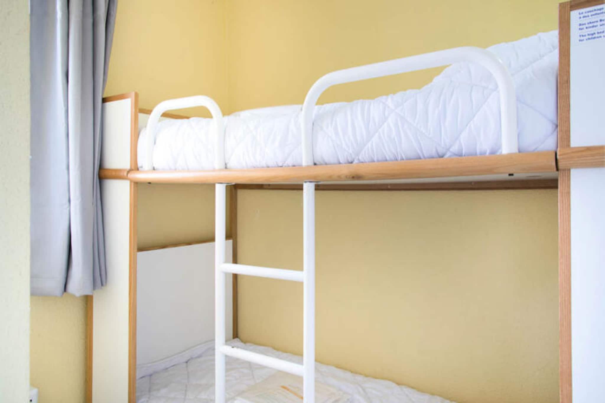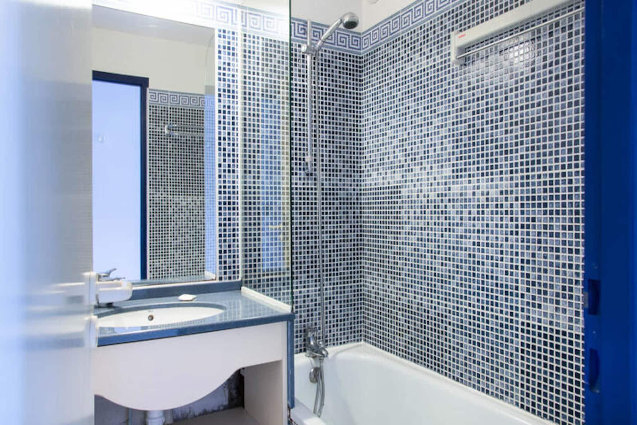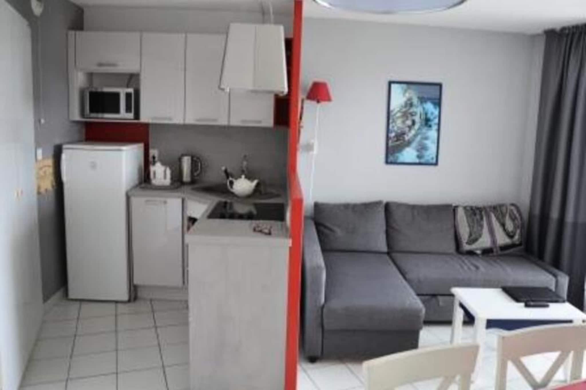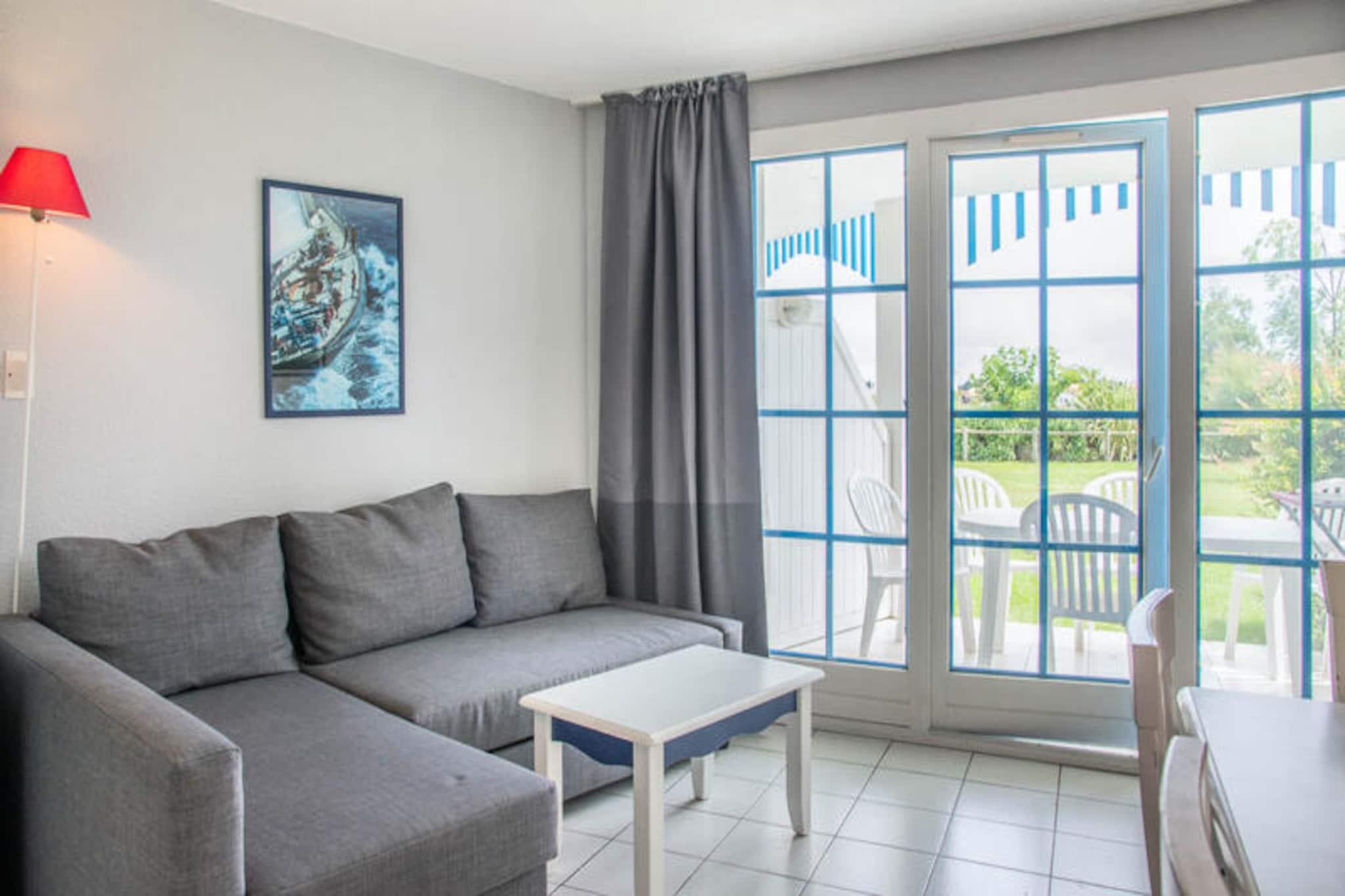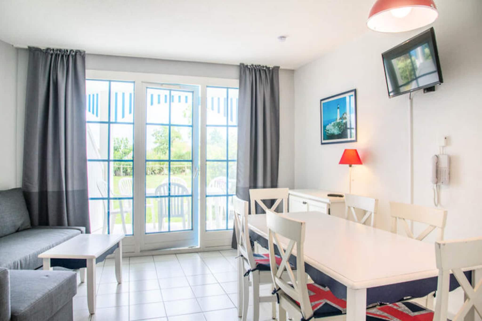 Denne charmerende lejlighed ligger i stueetagen og byder på et hyggeligt opholdsrum med smuk udsigt over golfbanen. Det har et soveværelse med en dobbeltseng, et kabineværelse med to enkeltkøjesenge og en sovesofa i stuen med plads til op til seks gæster. Lejligheden har en møbleret terrasse, et fladskærms-tv og rigelig opbevaringsplads. Kæledyr er tilladt mod et tillægsgebyr, og babyudstyr såsom en sammenklappelig babyseng og klapvogn kan være tilgængeligt efter anmodning. Ejendommen ligger på en stor 90 hektar stor ejendom omgivet af en fyrreskov, kun en kort gå- eller cykeltur fra havet. Boligen tilbyder nem adgang til Veillon-stranden, 2,5 km væk, via en shuttle-service. Til fritiden kan gæsterne nyde tre swimmingpools, et vandområde med rutsjebaner, tennisbaner, minigolf og to 18-hullers golfbaner. Området har også tjenester på stedet, såsom et pizzeria, bageri og bar/isbar for din bekvemmelighed. Indvendigt indeholder lejligheden et moderne køkkenområde, et badeværelse med badekar og et separat toilet. Den åbne planløsning er designet til komfort og afslapning med et spisebord og et veludstyret køkkenområde med et tørrestativ og vigtige apparater. Boligen tilbyder også gratis parkering og adgang til de opvarmede pools og vandspil, som er åbne fra slutningen af ??april til midten af ??september.