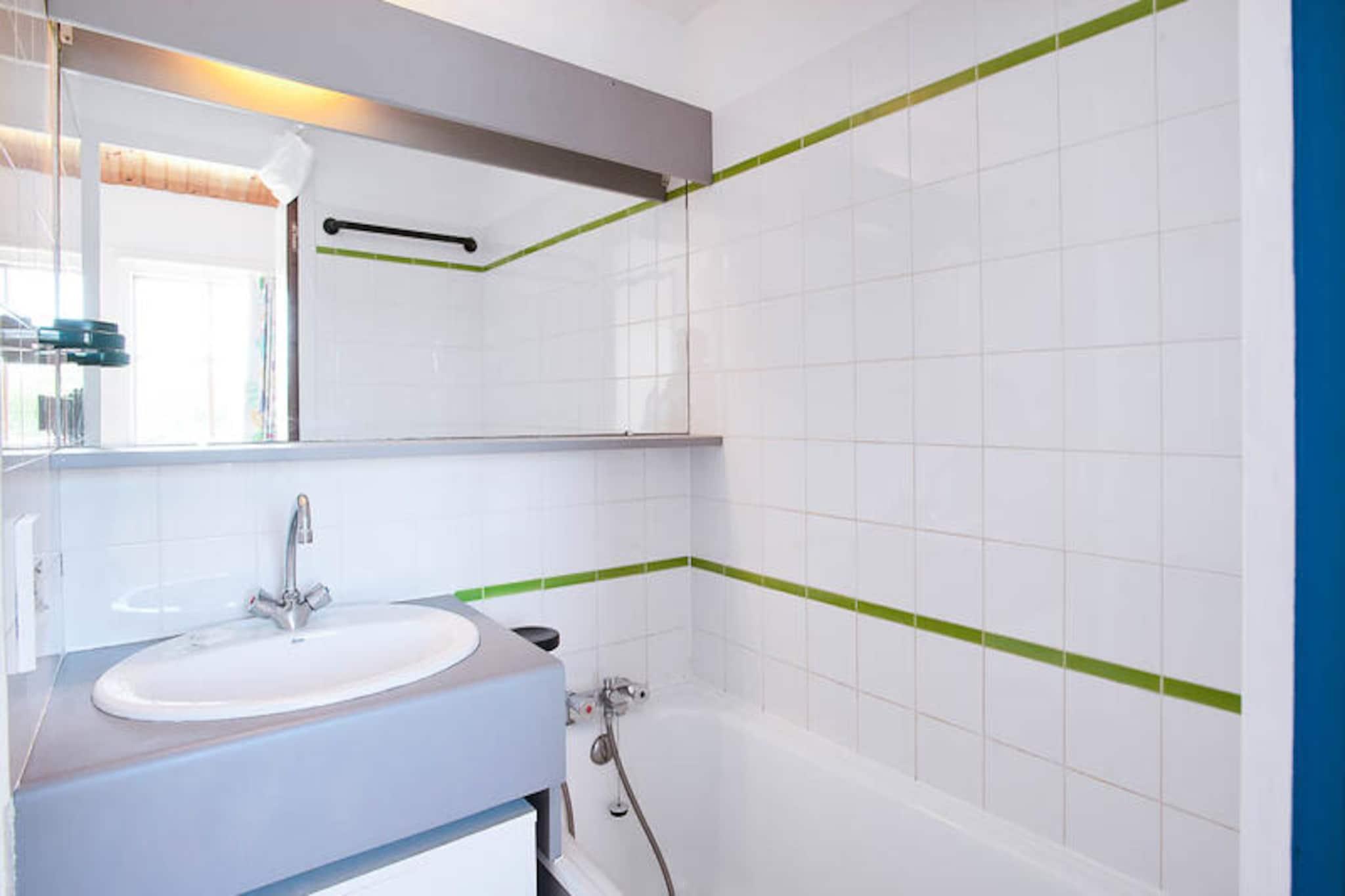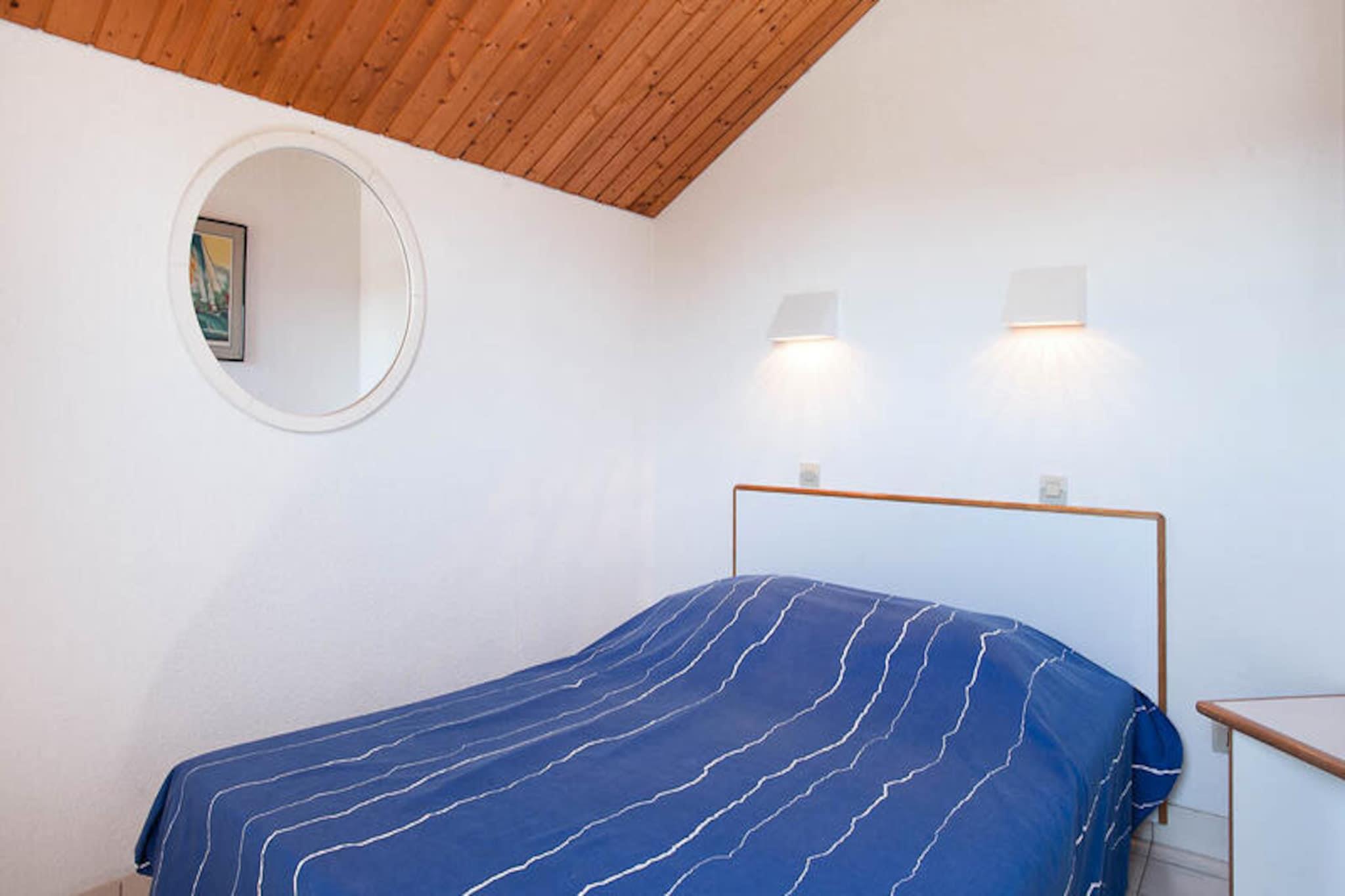 Denne dejlige duplex, beliggende midt i en fredfyldt fyrreskov med malerisk udsigt over søen Port-Bourgenay, tilbyder en fredelig flugt. Ejendommen omfatter opholdsstue med sovesofa, kabineplads med køjesenge og soveværelse ovenpå med dobbeltseng. En vestvendt altan giver en fantastisk udsigt til solnedgangen. Kæledyr er velkomne (mod betaling), og valgfri faciliteter såsom Wi-Fi, babysæt og sengetøj sikrer et behageligt ophold. Gæsterne kan også nyde boligens swimmingpools, der byder på opvarmede pools, rutsjebaner og et soppeområde for børn. Ejendommen ligger på en 90 hektar stor ejendom, kun 2,5 km fra Veillon-stranden, som er tilgængelig på cykel eller shuttle. Det pulserende landsbycenter med butikker, et pizzeria, bageri og isbar ligger en kort gåtur væk. Udendørsentusiaster kan nyde nærliggende aktiviteter, herunder to 18-hullers golfbaner, tennisbaner og minigolf. Den charmerende by Les Sables-d'Olonne med sine markeder og attraktioner ligger kun 9 km væk. Fuldt udstyret til bekvemmelighed, duplex inkluderer et moderne åbent køkken med hvidevarer som køleskab, ovn og opvaskemaskine. Badeværelset ovenpå har badekar og håndklædetørrer, mens et separat toilet er i stueetagen. Gratis parkering på stedet og obligatorisk slutrengøring sikrer en stressfri oplevelse, hvilket gør denne ejendom ideel for familier eller par, der søger afslapning og eventyr.