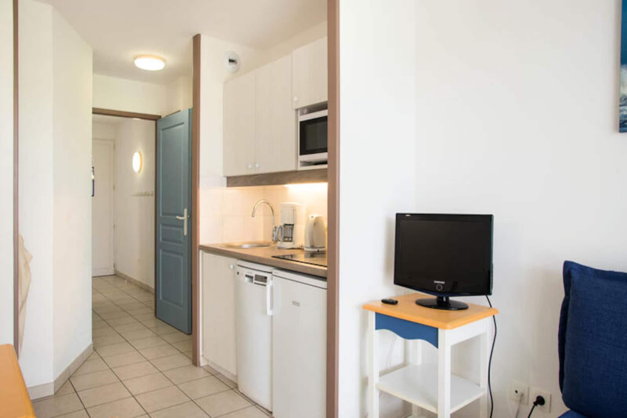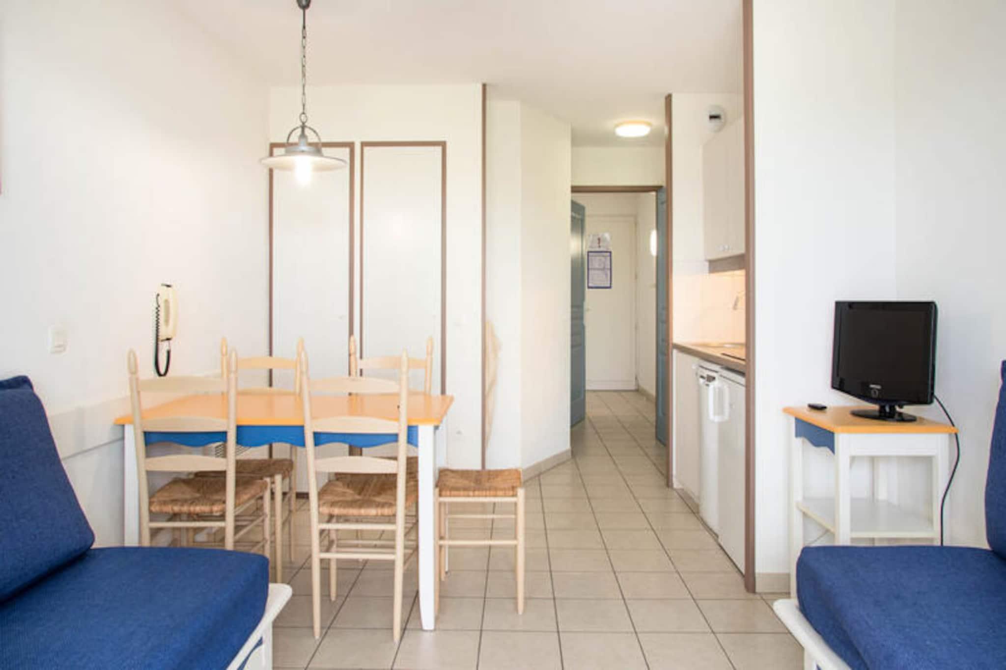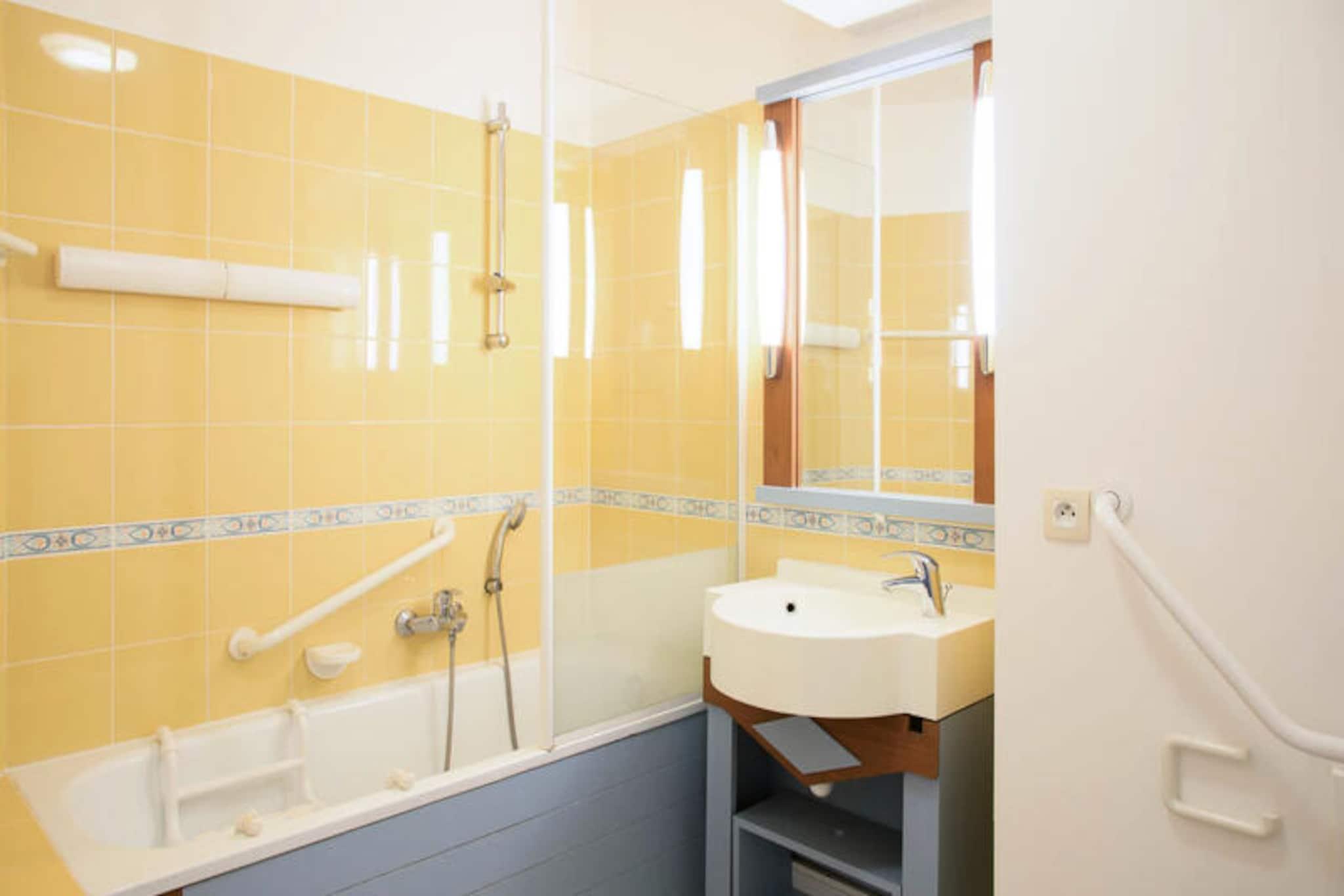 Denne rummelige lejlighed i stueetagen tilbyder komfortabel indkvartering for op til 6 gæster i Vendée, Frankrig. Lejligheden har en stue med to sovesofaer (den ene med udtræksseng) og en sovekabine med køjesenge. Kæledyr kan tillades mod et ekstra gebyr (spørg venligst boligen). Denne lejlighed ligger i et 90 hektar stort feriested i Talmont-Saint-Hilaire og er omgivet af en fyrreskov og har udsigt over en sø. Nyd faciliteter på stedet som et pizzeria, bageri, bar og flere swimmingpools med rutsjebaner. Udforsk de nærliggende strande eller spil en runde golf eller tennis. Lejligheden har et veludstyret køkken, et badeværelse med badekar og håndklædetørrer samt en møbleret terrasse med udsigt til golfbanen. Denne maeva Home Selection-ejendom er velholdt og tilbyder kvalitetsfaciliteter til et afslappende ophold.