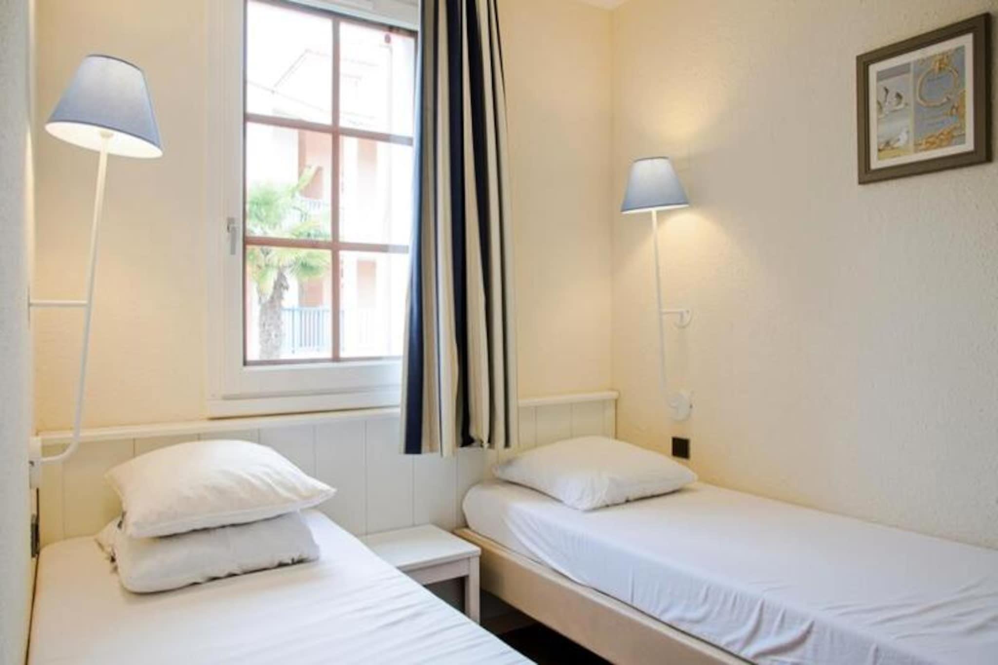 La Résidence Port Bourgenay - maeva Home está situada en Talmont-Saint-Hilaire, en la región de Vendée, a solo 9 km de Les Sables-d'Olonne. Se trata de una auténtica finca de 90 hectáreas rodeada de un pinar y con vistas directas a un lago. La residencia peatonal está dividida en cinco distritos y ofrece tiendas donde encontrará todo lo necesario para unas vacaciones cómodas y relajantes. Puedes llegar al océano a pie o en bicicleta a través del pinar, el Talmondaise (lanzadera) también puede dejarte en la playa de Veillon, situada a 2,5 km, donde podrás disfrutar de numerosas actividades. La residencia también cuenta con 3 piscinas y una zona acuática con tobogán. Fechas de apertura: La piscina del centro: del 27/04 al 12/09 La piscina del Moulin: del 15/06 al 08/09 La piscina de Bocage: del 15/06 al 02/09 En el sitio: Pizzería, panadería, bar/heladería. (Estos servicios son independientes de la residencia) Los alojamientos de Maeva Home son alquileres privados totalmente equipados ubicados dentro de la residencia. Limpieza adicional: A realizar al final de la estancia, ya sea por parte del cliente o pagando el servicio en el momento de la reserva, en el pre-check-in o a la llegada. Se beneficiará de las ventajas y servicios a la carta según sus deseos. Entretenimiento y ocio (cargo adicional): * Dos campos de golf de 18 hoyos * Tenis, minigolf 1 salón, 1 dormitorio, 1 rincón cocina, 1 baño y 1 aseo. Equipamiento del salón: 2 sofás cama, 1 de ellos con cama nido. Para la comida: una mesa con 4 sillas. Instalaciones de la habitación: 1 dormitorio con 2 camas individuales Equipamiento de baño: 1 bañera y 1 aseo independiente. Equipamiento de la cocina: Zona de cocina abierta al salón. Equipamiento de balcón: una mesa con 5 sillas. Superficie: 25 m². Las ventajas de este alojamiento: apartamento en el 1er piso, balcón cubierto amueblado, orientado al sur, vista al lago, ubicado en el centro del pueblo, espacio de almacenamiento, TV... Atención: el alojamiento está situado encima de un restaurante. Etiqueta de selección de hogar maeva: Apartamentos mantenidos, al día y con equipamiento de calidad. Para unas vacaciones exitosas y confortables. Acceso Wifi - Con suplemento - sujeto a disponibilidad. Se admiten mascotas - Además, consulte directamente con la residencia para conocer los precios (permitidos para determinados alojamientos). Kit Bebé - Sujeto a disponibilidad: 1 cuna plegable (norma NF EN 716), 1 cochecito (el contenido puede variar según la residencia) - precios a consultar en recepción. Ropa de cama - Con coste adicional - El contenido puede variar según la residencia: sábana bajera, sábana o funda nórdica y funda de almohada. Toallas - Cargo extra. Posibilidad de cambio de ropa de diario disponible, consultar precios en recepción. Limpieza final de estancia - Servicio de limpieza obligatorio a pagar al realizar el check-in o a la llegada. Aparcamiento - gratuito descubierto situado en la residencia. Piscina - Incluida. En el centro de la residencia encontrará: Piscinas climatizadas, toboganes y piscina infantil con juegos acuáticos. Información de la agencia maeva Home. Fecha de apertura: 29/04 al 15/09, accesible a todos Tobogán y piscina supervisados ??únicamente del 01/07 al 31/08 Tasa turística (cargo adicional) - El pago de la tasa turística se realiza a través de su espacio personal: https://mon-compte.maeva.com, el importe varía según la ubicación. Gratis para menores de 18 años. Televisión - Dependiendo de tu alojamiento Limpieza final de estancia - Servicio de limpieza obligatorio a pagar al realizar el check-in o a la llegada. Ropa de cama - Cargo adicional.