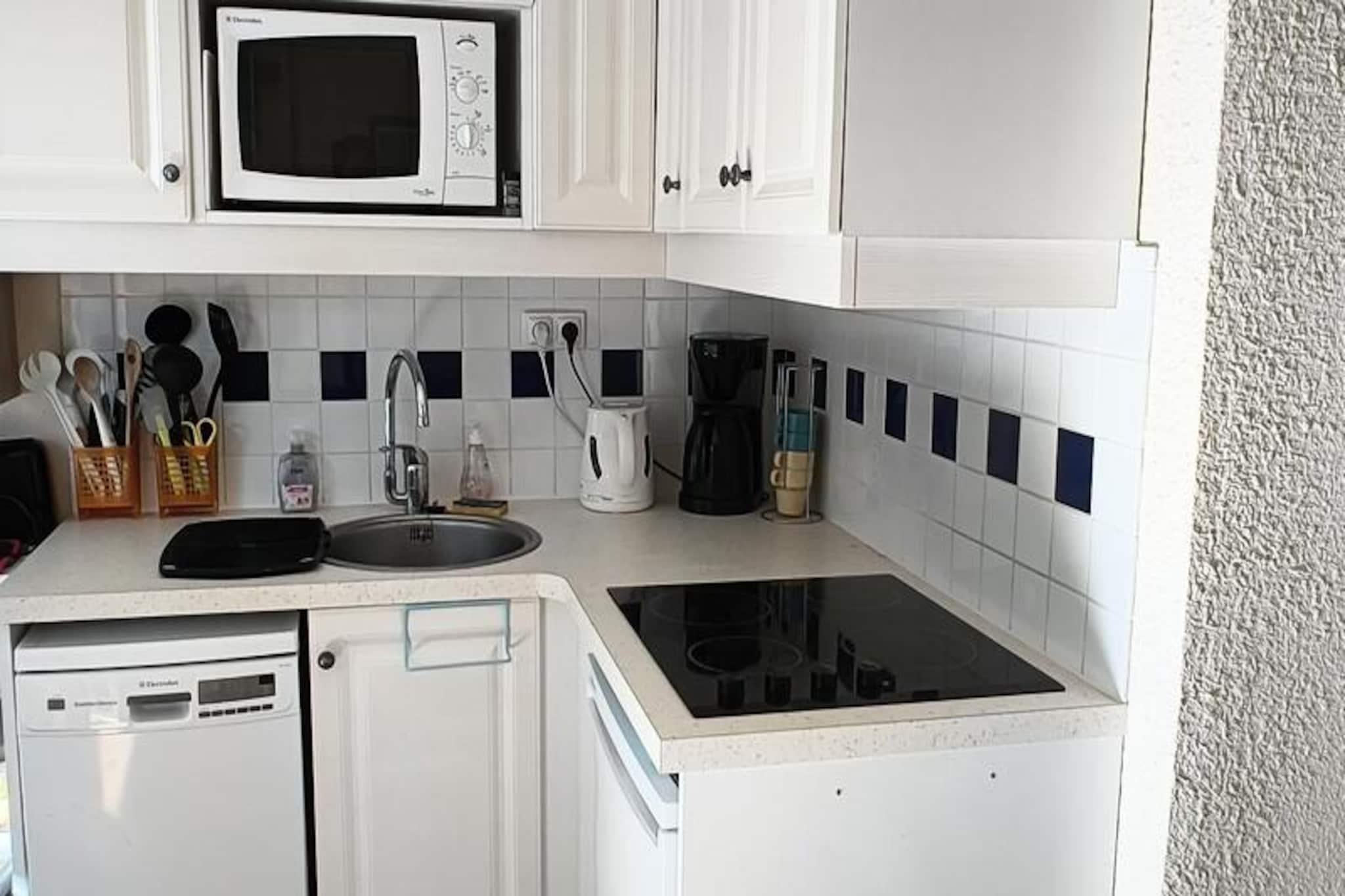 Denne rummelige lejlighed på 28 m² er ideel til en familie eller en lille gruppe, og tilbyder en hyggelig stue med en sovesofa og et fuldt møbleret køkken. Soveværelset har en enkeltseng og et sæt køjesenge, hvilket gør det perfekt til at rumme op til 4 personer. Et separat badeværelse med badekar og separat toilet giver bekvemmelighed for alle gæster. Lejligheden har også en møbleret terrasse med en smuk udsigt over dalen, som tilbyder et fredeligt sted at slappe af. Kæledyr er tilladt mod et ekstra gebyr, og Wi-Fi er tilgængeligt mod et gebyr. Denne ejendom ligger på en 90 hektar stor ejendom omgivet af fyrreskove og tilbyder nem adgang til udendørs aktiviteter. Du kan nyde de nærliggende strande og aktiviteter såsom golf, tennis og minigolf. Boligen ligger en kort gå- eller cykeltur fra havet, og Talmondaise-bussen kan tage dig til Veillon-stranden. Området byder på en række lokale faciliteter, herunder butikker, et bageri, pizzeria og en bar/isbar til en afslappende pause efter en dag med udforskning. Lejligheden er udstyret med alle de nødvendige faciliteter for et behageligt ophold. Køkkenet i amerikansk stil omfatter køleskab, mikroovn og komfur. Badeværelset har et badekar med en søjle og en elektrisk håndklædetørrer. For ekstra bekvemmelighed er parkering tilgængelig på stedet, og gæsterne kan nyde boligens tre swimmingpools, herunder en med rutsjebane. Yderligere tjenester, herunder sengelinned og slutrengøring, er tilgængelige mod et gebyr.
