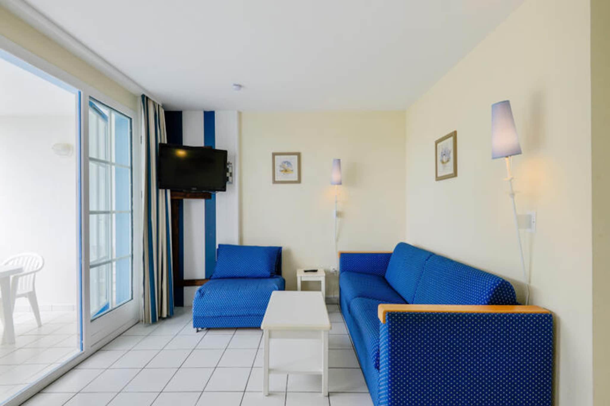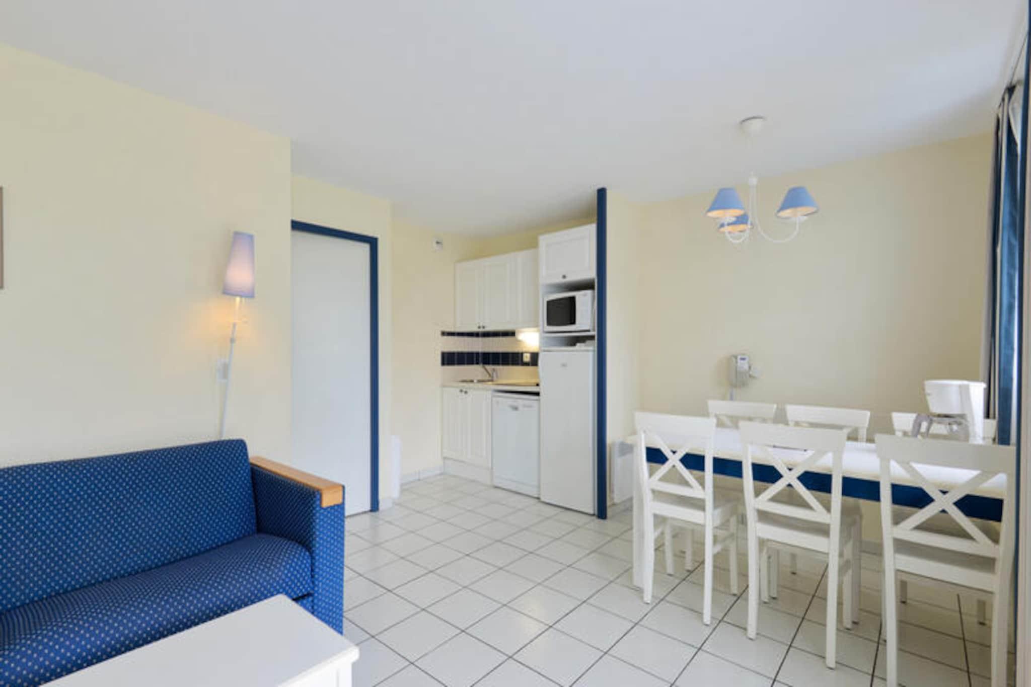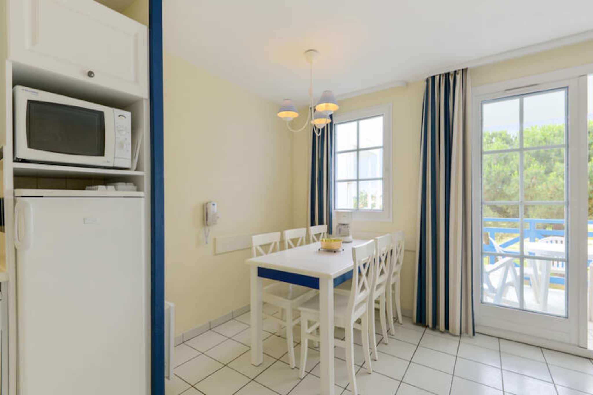 Denne charmerende lejlighed i Talmont-Saint-Hilaire er ideel til en familie eller lille gruppe, der tilbyder plads til op til 6 gæster. Den har to soveværelser, inklusive en dobbeltseng i det første værelse og to enkeltkøjesenge i det andet. Stuen har en sovesofa med plads til 2. Lejligheden er kæledyrsvenlig (mod betaling) og tilbyder trådløs internetadgang (ekstra gebyr, afhængig af tilgængelighed). Der er også en obligatorisk rengøringsservice i slutningen af ??dit ophold, tilgængelig for reservation på forhånd eller ved ankomst. Boligen er beliggende på en stor 90 hektar stor ejendom omgivet af en fyrreskov, der tilbyder direkte adgang til en smuk sø. Gæsterne kan nemt nå den nærliggende Veillon-strand, kun 2,5 km væk, enten til fods, på cykel eller med shuttleservice. Området byder på forskellige aktiviteter, herunder to 18-hullers golfbaner, tennisbaner og minigolf. Der er også talrige butikker, herunder et pizzeria, bageri og isbar, der sikrer, at alle dine behov bliver opfyldt under dit ophold. Lejligheden er fuldt udstyret til et behageligt ophold med åbent køkken med spiseplads, ovn og køleskab. Badeværelset er udstyret med badekar, og der er separat toilet. En privat balkon tilbyder et behageligt sted at slappe af og nyde omgivelserne. Boligen har også tre swimmingpools, et vandområde med rutsjebane og en opvarmet pool med vandspil, alt sammen til rådighed for din nydelse. Parkering er gratis og ligger inden for boligområdet.