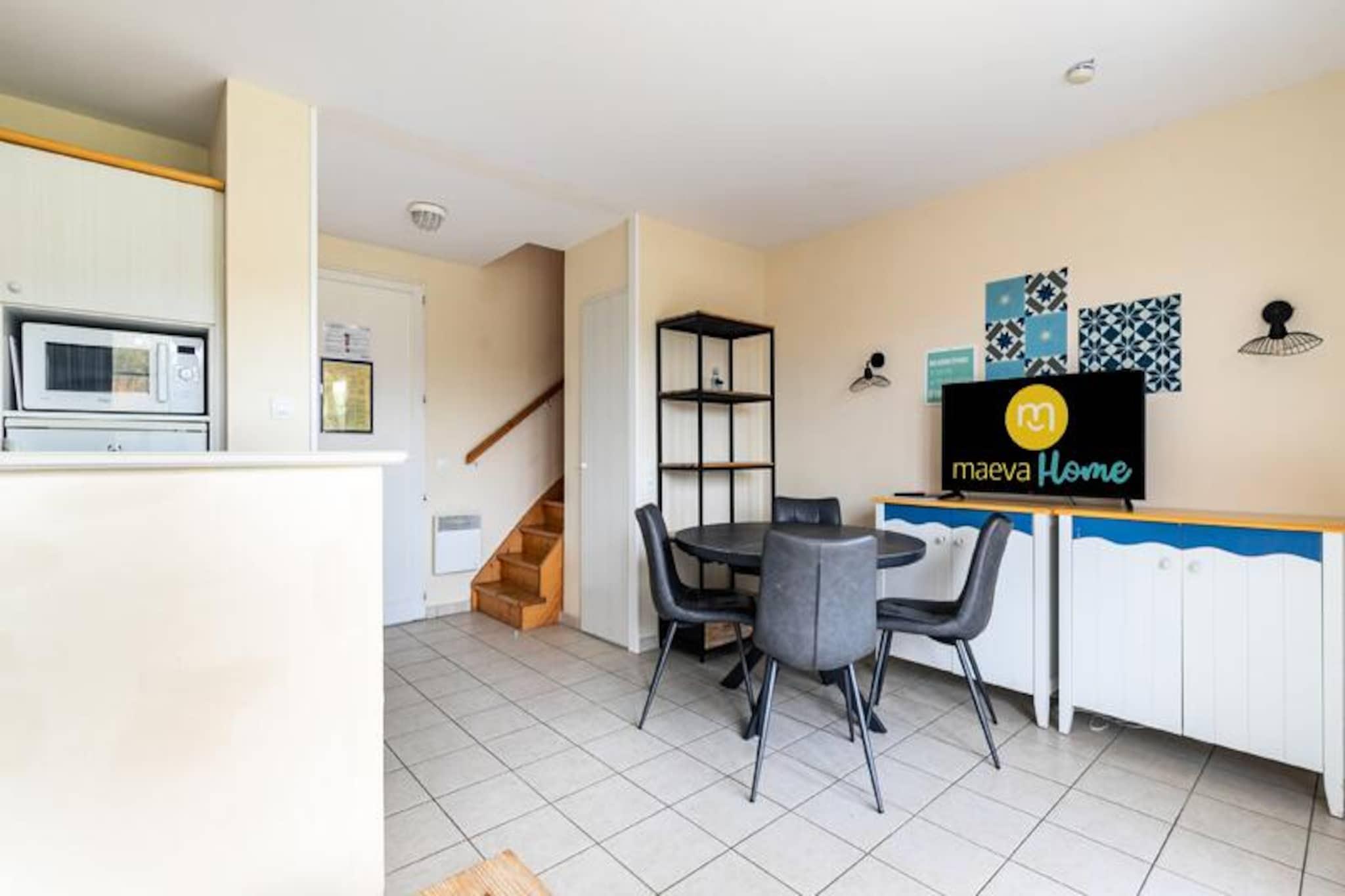 Aproveche nuestra selección de casas de vacaciones en Port-Bourgenay para su estancia familiar en la costa de Vendée. En el corazón de la residencia Port-Bourgenay, nuestras casas privadas con terraza se caracterizan por los colores pastel y gozan de una ubicación ideal en la costa. A dos pasos del puerto deportivo de Bourgenay, nuestras casas privadas con terraza están decoradas en un estilo tradicional que recuerda el encanto de las estaciones balnearias de la Belle Epoque. Para sus vacaciones en Talmont-Saint-Hilaire, elija nuestros alquileres de vacaciones situados a dos pasos del puerto deportivo de Port-Bourgenay. En el barrio de Bocage encontrará: Una piscina climatizada, con piscina infantil y playa equipada (abierta del 15/06 al 02/09, reservada a los veraneantes alojados en esta zona). En el barrio del Moulin encontrará: Una piscina climatizada, con piscina, piscina infantil y playa equipada (abierta del 15/06 al 08/09, reservada a los turistas que se alojan en esta zona). En el centro de la residencia encontrará: Piscinas climatizadas, con toboganes y piscina infantil con juegos acuáticos. (abierto del 27/04 al 12/09) Las ventajas de tu alojamiento Super Home: Podrá disfrutar de su casa individual con una terraza amueblada, orientada al sur, que ofrece vistas al pueblo, acceso a la piscina de la residencia y aparcamiento. Su alquiler vacacional incluye: 1 salón decorado con buen gusto, 1 cocina, 2 acogedores dormitorios, 1 baño, 1 aseo independiente, 1 terraza amueblada y aparcamiento. Superficie: 47 m². Ubicación: distrito de Bocage. Composición del salón: 1 sofá cama (2 personas). Para la comida: 1 mesa con 6 sillas. Cocina semiabierta al salón. Composición de las habitaciones: Dormitorio 1: 1 cama doble Dormitorio 2: 2 camas individuales. Composición de los baños: bañera + WC. 1 aseo independiente. Acceso Wifi - Con suplemento - sujeto a disponibilidad. Se admiten mascotas - Además, consultar precios directamente con la residencia. Ropa de cama - Con coste adicional - El contenido puede variar según la residencia: sábana bajera, sábana o funda nórdica y funda de almohada. Toallas - Cargo extra. Posibilidad de cambio de ropa de diario disponible, consultar precios en recepción. Limpieza final de estancia - Servicio de limpieza obligatorio a pagar al realizar el check-in o a la llegada. Piscina - - En el barrio de Bocage encontrará: Piscina climatizada, piscina infantil y playa equipada (reservada a los turistas que se alojen en esta zona) - En el barrio del Moulin encontraréis: Piscina climatizada, piscina, piscina infantil y playa equipada (reservada a los turistas que se alojen en esta zona). Información de la agencia maeva Home. - En el centro de la residencia encontraréis: Piscinas climatizadas, toboganes y piscina infantil con juegos acuáticos. Fechas de apertura: La piscina del centro: del 27/04 al 12/09 Tobogán y piscina supervisados ??únicamente del 01/07 al 31/08 La piscina del Moulin: del 15/06 al 08/09 La piscina de Bocage: del 15/06 al 02/09 Tasa turística (cargo adicional) - El pago de la tasa turística se realiza a través de su espacio personal: https://mon-compte.maeva.com, el importe varía según la ubicación. Gratis para menores de 18 años. Televisión - Dependiendo de tu alojamiento Depósito (en euros) - 1200