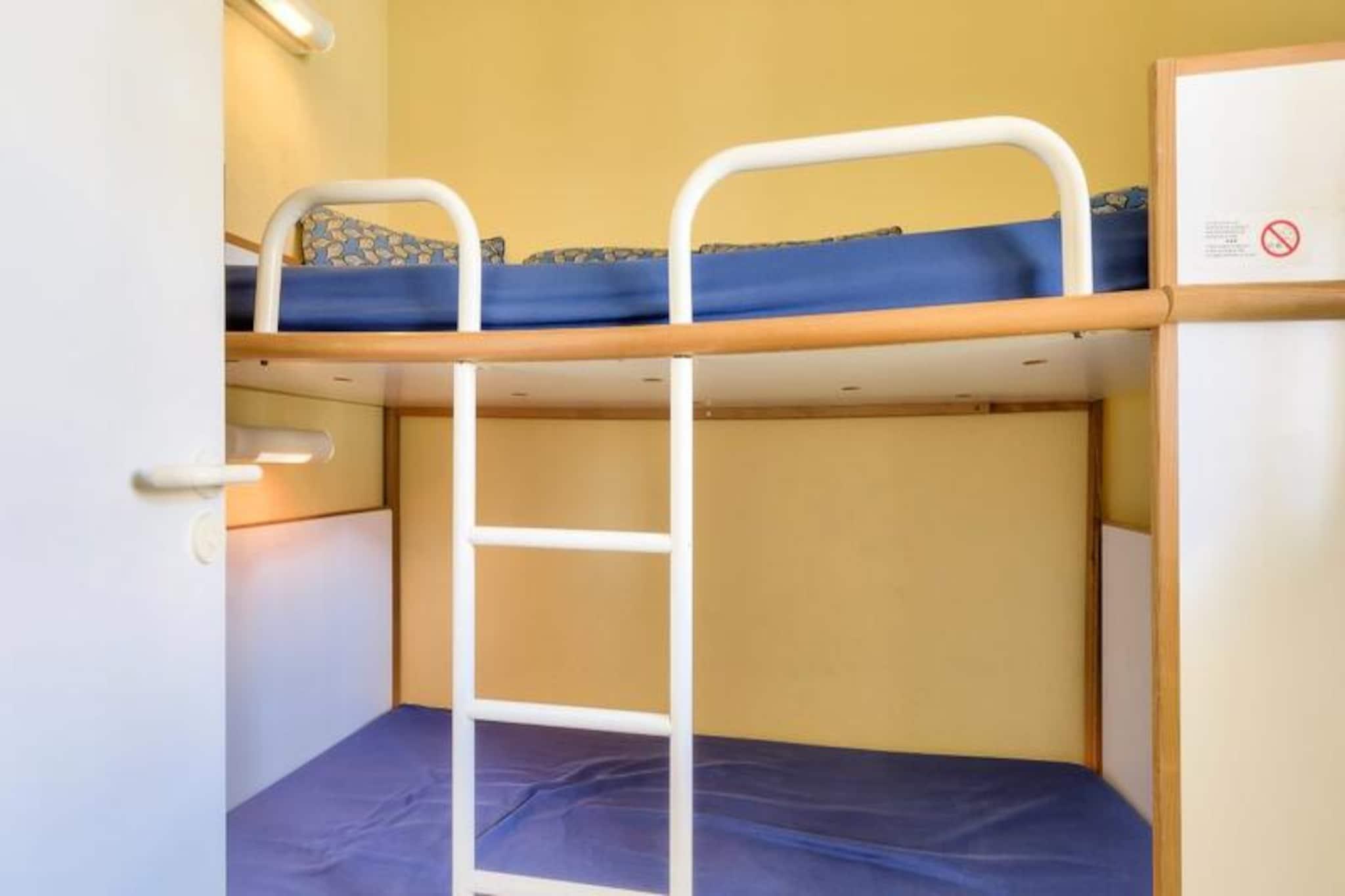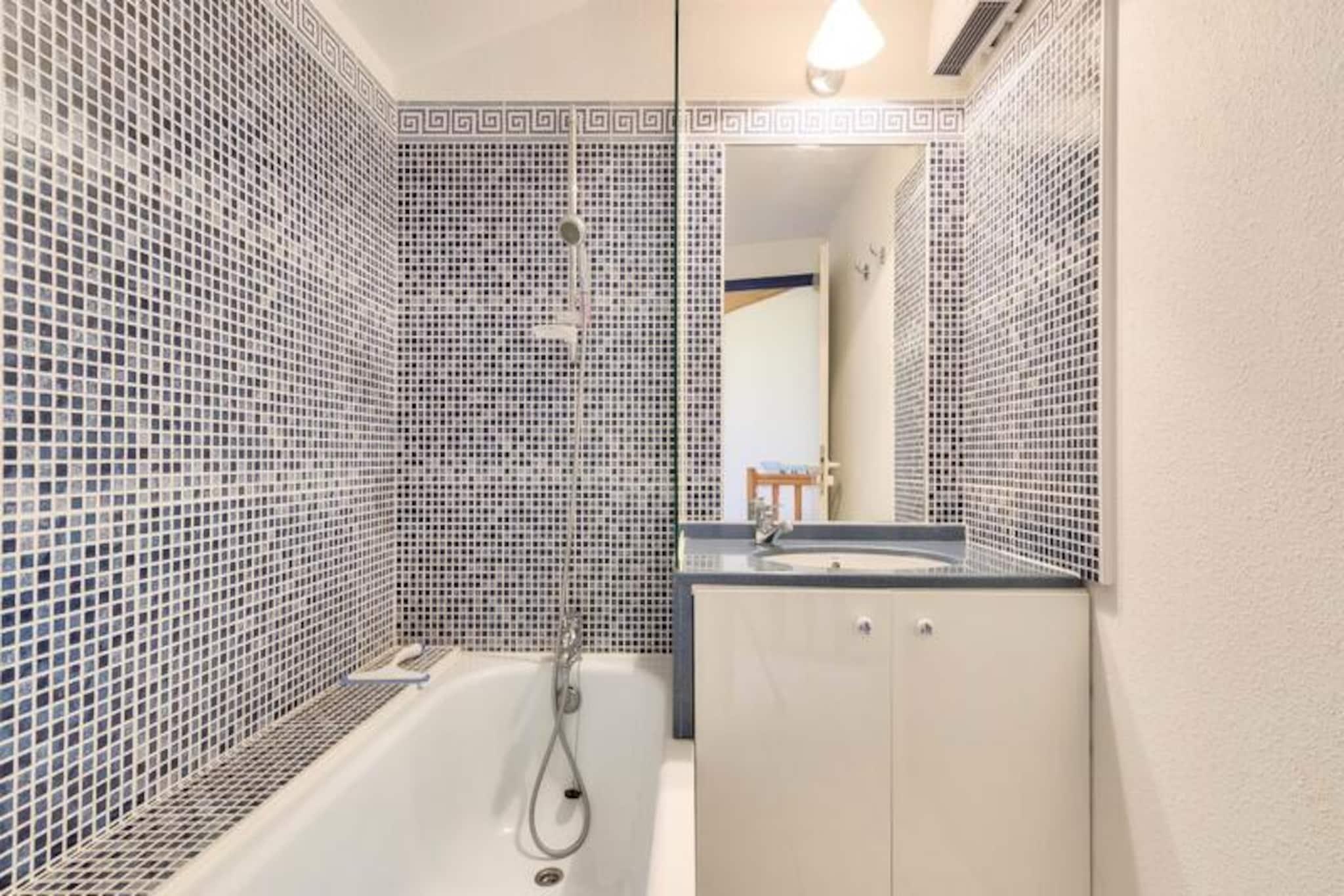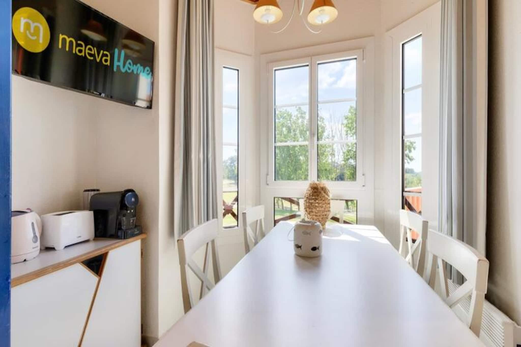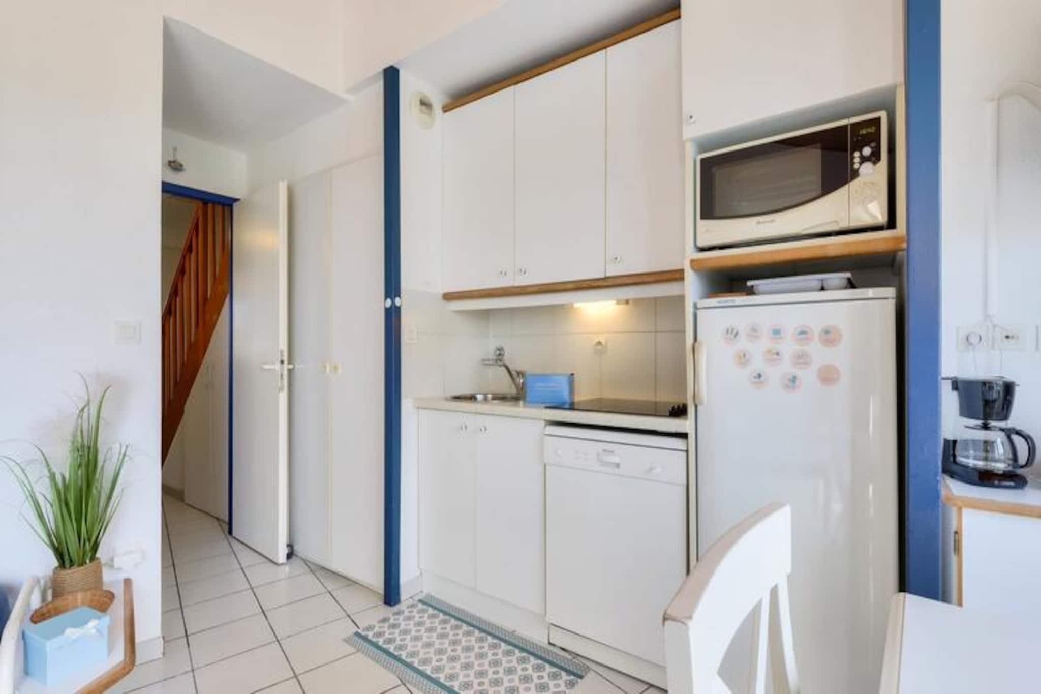 Denne duplex lejlighed, beliggende i en fredelig 90 hektar stor ejendom, tilbyder et behageligt ophold for op til 6 personer. Det omfatter to soveværelser - det ene med en dobbeltseng og det andet med køjesenge - sammen med to badeværelser og to toiletter. Kæledyr er tilladt mod et ekstra gebyr, og babysæt er tilgængelige efter anmodning. Lejligheden har balkon med sydvendt udsigt over golfbanen, og gæsterne kan nyde bekvemmeligheden ved en udendørs parkeringsplads. Bemærk venligst, at WiFi er tilgængeligt mod et tillægsgebyr. Dette feriehus ligger kun 2,5 km fra Veillon-stranden og er ideelt for strandelskere og udendørsentusiaster. Boligen giver adgang til adskillige vandreområder og en shuttleservice til stranden. Gæsterne kan nyde forskellige fritidsaktiviteter, herunder to 18-hullers golfbaner, tennis, minigolf og et svømmeområde med rutsjebaner og soppebassiner. Nærliggende attraktioner omfatter den travle by Les Sables-d'Olonne, kun 9 km væk, og flere lokale restauranter og butikker. Lejligheden er fuldt udstyret med et halvåbent køkken med miniovn, mikroovn, opvaskemaskine og køleskab. To badeværelser giver rigelig plads, et med badekar og et andet med bruser. Stuen er møbleret med en sovesofa, et fladskærms-tv og et sofabord, som tilbyder et hyggeligt sted at slappe af efter en dag med udforskning. For ekstra bekvemmelighed tilbydes en vaskemaskine og slutrengøring mod et tillægsgebyr.