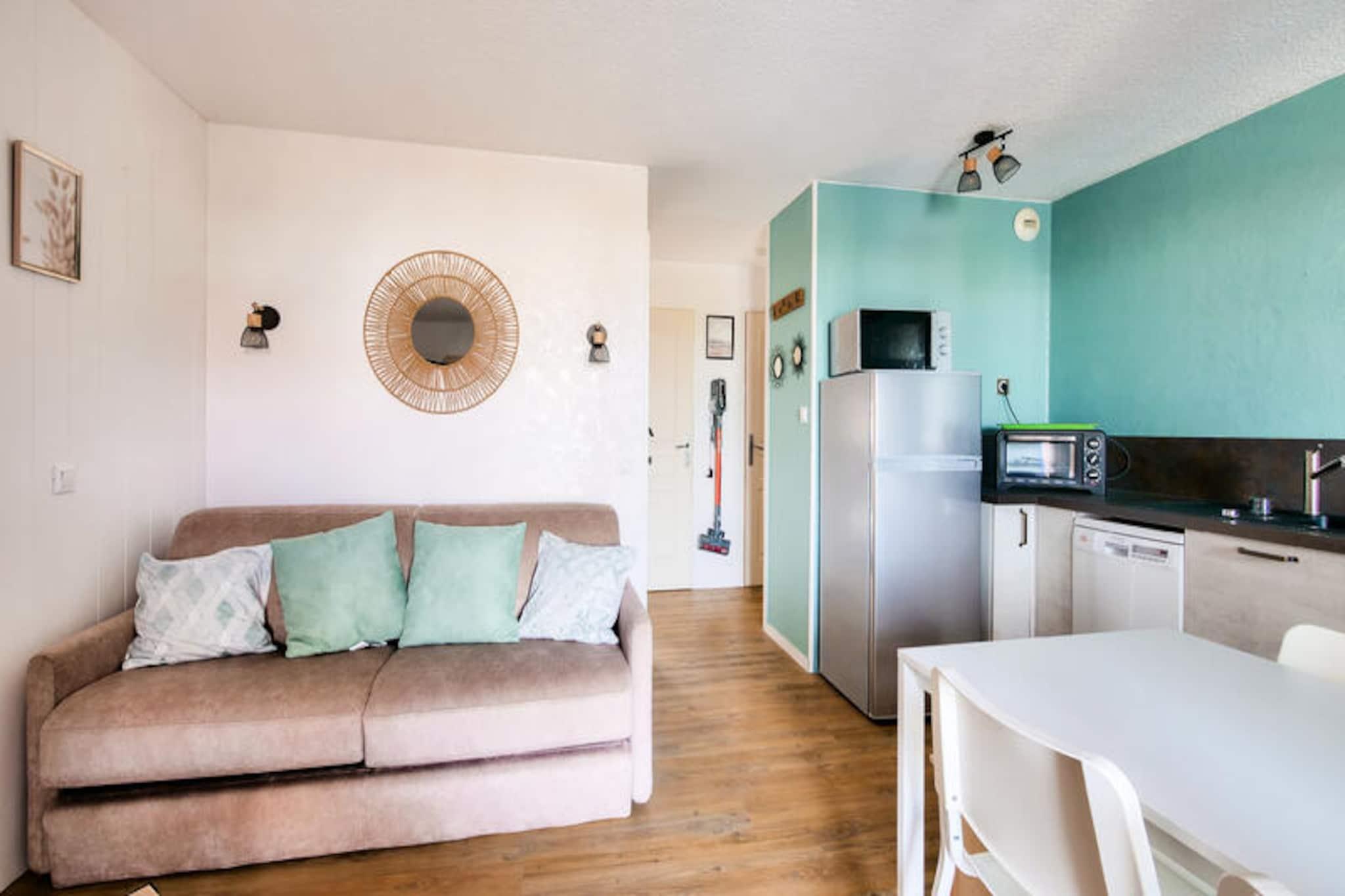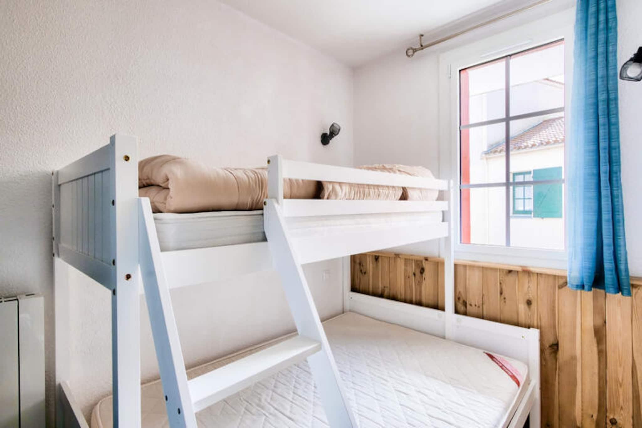 Denne charmerende lejlighed er en del af en naturskøn 90 hektar stor ejendom i Talmont-Saint-Hilaire. Det har en hyggelig stue med sovesofa og udtræksseng og et separat soveværelse med køjesenge. Badeværelset er udstyret med badekar, elektrisk håndklædetørrer og hårtørrer. Lejligheden inkluderer også en balkon, parkeringsplads og et babysæt (afhængigt af tilgængelighed). Kæledyr er tilladt mod et ekstra gebyr, og sengetøj og håndklæder er tilgængelige mod et ekstra gebyr. En obligatorisk rengøring er påkrævet ved slutningen af ??opholdet. Boligen tilbyder en række fritidsaktiviteter, herunder adgang til 3 swimmingpools, et vandområde med rutsjebaner, tennis, minigolf og to 18-hullers golfbaner. Beliggende kun 9 km fra Les Sables-d'Olonne, giver det nem adgang til havet, med Veillon-stranden 2,5 km væk. I nærheden kan gæsterne udforske caféer, restauranter og butikker, mens de nyder de fredelige omgivelser i en fyrreskov og sø. Indvendigt indeholder det fuldt udstyrede køkken alle nødvendige apparater, og lejligheden har et separat toilet for ekstra bekvemmelighed. Gæsterne kan nyde komforten af ??et halvåbent køkken og en spiseplads med plads til 4. Wi-Fi er tilgængeligt mod et ekstra gebyr, og boligen tilbyder en række tjenester til et behageligt ophold.