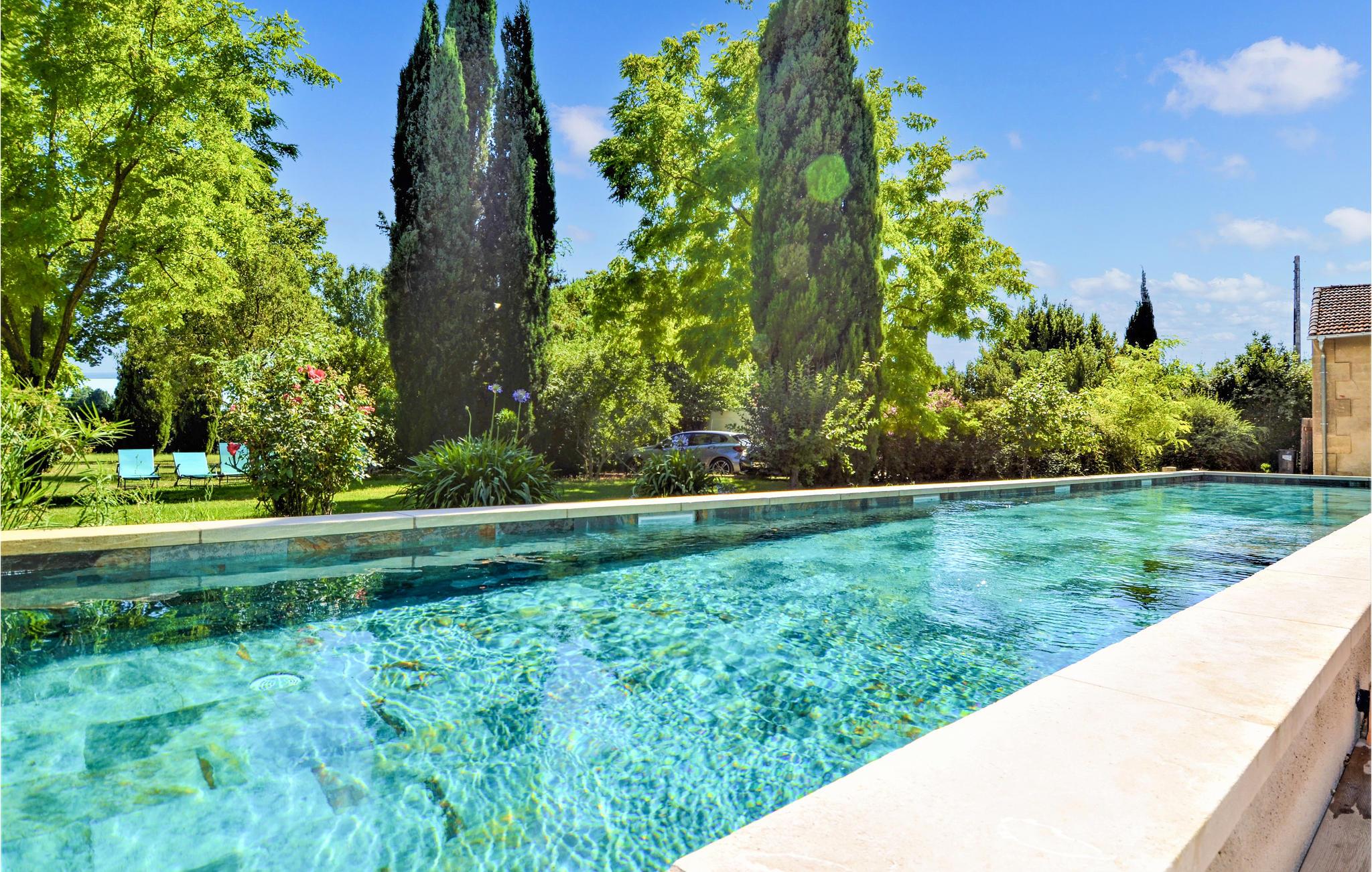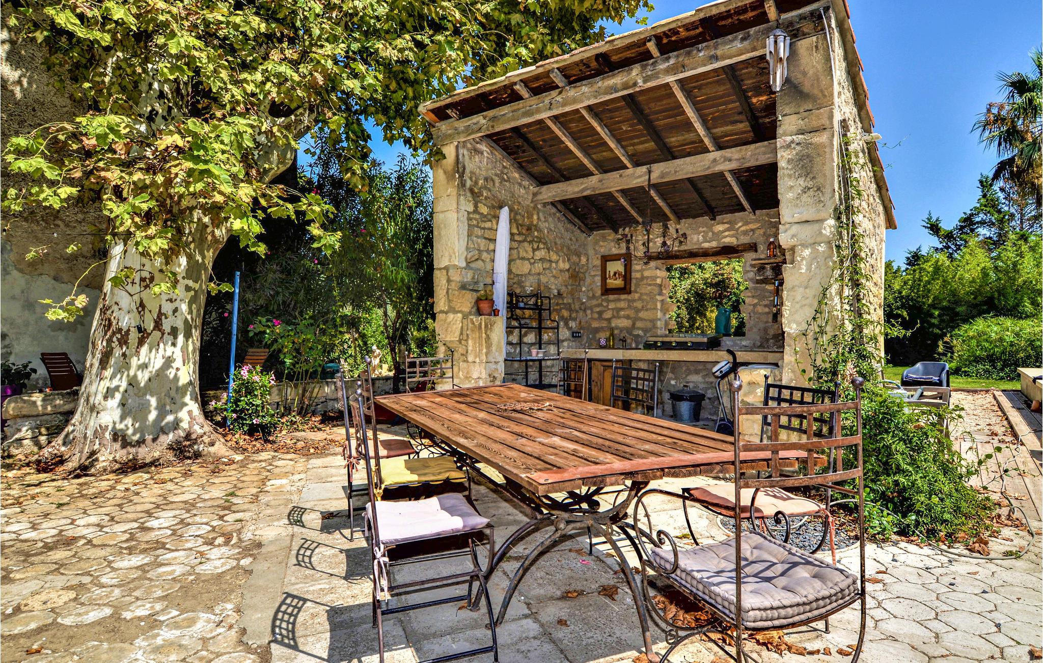 Ved ankomsten vil I blive fortryllet af synet af poolen og de store palmer. I tilbringer jeres ferie i en smuk provencalsk bondegård med plads til 14 personer. Soveværelserne er på de øverste etager. Huset har aircondition. I stueetagen venter et stort opholdsområde med åbent køkken og adgang til terrassen og haven.