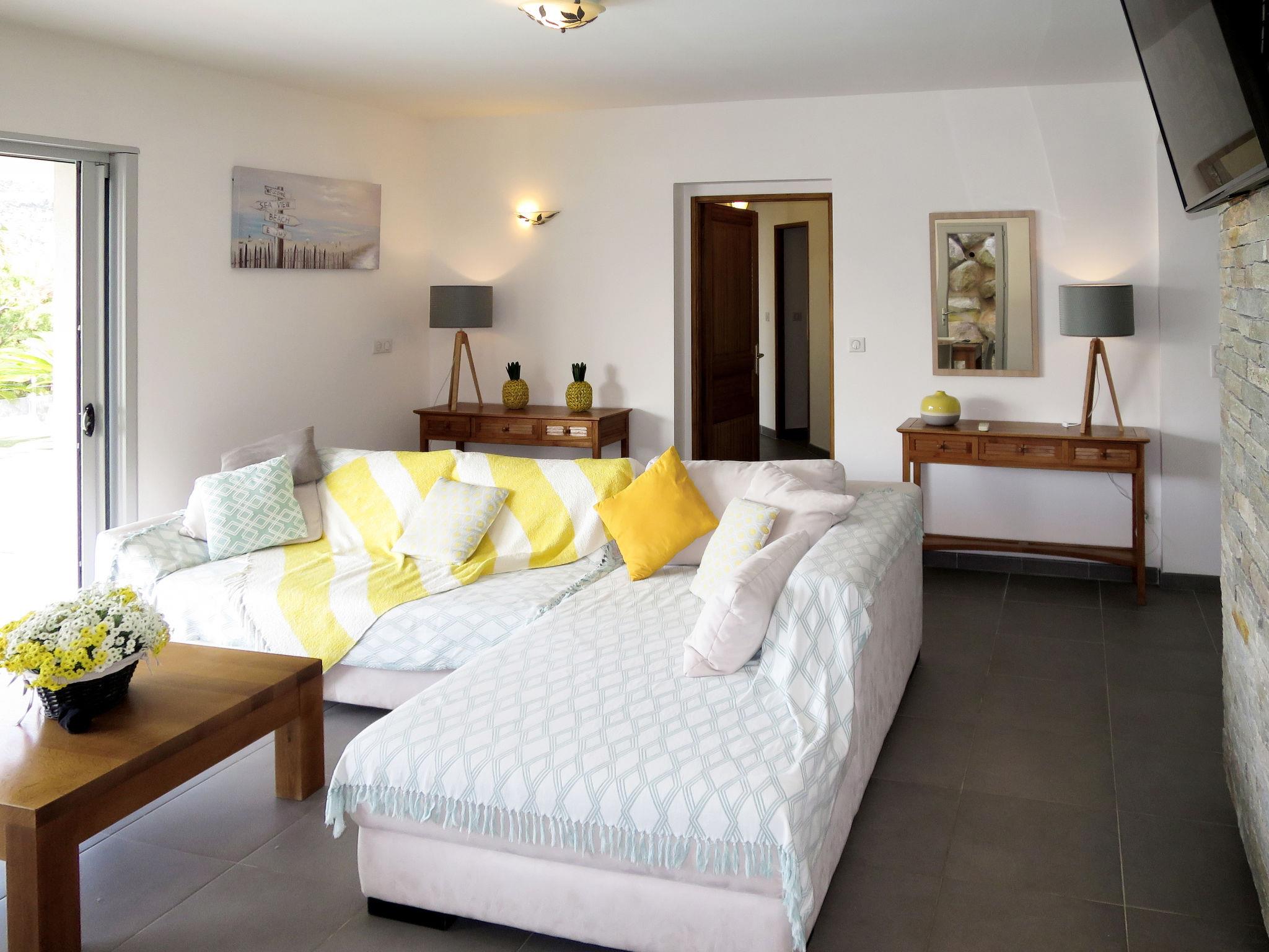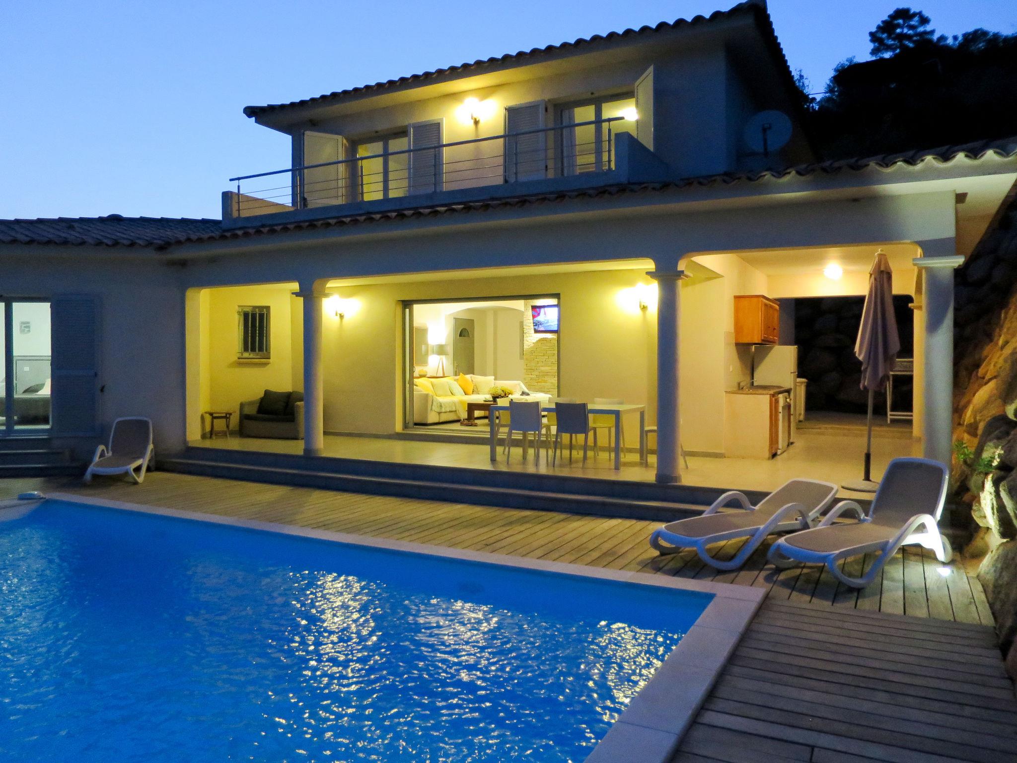 "Villa Ottavi", 5-room house 180 m2 on 2 levels. Spacious and bright, very comfortable and beautiful furnishings: living/dining room with dining table and satellite TV. Exit to the terrace, to the swimming pool. 1 room with 1 french bed (160 cm), shower/WC and air conditioning. Exit to the terrace, to the swimming pool. 1 room with 3 beds, shower/WC and air conditioning. Open kitchen (oven, dishwasher, 4 gas rings, toaster, kettle, microwave, freezer, electric coffee machine, Capsules for coffee machine (nespresso) extra). Sep. WC. Electric heating. Upper floor: 1 room with 1 french bed (160 cm), shower/WC and air conditioning. Exit to the terrace. 1 room with 3 beds (80 cm), shower/WC and air conditioning. Exit to the terrace. Electric heating. 3 large terraces partly covered, large patio partly roofed. Terrace furniture, electric barbecue, deck chairs (10), box-room. Marvellous view of the bay. Facilities: washing machine, children's high chair, baby cot for up to 2 year olds. Internet (WiFi, free). Parking (2 cars). Please note: suitable for families. Non-smoking house. Smoke alarm, fire extinguisher. Offer by a commercial proprietor according to Art. 155, IV, CGI