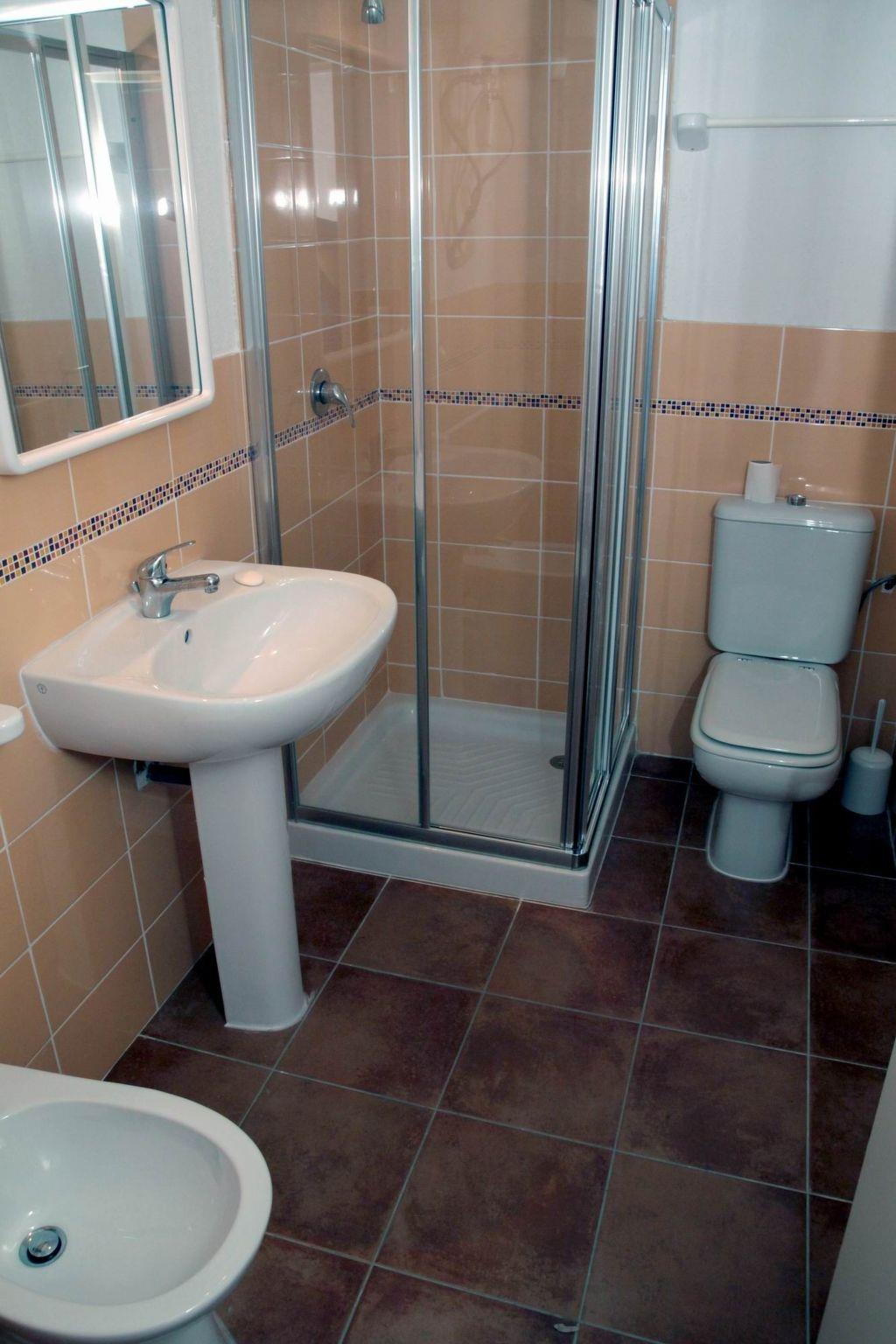 Four-room apartment for 8 persons (min. 70 sq m): raised ground floor or first floor, on two levels. Living/dining room with kitchenette (electric cooker, fridge with freezer), double sofa bed, two double bedrooms, one twin bedroom, 2 bathrooms with shower. Balcony or garden. Air conditioning.