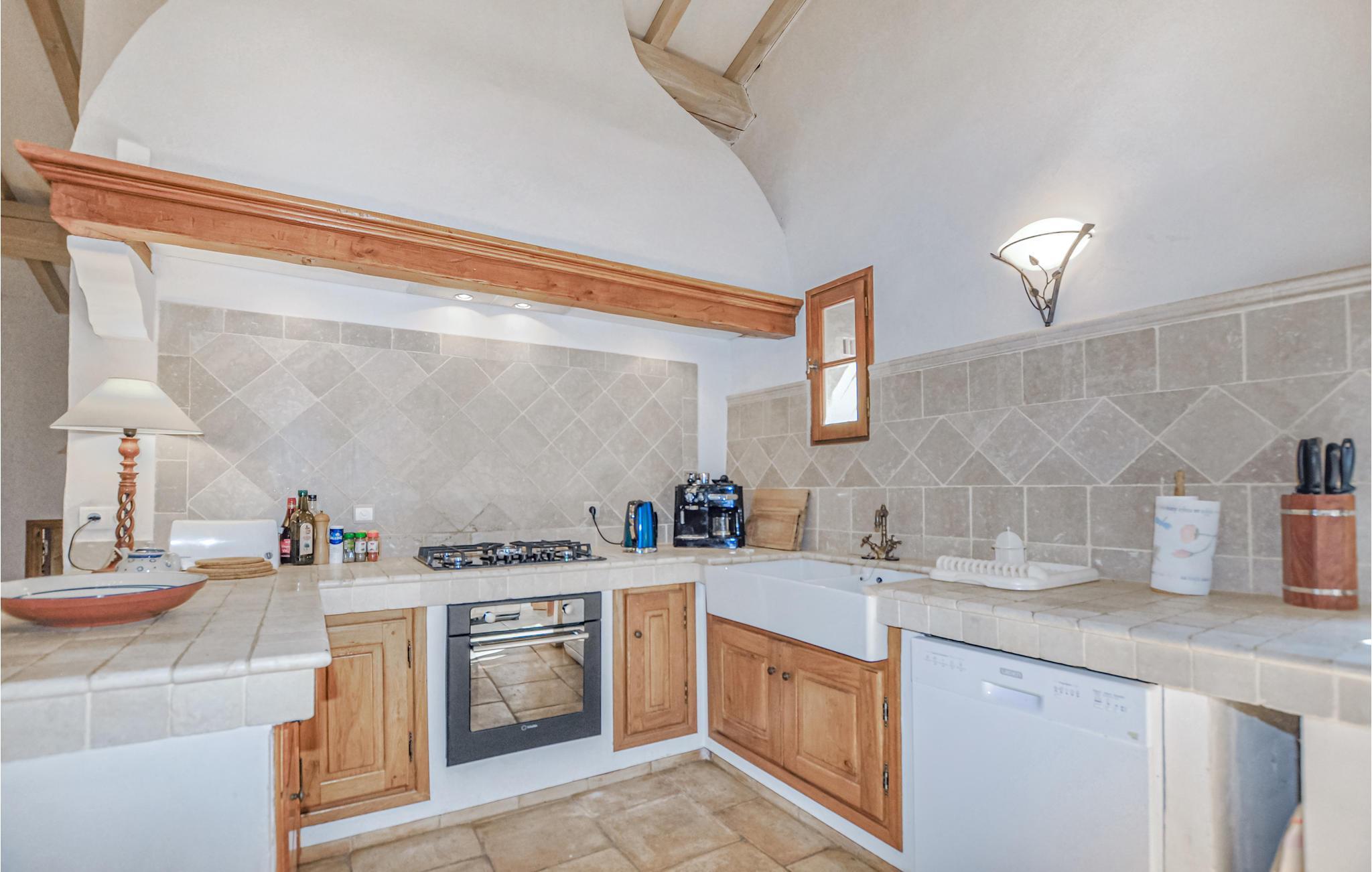 Huset er smukt restaureret og kombinerer antikke møbler med moderne komfort. Badeværelserne og køkkenet har marmorelementer, og der er terracottagulve. To af soveværelserne har kingsize dobbeltsenge og et tredje har to enkeltsenge.