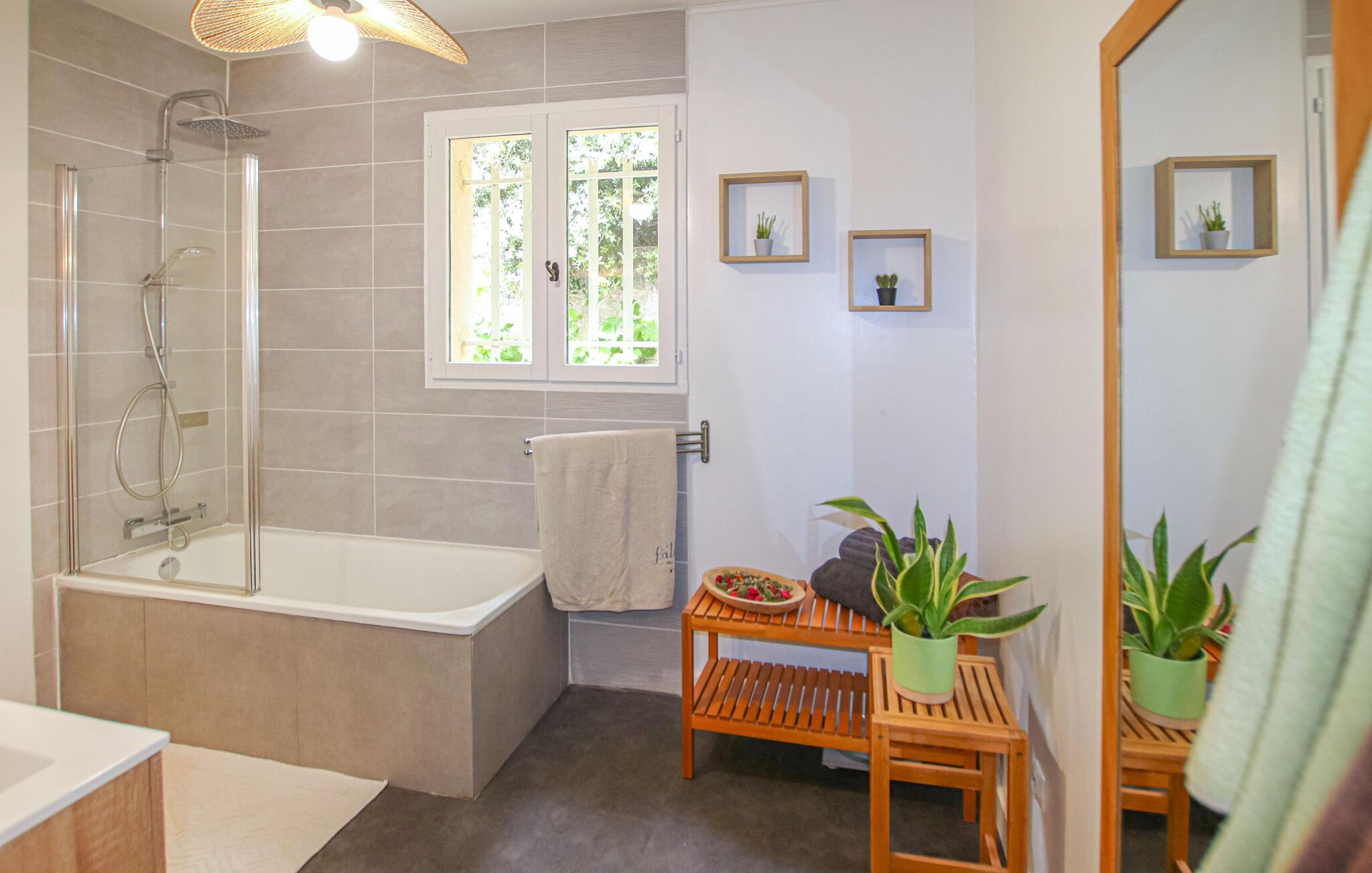 Velkommen til dette rummelige feriehus, beliggende i et roligt boligområde og ikke langt fra den storslåede befæstede by Avignon, som lægger op til en idyllisk ferie i den fortryllende Provence. Tilbered lækre måltider i det moderne køkken og nyd dem ved det stilfuldt oplyste spisebord. Efter en begivenhedsrig dag kan I slappe af i den behagelige sofa, streame en film eller fordybe jer i en spændende bog.