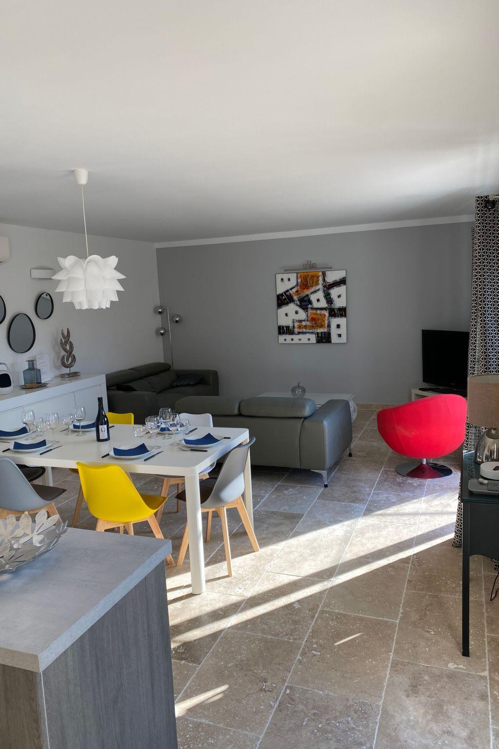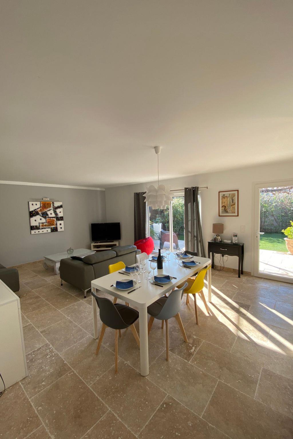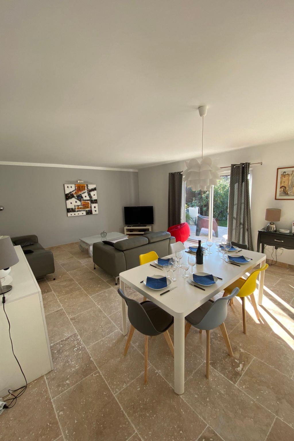 Bright, modern villa with heated pool in Provence, 10 km from Avignon Located in Tavel, a small Gard village renowned for its rosé wine in the heart of the Tavel, Lirac and Châteauneuf du Pape vineyards. Just 10 km from Avignon, the Pont du Gard and Orange. It's the ideal base for exploring Provence (Les Baux de Provence, Saint Rémy de Provence, Le Lubéron) and the many other tourist attractions in the region: Drôme provençale, Uzès, Vallée de la Cèze, la Camargue, les Calanques de Cassis .... The villa is in a quiet, pleasant residential area, at the end of a cul-de-sac. It is a 5-minute walk from the village centre and a few minutes from footpaths and cycle paths. Dogs are allowed and the garden is fully fenced.
