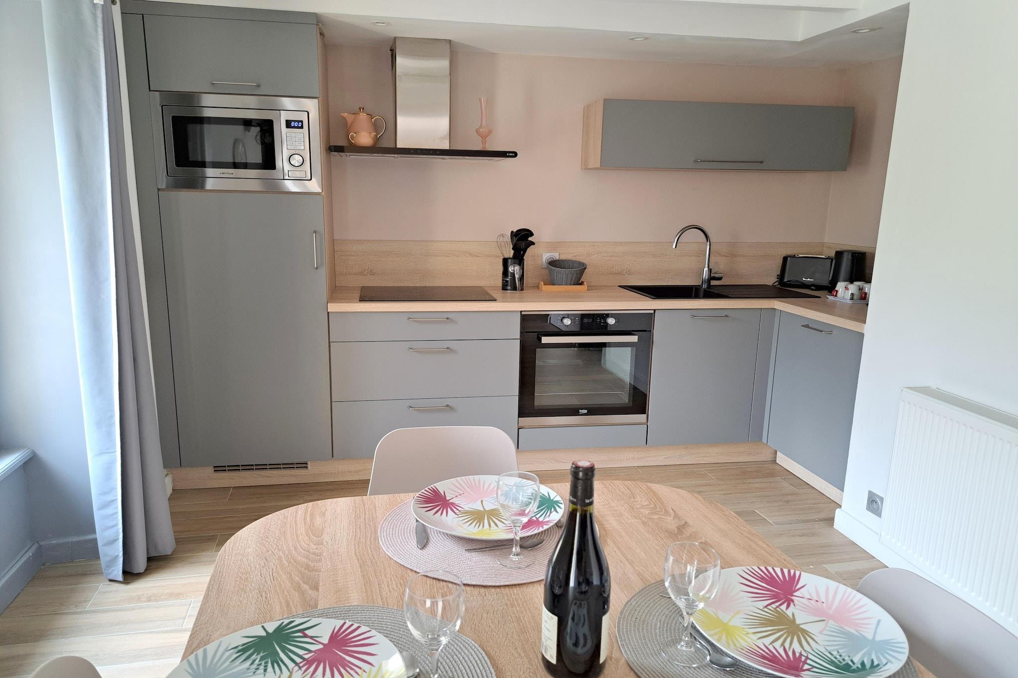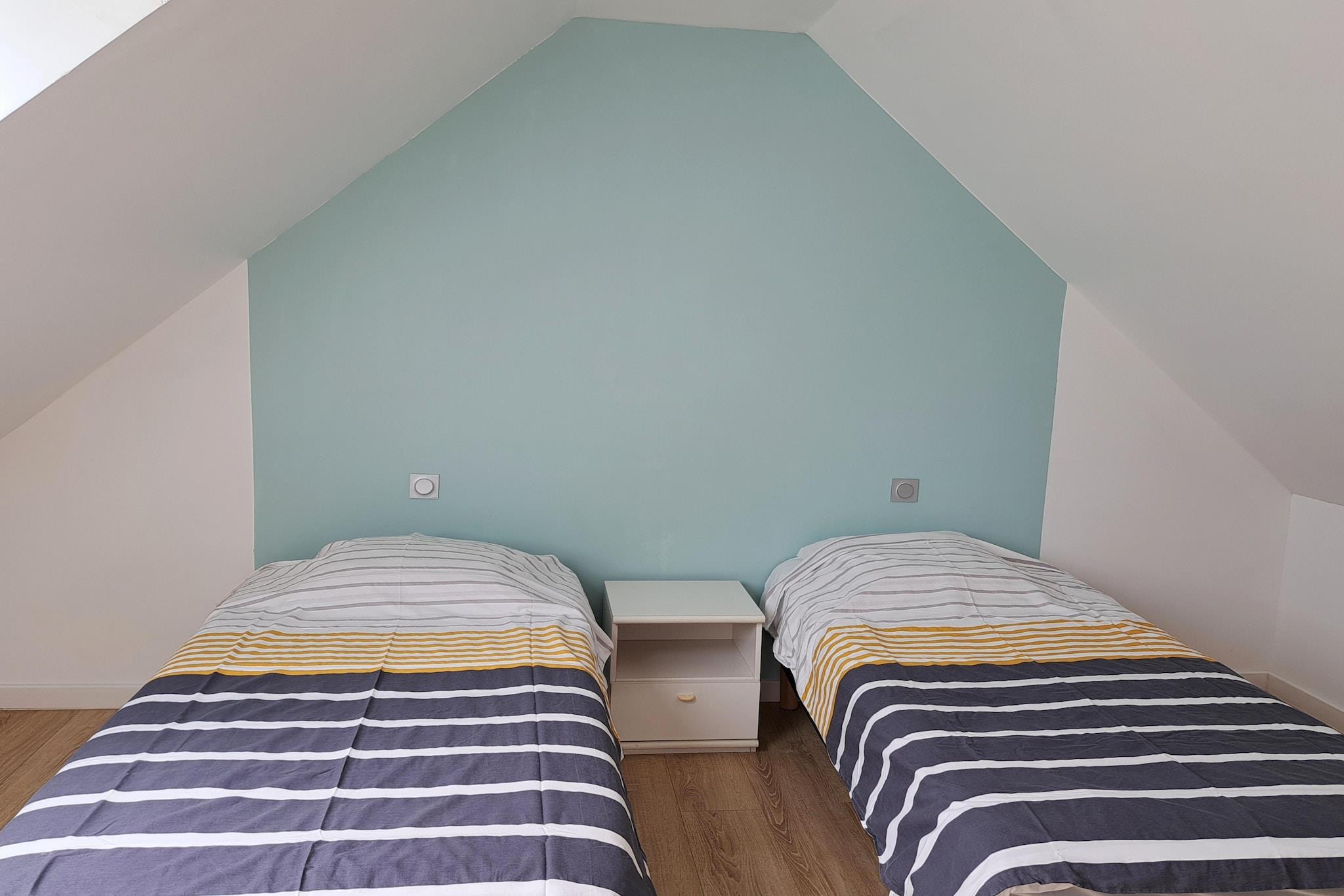 Gemt væk i et fredeligt hjørne af Bretagne ligger dette charmerende, dobbelthus, som er en del af en rolig ejendom på 9.000 m², der deles af kun fire huse. Hvert hus har sin egen private, lukkede have og en hyggelig terrasse, der tilbyder dig afsondrethed, plads og et sted at nyde havbrisen med din morgenkaffe eller et aftenglas vin. Indenfor er huset moderne, lyst og omhyggeligt møbleret for komfort og lethed. Efter dages udforskning kan du krølle dig sammen ved den knitrende pejs og føle dig hjemme. Uanset om du tilbereder lokale fisk og skaldyr i det fuldt udstyrede køkken eller nyder en god bog i haven, er huset det perfekte sted for en afslappende ferie. Bare 3 minutters gang væk lokker den vidtstrakte sandstrand i Telgruc-sur-Mer. Stranden er ideel til familier og byder på blide bølger, en strandbar med snacks og endda en sejlerskole for de eventyrlystne. Gå en tur på den naturskønne GR34-kystrute eller slap af ved vandet - dette er et sted, hvor tiden går langsommere. Oplev den historiske charme i Douarnenez, en tidligere sardinhavn kendt for sine fiskerestauranter og havnecaféer. Besøg Locronan, en af Frankrigs mest maleriske middelalderlandsbyer, der ofte bruges som filmset for sin tidløse skønhed. Udforsk de naturlige vidundere på Crozon-halvøen med dramatiske klipper, skjulte bugter og kyststier, der skaber uforglemmelige vandreture. Uanset om du er her for natur, kultur eller ren afslapning, tilbyder dette feriehus en perfekt blanding af komfort og bretonsk charme.