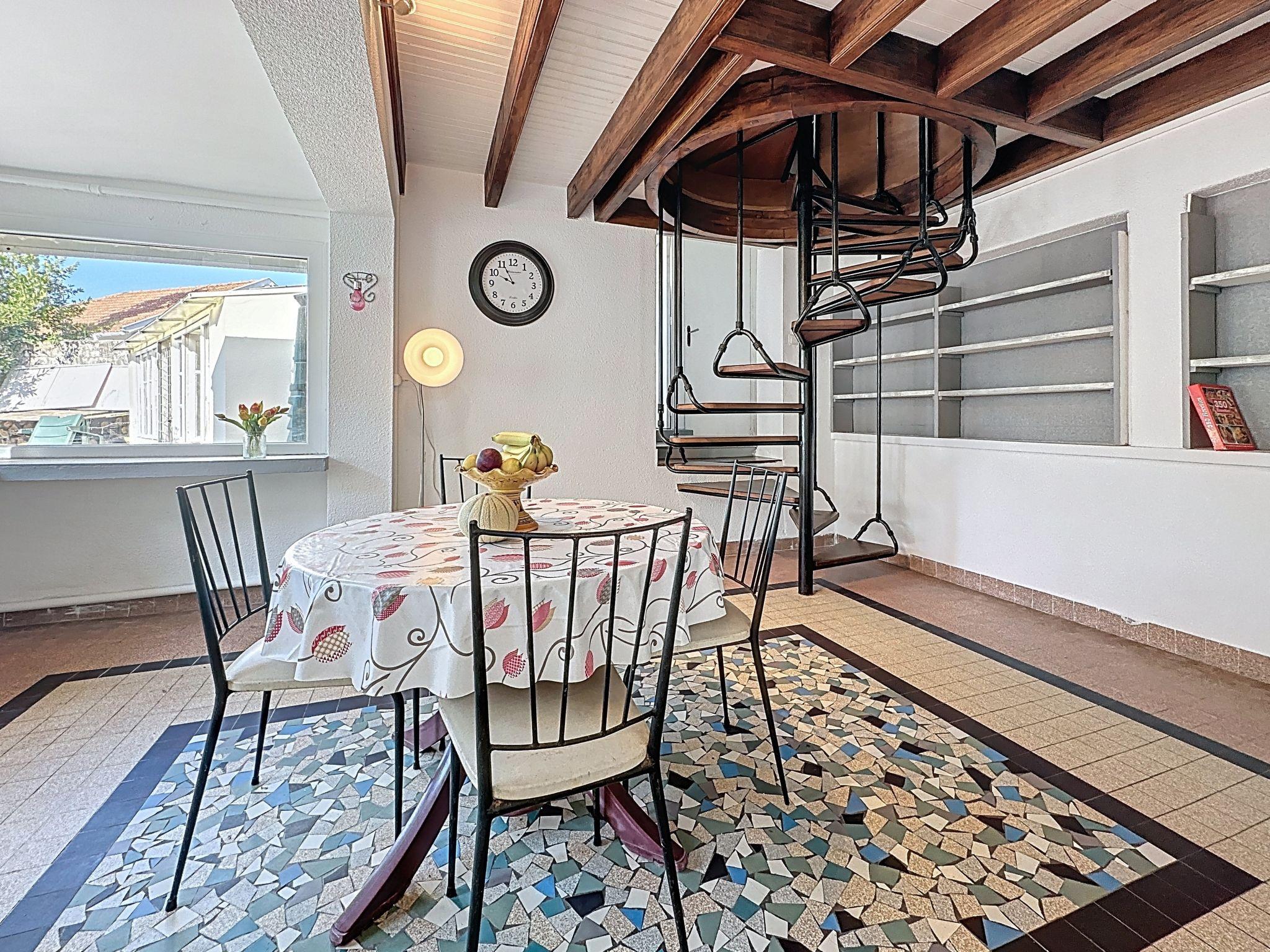 4-room house 95 m2. Object suitable for 4 adults + 2 children. Living/sleeping room with 1 double sofabed (130 cm, length 190 cm), TV (flat screen). Dining room. Exit to the terrace. Kitchen (3 hot plates, oven, dishwasher, toaster, kettle, microwave, freezer, electric coffee machine). Upper floor: (spiral staircase). Bathroom, sep. WC. 2nd upper floor: (spiral staircase), 1 room with 1 french bed (160 cm, length 190 cm). 1 room with 1 french bed (140 cm, length 190 cm). Terrace 20 m2. Terrace furniture, barbecue, deck chairs (2). Facilities: washing machine. Internet (WiFi, free). Parking. Please note: non-smokers only. Smoke alarm. Offer by a private individual according to Art. 155, IV of CGI. 44182000404TE