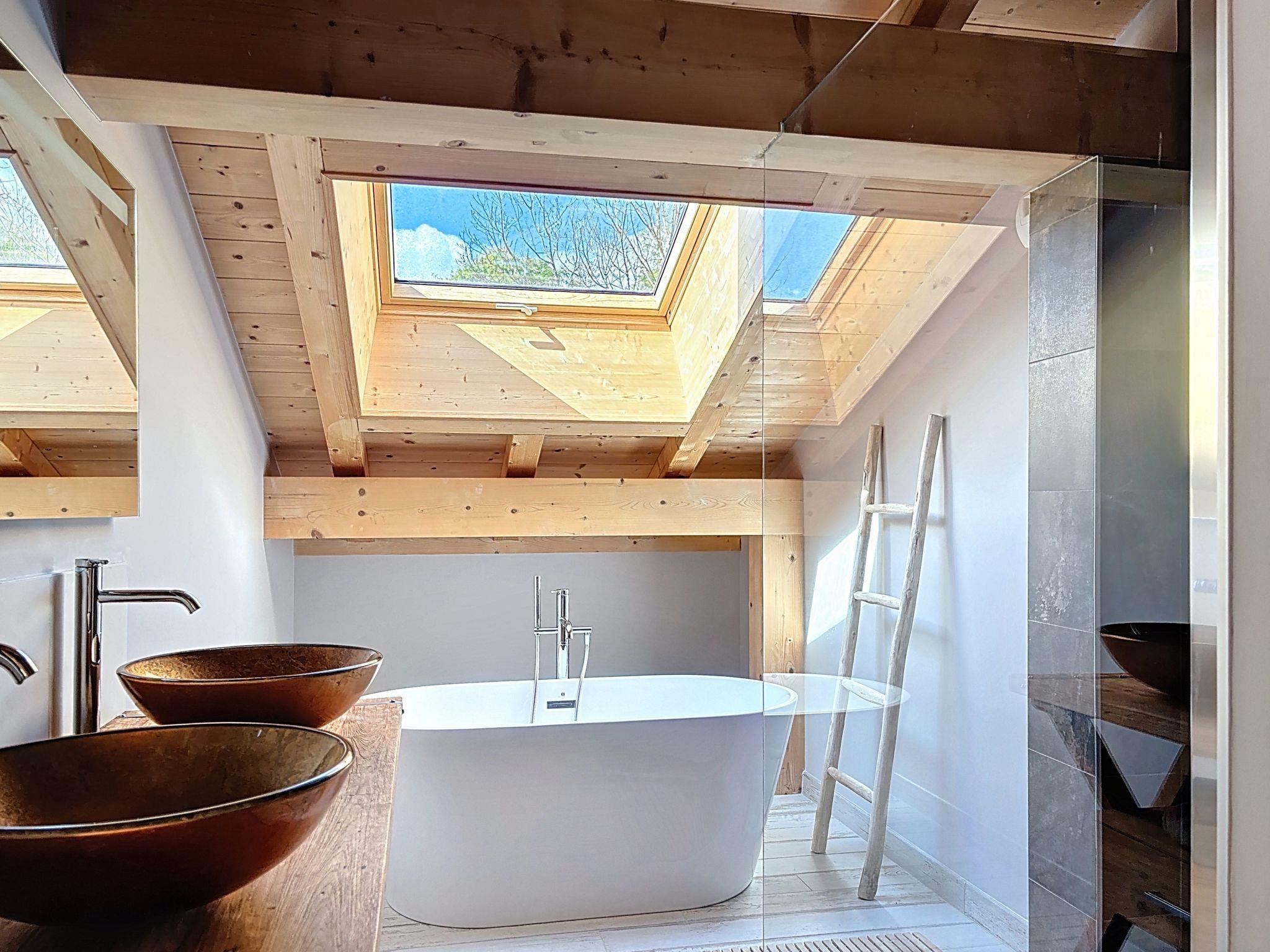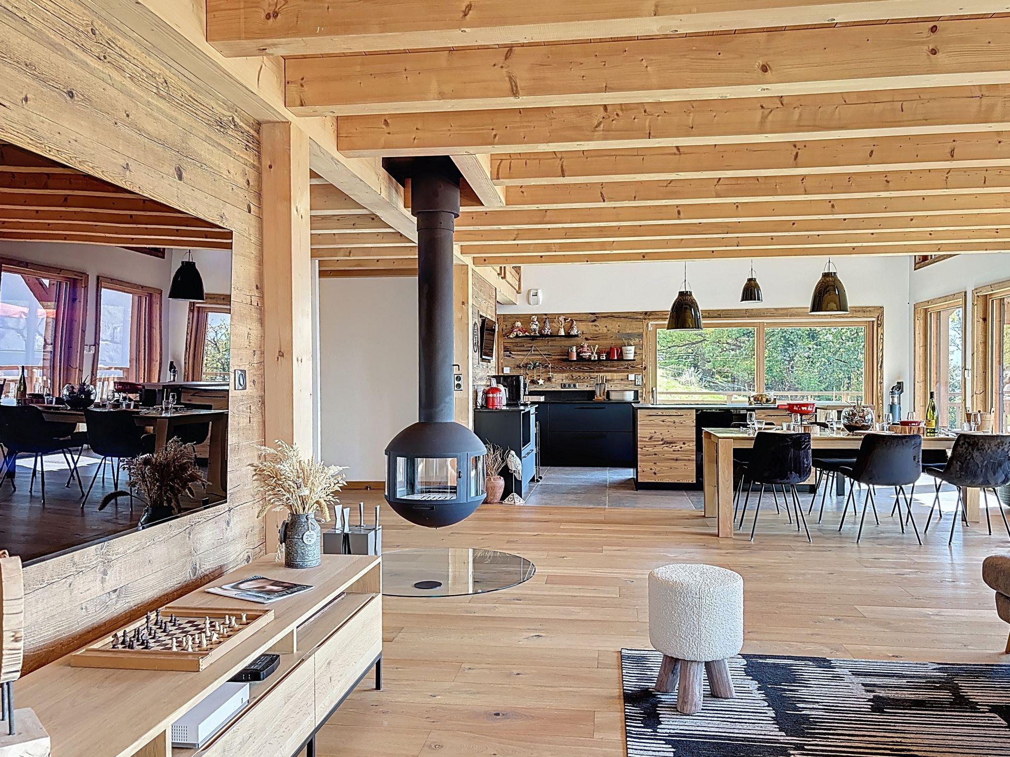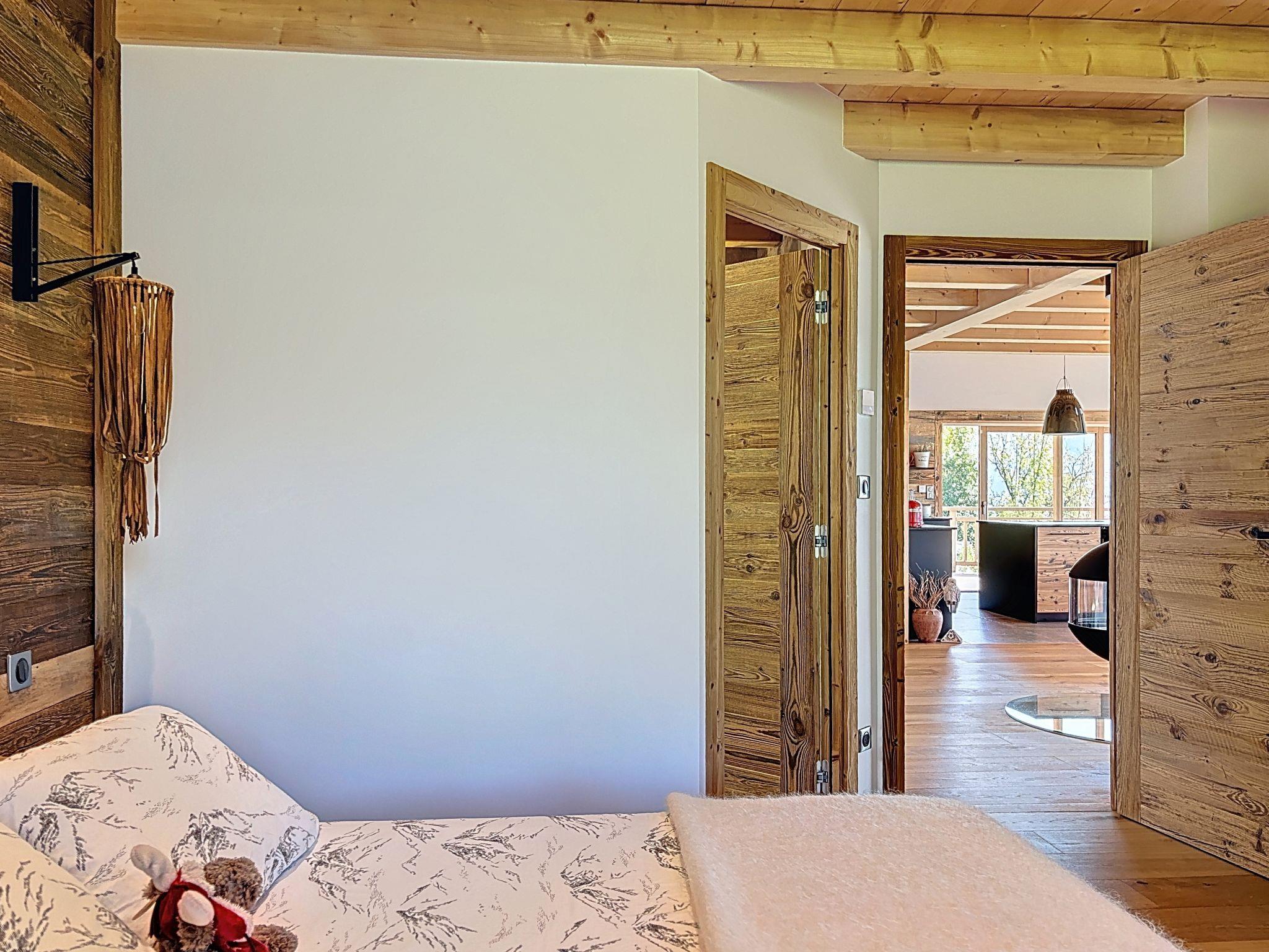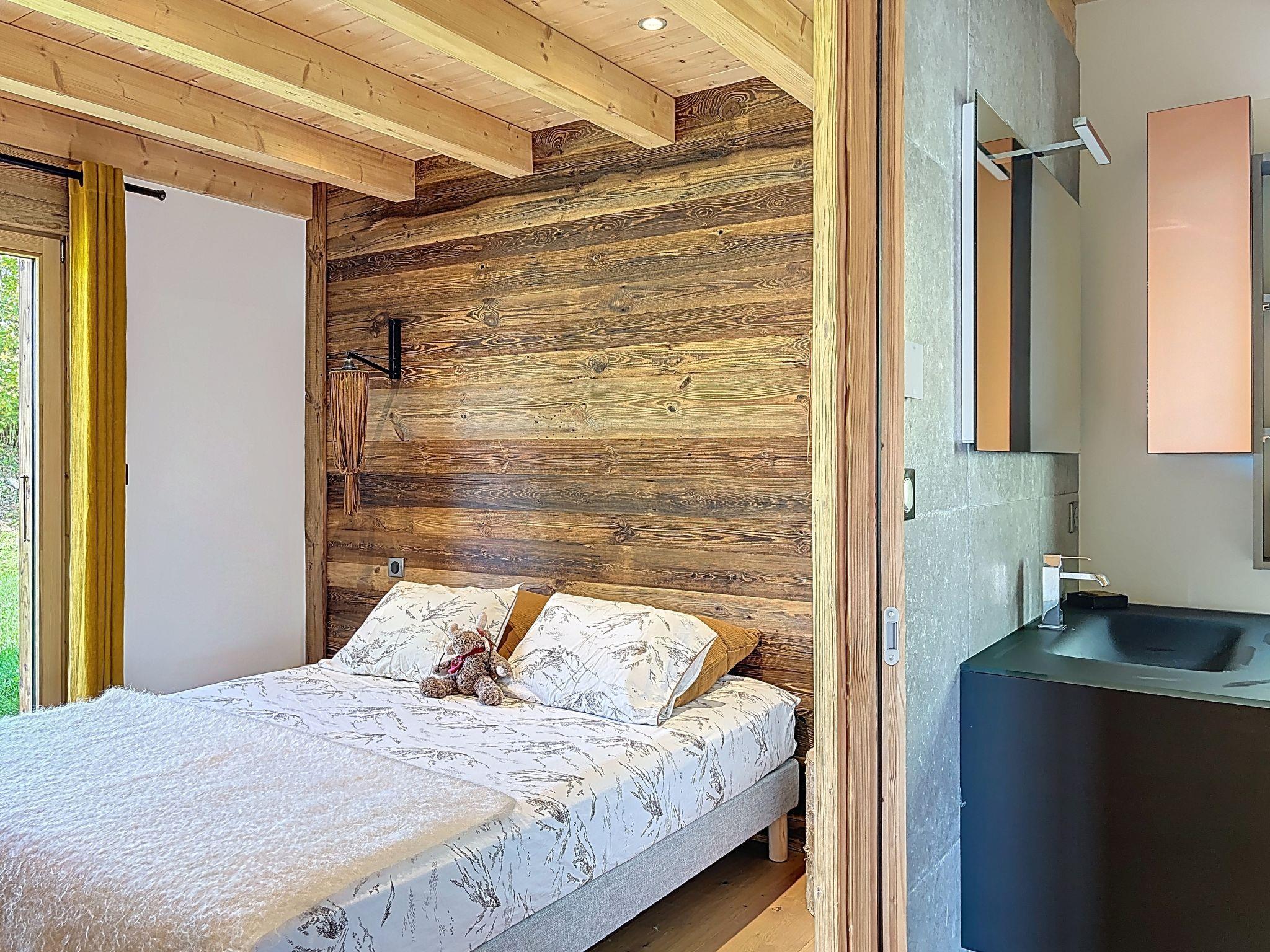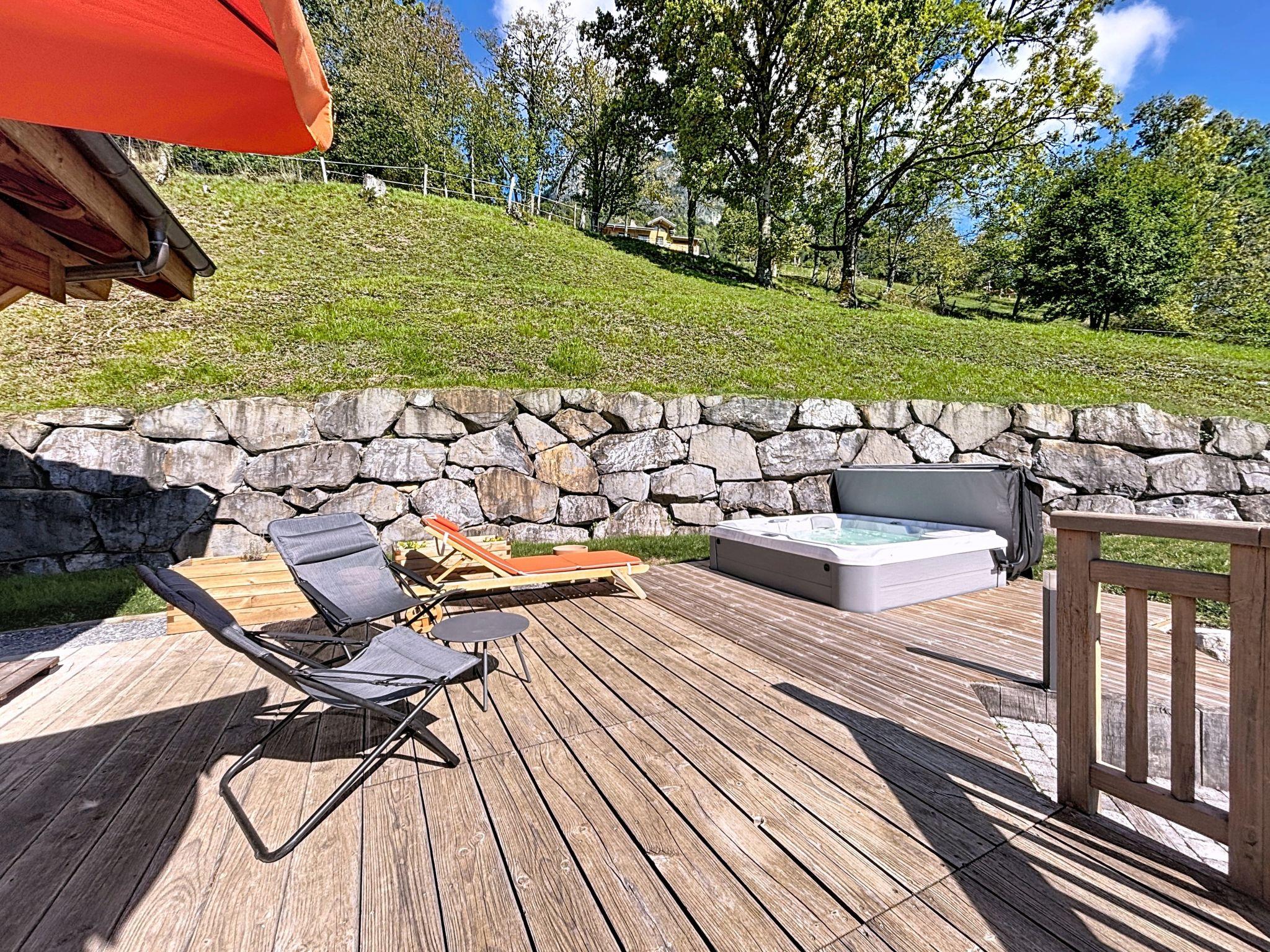 Thyez 5 km from Samoêns: Very beautiful chalet "Chalet ECO", 2 storeys, built in 2022. In the resort 3 km from the centre of Clusas, in a sunny position on a slope, 5 km from the skiing area. Private: terraced garden (not fenced) lawn and wildlife garden. Hot tub, barbecue. In the house: storage room for skis, central heating system, washing machine, tumble dryer. Parking (for 4 cars) at the house on the premises. Grocery 1.5 km, supermarket 1.5 km, shopping centre 1.5 km, restaurant 1.5 km, bakery 1.5 km, café 1.5 km, bus stop "Marignièr" 1.5 km, railway station "Cluses" 6 km, thermal baths "Saint Gervais" 28 km, bathing lake "sud du lac Lèman" 10 km, lake Lac du Nanty 6 km. Walking paths from the house 100 m, skisport facilities 5 km, slopes 5 km, fishing possibilities 6 km. Nearby attractions: Annecy 50 km, Chamonix 50 km, Sixt-Fer-à-Cheval 18 km, Sur Le Coux Un point de vue panoramique 4 km. Well-known ski regions can easily be reached: Grand Massif/Morillon/Les Carroz 18 km, Porte du Soleil/les Gets/Morzine 20 km, Praz de Lys 12 km. Well-known lakes can easily be reached: Lac Lèman 35 km, Base de Loisirs des Lacs de Thyez 13 km. Please note: car recommended. Baby equipment. Groups of teenagers on request only. Part of the house is closed and unoccupied.