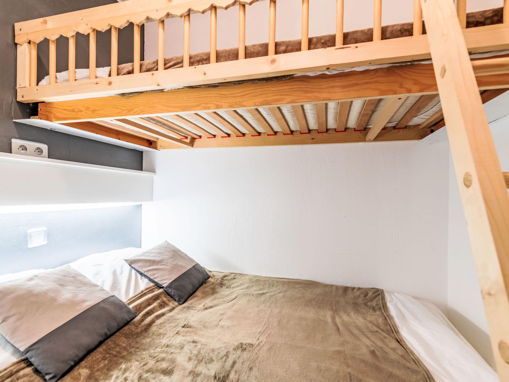 1-room studio 32 m2. Renovated, comfortable furnishings: living/dining room with TV (flat screen), heating stove. Sleeping alcove with 1 double bed (1 x 140 cm, length 190 cm). Sleeping alcove with 1 x 1 bunk beds (80 cm, length 190 cm), 1 french bed (1 x 140 cm, length 190 cm). Open kitchen (2 hot plates, dishwasher, toaster, kettle, microwave, electric coffee machine). Bathroom, shower, sep. WC. Balcony, south facing position. Very beautiful view of the mountains. Facilities: Internet (WiFi, extra). Parking (roofed, 1 car). Please note: non-smokers only. Smoke alarm. Offer by a commercial proprietor according to Art. 155, IV, CGI