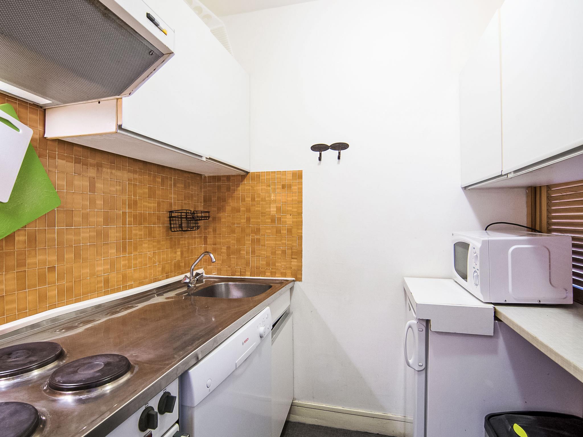 2-room apartment 42 m2 on 6th floor. Living/dining room with 1 pull-out bed (2 pers. 2 x 80 cm, length 190 cm), TV. Entrance hall with 1 bed (80 cm, length 190 cm). 1 room with 1 bed (80 cm, length 190 cm), 1 x 2 bunk beds (80 cm, length 190 cm). Kitchenette (3 hot plates, dishwasher, microwave). Bathroom, sep. WC. Balcony, south facing position. Facilities: Internet (WiFi, extra). Please note: smoke alarm.