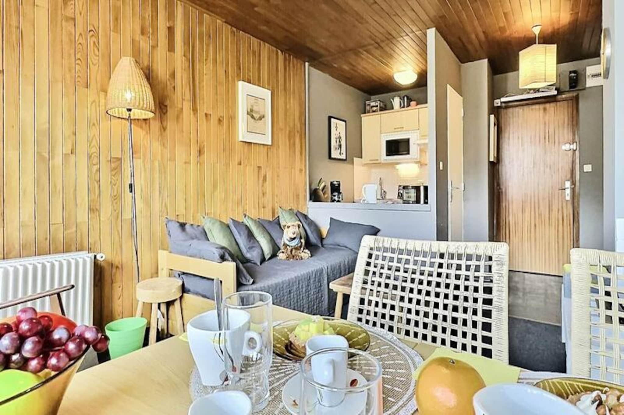 I hjertet af Tignes' pulserende Lavachet-distrikt tilbyder denne hyggelige etværelseslejlighed et indbydende tilflugtssted for dine alpine eventyr. Uanset om du er her for spændingen ved skiløb eller roen ved sommervandreture, kombinerer dette charmerende sted bekvemmelighed og komfort med sin førsteklasses beliggenhed kun to minutters gang fra pisterne og de lokale butikker. Fra den sydvestvendte balkon kan du nyde den betagende, uhindrede udsigt over de omkringliggende bjerge, mens du planlægger din dag i de franske alper. Indenfor er den 40 m² store lejlighed omhyggeligt designet til at rumme op til fem gæster. Stuen har en komfortabel dobbeltsovesofa, mens soveværelset tilbyder en hyggelig dobbeltseng til afslappende nætter. En ekstra enkeltseng i entréen giver fleksible sovemuligheder. Det åbne tekøkken er udstyret med alt, hvad du behøver for at tilberede måltider, herunder elektrisk komfur, ovn, opvaskemaskine og køleskab. Efter en dag med eventyr kan du slappe af i opholdsstuen med fjernsynet eller nyde et afslappende bad i badeværelsets badekar. Boligen har også et skiskab for din bekvemmelighed, og kæledyr er velkomne til at deltage i dit ophold. Med betalt udendørs og indendørs parkering på resortet har du nem adgang til alt, hvad Tignes har at byde på. Fra den livlige afterski-scene til de fantastiske alpine løjper placerer denne lejlighed dig i centrum af det hele. Uanset om du søger adrenalinfyldte dage på pisterne eller fredelige aftener omgivet af bjergskønne omgivelser, er dette den perfekte base for din Tignes-ferie.