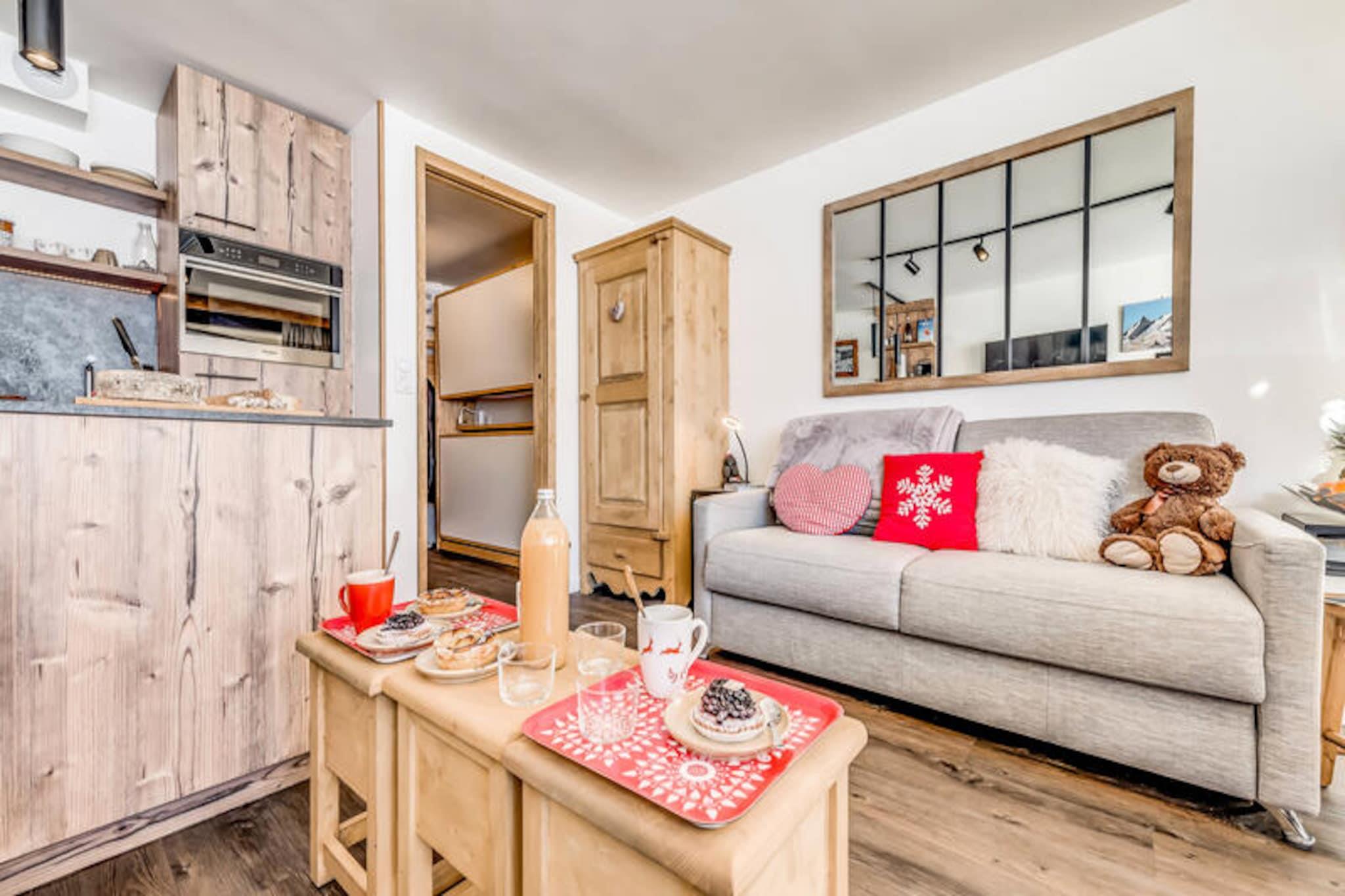 Højt over det glitrende vand i Tignes Le Lac tilbyder dette førsteklasses studie en plads på første række til den alpine magi på en af ??Frankrigs mest ikoniske skisportssteder. Forestil dig at vågne op til solopgang over søen, træde ud på din sydvendte balkon og indånde den friske bjergluft, mens pisterne lokker lige uden for din dør. Med ski-in/ski-out adgang er du perfekt placeret til at udforske verdensklasse pister i Tignes og Val d'Isère, hvilket gør hver dag til et eventyr i det snedækkede paradis i de franske alper. \n\nDette gennemtænkt designede studie, der ligger på 8. sal i Residence LE PALAFOUR, har komfortabel plads til op til fire gæster. Rummet er smart indrettet med udtrækkelige køjesenge i entréen og en hyggelig opholdsstue med en sovesofa og en sofa, der ikke kan omdannes til en anden. Tekøkkenet er udstyret med moderne bekvemmeligheder, herunder keramiske kogeplader, et køleskab med fryserum, en multifunktionsovn og en opvaskemaskine, så du har alt, hvad du behøver for at tilberede måltider efter en dag på pisterne. Badeværelset har bruser, håndvask og separat toilet, komplet med vaskemaskine for ekstra bekvemmelighed. Premium hotelservices såsom sengelinned, håndklæder og slutrengøring (eksklusive køkkenet) er inkluderet, hvilket sikrer et problemfrit ophold. \n\nTræd udenfor og oplev det pulserende hjerte af Tignes Le Lac. Residensen ligger kun 50 meter fra vandlandet LE LAGON og 100 meter fra sports- og kulturkomplekset TIGNESPACE, der tilbyder et væld af aktiviteter til både afslapning og eventyr. Indkøbscentret på stedet har skiskoler, sportsbutikker, et supermarked, et bageri, barer og restauranter, der tilbyder alt hvad du behøver inden for rækkevidde. Uanset om du er her for at stå på ski, vandre eller blot nyde det fantastiske alpine landskab, er dette studie din port til uforglemmelige bjergminder. \n\nVælg dette charmerende tilflugtssted for dets uovertrufne beliggenhed, moderne komfort og betagende udsigt, og lad magien i Tignes Le Lac blive baggrunden for din næste alpine flugt.