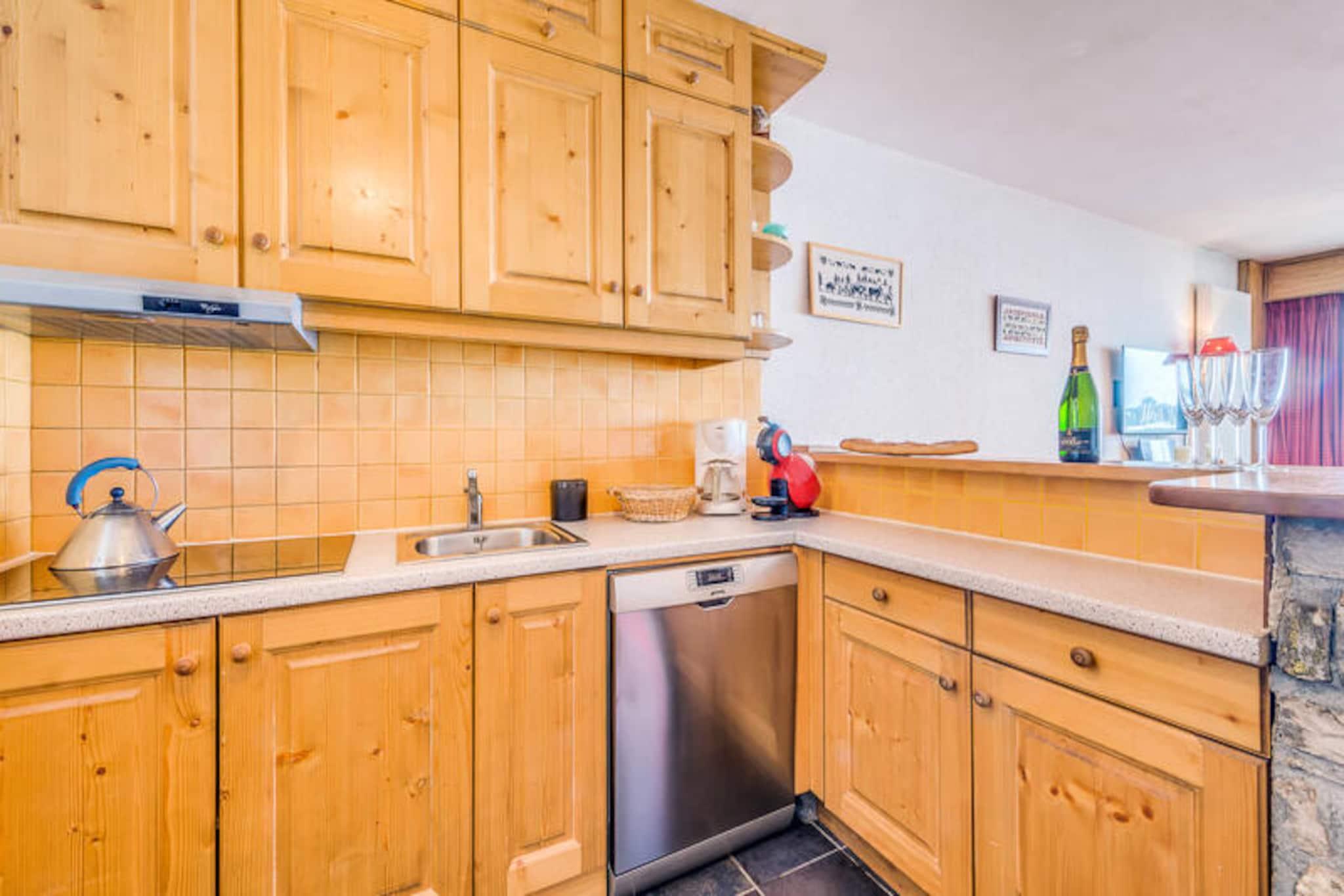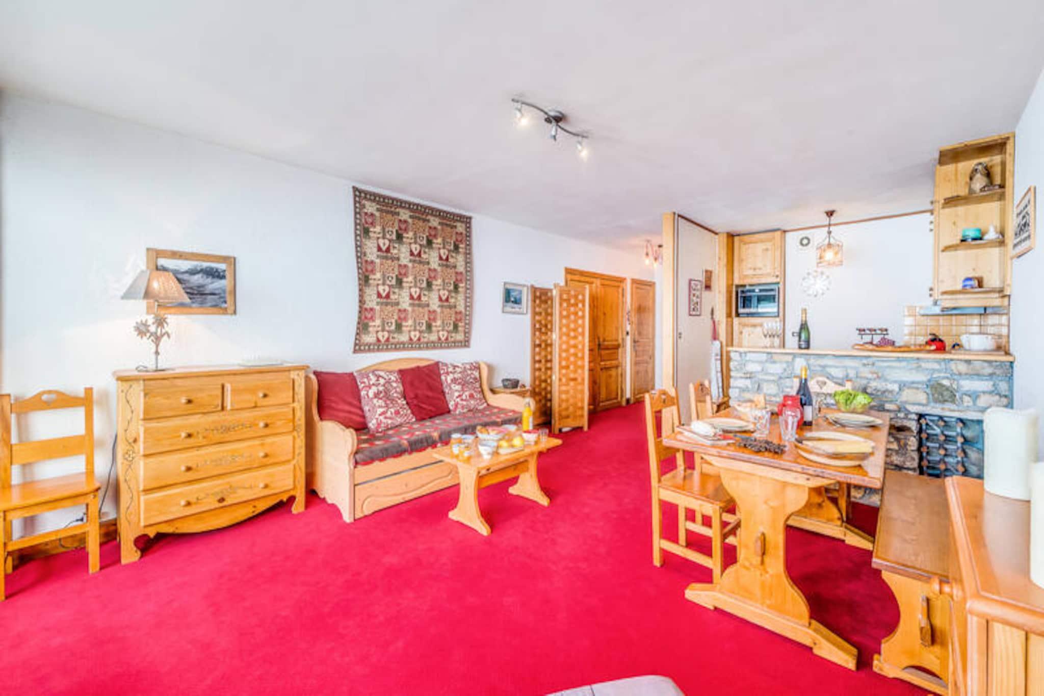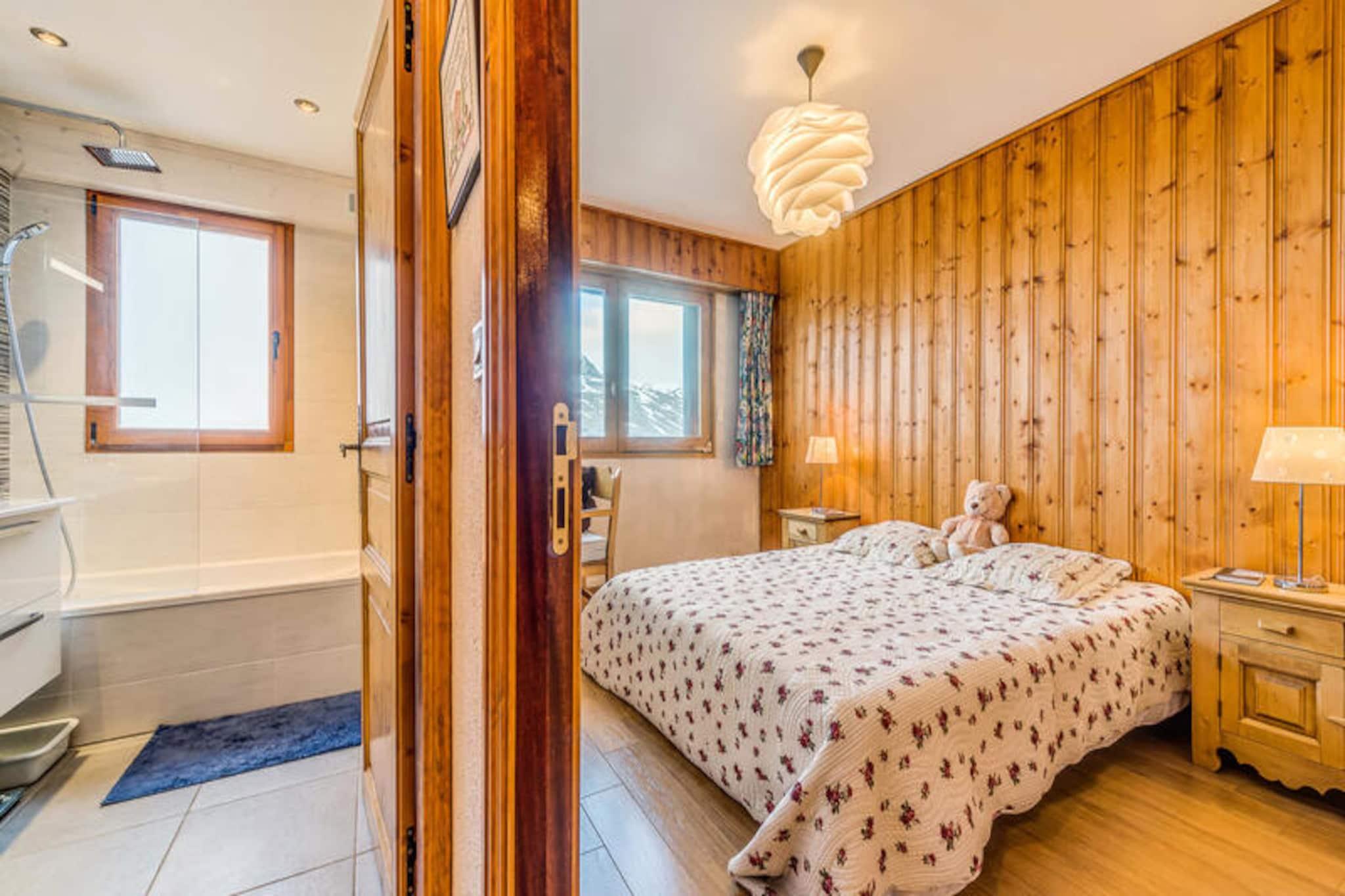 Højt over det glitrende vand i Tignes-Le-Lac tilbyder denne smukt renoverede lejlighed en perfekt blanding af alpin charme og moderne komfort. Beliggende i 2.100 meters højde kan den prale af en betagende udsigt over Grande Motte-gletsjeren, Tovière-massivet og den fredfyldte sø nedenfor. Uanset om du er her for vintersport eller sommereventyr, inviterer denne førsteklasses bolig dig til at opleve magien i de franske alper med stil. Kun få skridt fra pisterne, svævebanerne og de pulserende landsbyfaciliteter er det et paradis for dem, der søger både bekvemmelighed og ro. \n\nIndenfor udstråler lejligheden varme med sin Savoyard-inspirerede indretning og gennemtænkte detaljer. Den rummelige stue åbner ud til en sydvendt balkon, hvor du kan nyde den fantastiske alpine udsigt. En hyggelig udtræksseng, pejsestol og spiseplads skaber et indbydende rum at slappe af efter en dag med udforskning. Det fuldt udstyrede køkken med keramiske kogeplader, mikrobølgeovn/ovn, køleskab og opvaskemaskine gør det nemt at tilberede solide måltider. Soveværelset med en luksuriøs dobbeltseng og et nordvendt vindue sikrer afslappende nætter. Yderligere bekvemmeligheder inkluderer et moderne badeværelse med badekar, separat toilet og vaskemaskine/tørretumbler for ekstra bekvemmelighed. \n\nUd over lejligheden tilbyder boligen private skibokse og nem adgang til nærliggende attraktioner. Palafour- og Tovière-svævebanerne ligger mindre end 50 meter væk, mens vandlandet LE LAGON og sportskomplekset TIGNESPACE kun ligger en kort gåtur derfra. Udforsk den livlige landsby med dens udvalg af butikker, bagerier, restauranter og barer, eller begiv dig ud i den uberørte vildmark for at stå på ski, vandre eller tage på gletsjerture. \n\nUanset om du jagter puddersne på pisterne eller soler dig i sommersolen ved søen, lover dette alpine tilflugtssted uforglemmelige øjeblikke i en af ??Frankrigs mest ikoniske bjergdestinationer.