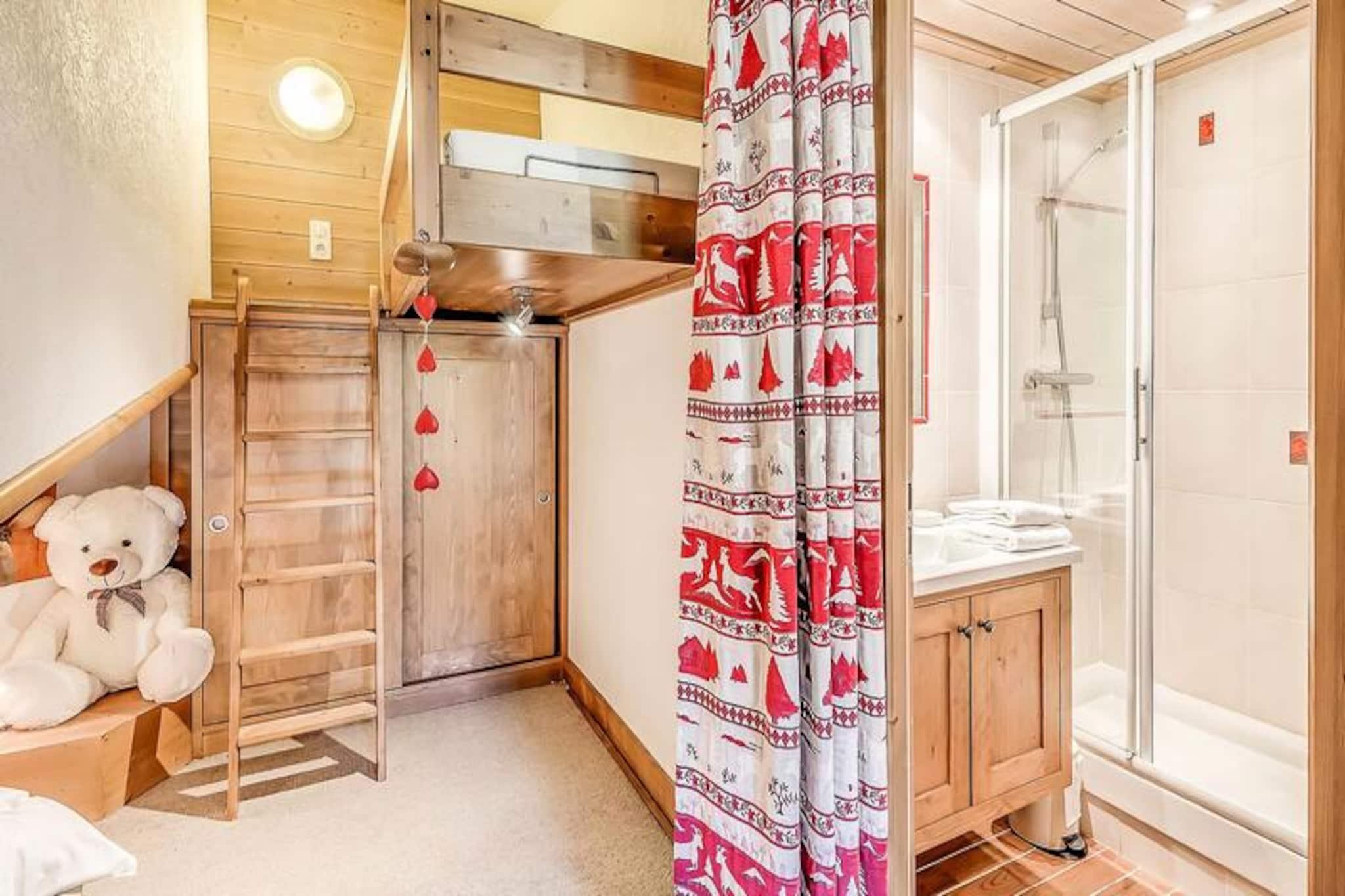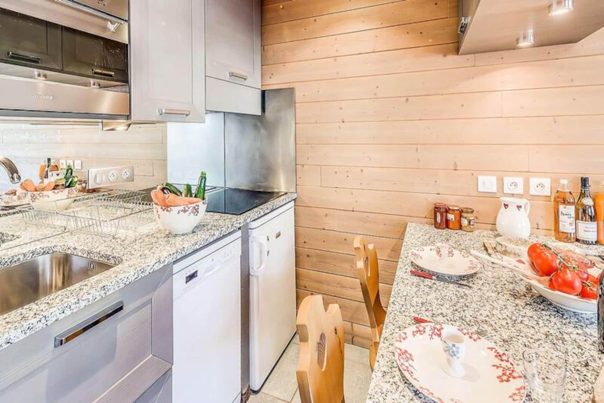 Højt over det maleriske Tignes Val Claret i en højde af 2.100 meter tilbyder denne luksuriøse duplex-lejlighed i Les Moutières Residence et enestående alpint fristed. Med pisterne, den franske skiskole og livlige lokale butikker kun 250 meter væk, befinder du dig i en perfekt position til at nyde det bedste af dette verdensklasse skisportssted. Fra den sydvendte altan kan du nyde den fantastiske udsigt over bjergene, mens den friske alpine luft forfrisker dine sanser og sætter stemningen for en uforglemmelig ferie. Denne gennemtænkte lejlighed på 55 kvadratmeter kan komfortabelt rumme op til syv gæster. På første etage er det åbne køkken fuldt udstyret med moderne apparater, herunder keramiske kogeplader, ovn og opvaskemaskine, hvilket gør det ideelt til at tilberede solide måltider efter en dag på pisterne. Den hyggelige stue har en sovesofa, tv og en charmerende soveplads med en enkeltseng, mens den sydvendte altan indbyder til afslapning med en varm drik og en betagende udsigt. Ovenpå finder du et roligt soveværelse med en dobbeltseng, et lille skrivebord og et tv samt en soveplads med en enkeltseng og en køjeseng. To veludstyrede badeværelser, et på hver etage, sikrer bekvemmelighed og komfort for alle. Boligen tilbyder selv førsteklasses faciliteter, herunder gratis Wi-Fi, private skiskabe og hotelservice såsom sengelinned, håndklæder og rengøring ved afrejse. Yderligere muligheder såsom babyudstyr og overdækket offentlig parkering er tilgængelige efter anmodning. Med sin førsteklasses beliggenhed er du kun få skridt fra det livlige centrum af Tignes Val Claret, hvor der er masser af après-ski-aktiviteter, spisesteder og underholdning. Uanset om du vil suse gennem den friske puddersne om vinteren eller udforske de naturskønne vandrestier om sommeren, er denne lejlighed din indgang til det bedste af de franske alper. Oplev den perfekte blanding af eventyr og afslapning i dette hyggelige, men luksuriøse bjergparadis.