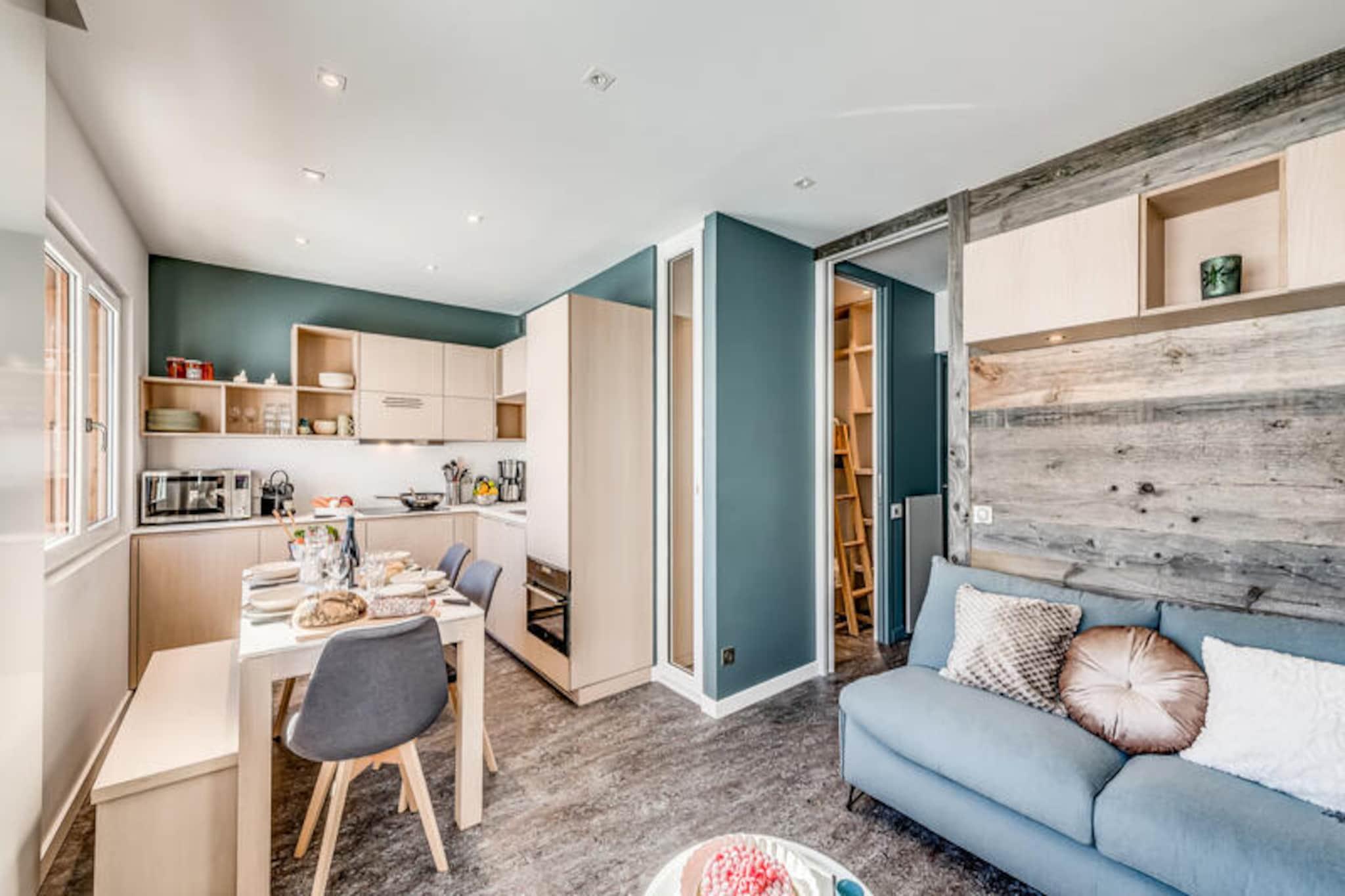 Højt over det fredfyldte vand i Tignes-Le-Lac tilbyder denne førsteklasses toværelseslejlighed i ARMAILLIS-residensen et alpint tilflugtssted som ingen anden. Med sin misundelsesværdige beliggenhed i 2.100 meters højde kan gæsterne nyde en betagende udsigt over søen, Tovière og den majestætiske Grande Motte-gletsjer gennem to store sydvendte vinduer. Uanset om du søger spændende dage på pisterne eller rolige aftener ved pejsen, tilbyder denne ejendom den perfekte balance mellem eventyr og afslapning. Indenfor er lejligheden omhyggeligt designet til at maksimere komfort og bekvemmelighed. Opholdsstuen har en hyggelig sovesofa til to, et fladskærms-tv og en spiseplads, der inviterer dig til at dele måltider og øjeblikke med dine kære. Det åbne køkken er fuldt udstyret med moderne apparater, herunder opvaskemaskine, ovn, mikrobølgeovn, keramisk kogeplade og køleskab, hvilket gør det nemt at tilberede solide alpine festmåltider. Soveværelset med sine to enkeltsenge og bløde dyner sikrer afslappende nætter efter en dag med udforskning. Et elegant badeværelse med bruseniche og et separat toilet bidrager til lejlighedens praktiske anvendelighed, mens en vaskemaskine giver ekstra bekvemmelighed ved længere ophold. ARMAILLIS-residensen ligger på Rue de la Poste, få skridt fra det pulserende hjerte af Tignes-Le-Lac. Pisterne ligger kun få øjeblikke fra din dør, ligesom vandlandet LE LAGON og sports- og kulturkomplekset TIGNESPACE. Uanset om du står på ski, snowboarder eller bare nyder den alpine atmosfære, er alt hvad du behøver inden for rækkevidde. Med inkluderede hotelservices såsom sengelinned, håndklæder og slutrengøring er dit ophold designet til at være lige så problemfrit, som det er mindeværdigt. Vælg denne exceptionelle lejlighed til din næste bjergferie, og opdag, hvorfor Tignes-Le-Lac er en destination, der fanger hjertet hos enhver rejsende.