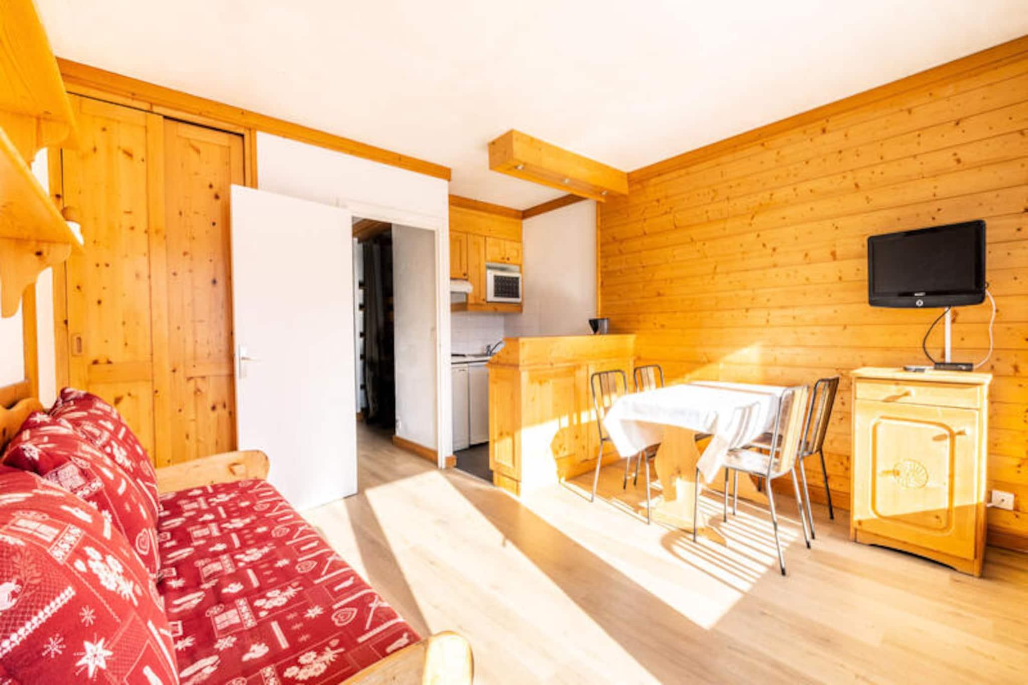 I hjertet af Tignes le Lac, hvor charmen ved alpint liv møder spændingen ved skiløb i verdensklasse, ligger den hyggelige bolig Le Bec Rouge. Denne indbydende studiolejlighed tilbyder en førsteklasses beliggenhed ved foden af ??pisterne, hvilket gør den til et ideelt valg for både skientusiaster og bjergelskere. Fra den sydøstvendte terrasse kan du nyde den friske bjergluft og den fredfyldte skønhed på de omkringliggende toppe, alt imens du kun er få skridt fra landsbyens pulserende faciliteter. Denne studiolejlighed på 28 m² er designet til komfort og har plads til op til fire gæster med en smart planløsning, der maksimerer pladsen. Opholdsstuen har en udtræksseng til to personer, mens entréen har en køjeseng, perfekt til familier eller små grupper. Et fuldt udstyret tekøkken med elektrisk komfur, mikrobølgeovn og opvaskemaskine sikrer, at du nemt kan tilberede måltider efter en dag på pisterne. Moderne bekvemmeligheder såsom et tv og et skiskab i stueetagen bidrager til det praktiske ved dit ophold. Le Bec Rouges uovertrufne beliggenhed placerer dig i gåafstand fra skibutikker, restauranter og skiskolen, hvilket gør din ferie så problemfri som muligt. Om vinteren kan du drage fordel af fordelagtige priser på liftkort til Tignes og Val d'Isère, mens sommeren bringer My Tignes-kortet, der giver adgang til en række spændende aktiviteter. Uanset om du cykler gennem frisk puddersne eller udforsker alpine stier, er denne bolig din port til uforglemmelige eventyr. Med sin varme atmosfære, kæledyrsvenlige politik og nærhed til alt, hvad Tignes har at byde på, er Le Bec Rouge mere end bare et sted at bo - det er en base for at skabe dyrebare minder i hjertet af de franske alper.