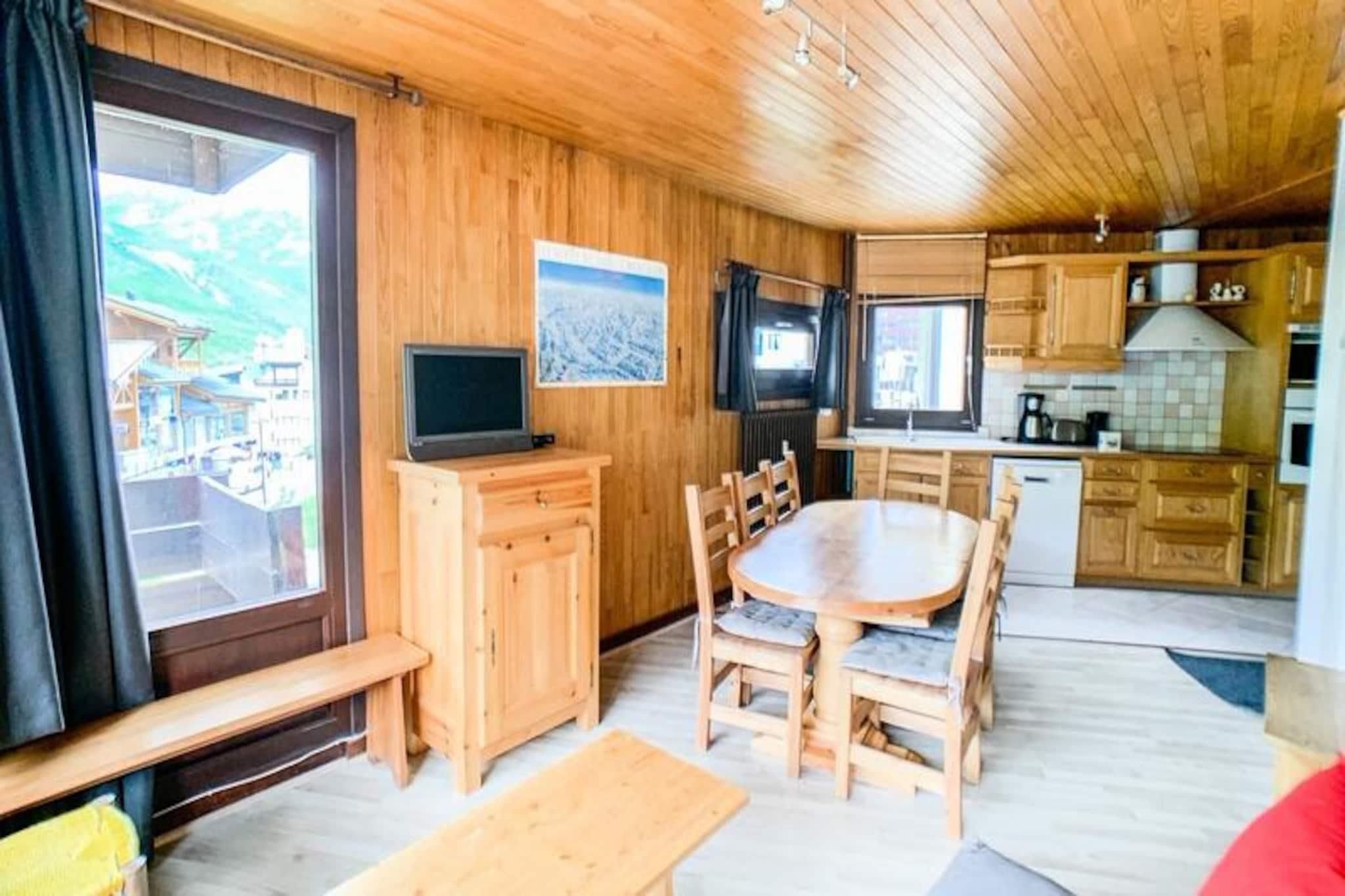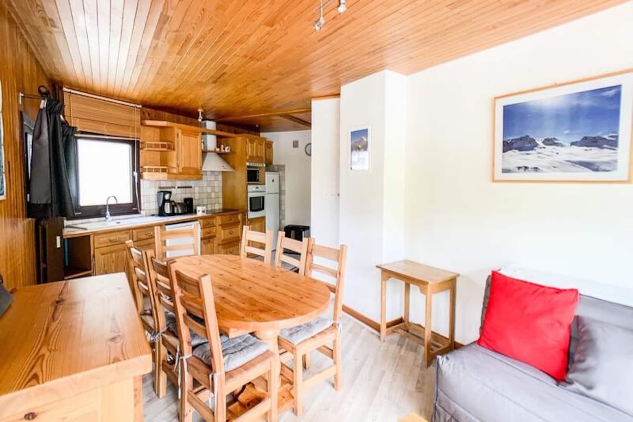 Højt over de glitrende pister i Tignes Val Claret tilbyder denne indbydende alpine lejlighed et paradis for både vintersportsentusiaster og sommereventyrere. Med ski-in/ski-out adgang og ESF-mødestedet kun få skridt væk, er hvert øjeblik designet til ubesværet udforskning af det berømte skiområde Tignes-Val d'Isère. Den sydvendte balkon inviterer dig til at nyde solen, mens du beundrer den betagende udsigt over bjergene, der sætter scenen for uforglemmelige alpine minder. Uanset om du er her for at grave dig gennem uberørt puddersne eller sole dig i sommerens bjergro, er denne bolig din port til det hele. \n\nIndenfor har den 60 m² store lejlighed komfortabelt plads til op til otte gæster, hvilket gør den ideel til familier eller vennegrupper. Den gennemtænkte planløsning omfatter en hyggelig stue med en dobbelt sovesofa, et fuldt udstyret køkken med ovn, mikrobølgeovn og opvaskemaskine samt to soveværelser - et med en dobbeltseng og et andet med køjesenge til fire. Et badeværelse, brusebad og separat toilet sikrer bekvemmelighed for alle, mens skiboksen i stueetagen bidrager til den praktiske anvendelighed. Kæledyr er velkomne mod et mindre gebyr, og ikke-rygerregler sikrer et friskt og behageligt miljø. \n\nUd over lejligheden finder du alt hvad du behøver inden for gåafstand: udlejning af skiudstyr, et supermarked, et bageri og charmerende restauranter og barer. Om vinteren kan du nyde rabat på liftkort for at udforske det store skiområde, mens sommeren bringer My Tignes-kortet, der låser op for aktiviteter som vandreture, mountainbiking og vandsport. Parkering er tilgængelig efter anmodning, hvilket sikrer et problemfrit ophold. \n\nVælg dette hyggelige tilflugtssted til dit næste alpine eventyr og oplev magien i Tignes Val Claret året rundt. Uanset om du jagter puddersne eller bjergstier, tilbyder denne lejlighed den perfekte blanding af komfort, bekvemmelighed og charme.