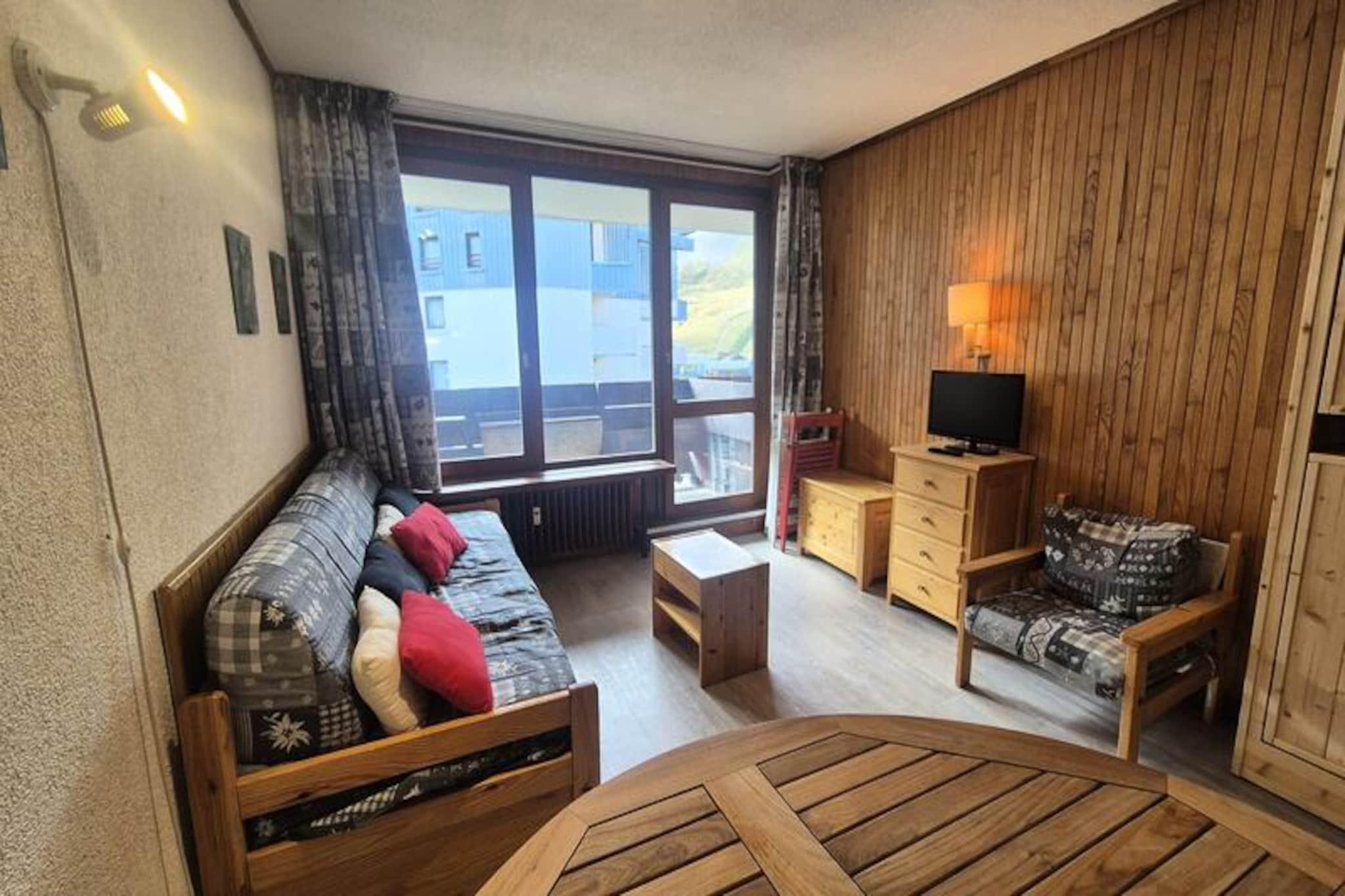 Højt over den pulserende alpelandsby Tignes Val Claret tilbyder dette hyggelige studie i Pramecou-residensen et perfekt tilflugtssted for både eventyrere og afslapningssøgende. Med sin sydvendte balkon vågner du op til de solbeskinnede pister og den betagende udsigt over bjergene, der sætter tonen for en uforglemmelig dag i de franske alper. Uanset om du er her for spændingen ved skiløb eller roen på sommerløjper, placerer denne charmerende ejendom dig i hjertet af det hele. \n\nDet 25 m² store studie er omhyggeligt designet til at rumme op til fire gæster, hvilket gør det ideelt for par, små familier eller venner. Opholdsstuen har en komfortabel sovesofa, mens alkoven i entréen har en hyggelig køjeseng. Det veludstyrede køkken med elektrisk kogeplade, opvaskemaskine og mikrobølgeovn giver dig mulighed for at tilberede solide måltider efter en dag med eventyr. Slap af i den indbydende stue med et tv, eller gå ud på balkonen for at nyde den alpine atmosfære. Et skirum i stueetagen sikrer bekvemmelighed for vintersportsentusiaster.\n\nBeliggende ved foden af ??pisterne tilbyder residensen uovertruffen adgang til skiskoler, udlejningsbutikker og en række lokale faciliteter, herunder et supermarked, bageri, apotek samt livlige restauranter og barer. Om vinteren kan du nyde fordelagtige priser på liftkort, mens sommeren bringer My Tignes-kortet, der låser op for en verden af ??aktiviteter fra mountainbiking til paddleboarding.\n\nUanset om du cykler gennem uberørt sne eller udforsker de frodige alpine landskaber, er dette studie din indgang til det bedste af Tignes. Book nu for en mindeværdig ferie i hjertet af de franske alper.