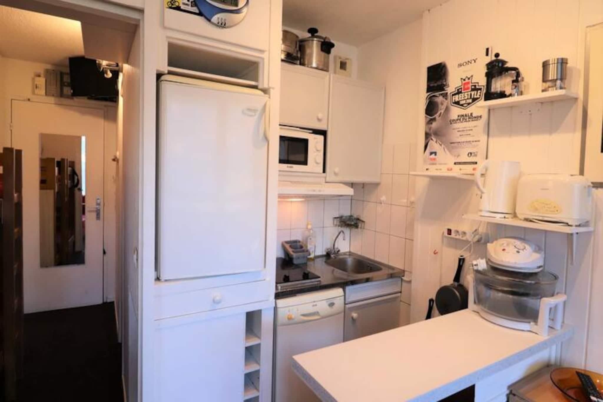Højt over det glitrende vand i Chevril-søen tilbyder dette hyggelige studie i Tignes Le Lavachet et dejligt alpint tilflugtssted for rejsende, der søger både eventyr og afslapning. Med sin førsteklasses beliggenhed i hjertet af landsbyen befinder du dig kun få skridt fra pisterne og de lokale butikker, hvilket gør det til et ideelt valg for skientusiaster og dem, der ønsker at fordybe sig i den pulserende bjergatmosfære. Den nordvendte balkon tilbyder en betagende udsigt over søen og de omkringliggende tinder og skaber en rolig kulisse for din ferie. \n\nIndenfor er det 21 m² store studie omhyggeligt designet til at rumme op til fire gæster. Entréhallen har en køjeseng, der er perfekt til børn eller venner, mens stuen kan prale af en komfortabel sovesofa og et fjernsyn til hyggelige aftener efter en dag på pisterne. Tekøkkenet er udstyret med moderne faciliteter, herunder keramisk kogeplade, mikrobølgeovn/grill, opvaskemaskine og endda en vaskemaskine, hvilket sikrer et bekvemt og stressfrit ophold. Badeværelset, komplet med toilet, bidrager til den praktiske anvendelighed af dette charmerende rum. \n\nResidensen tilbyder også et skirum i stueetagen, hvilket gør det nemt at opbevare dit udstyr og tage direkte ud på pisterne. Om vinteren kan gæsterne benytte sig af rabat på liftkort til Tignes og Val d'Isère, mens sommeren bringer spændingen ved My Tignes-kortet, der giver adgang til en række aktiviteter og eventyr i området. Uanset om du står på ski, vandrer eller blot nyder den alpine skønhed, er Tignes Le Lavachet den perfekte base for uforglemmelige minder. \n\nMed kæledyrsvenlig indkvartering og yderligere tjenester som Wi-Fi, parkering og slutrengøring sikrer dette studie en problemfri og fornøjelig oplevelse for alle. Lad de majestætiske bjerge og den rolige søudsigt inspirere din næste ferie til de franske alper.