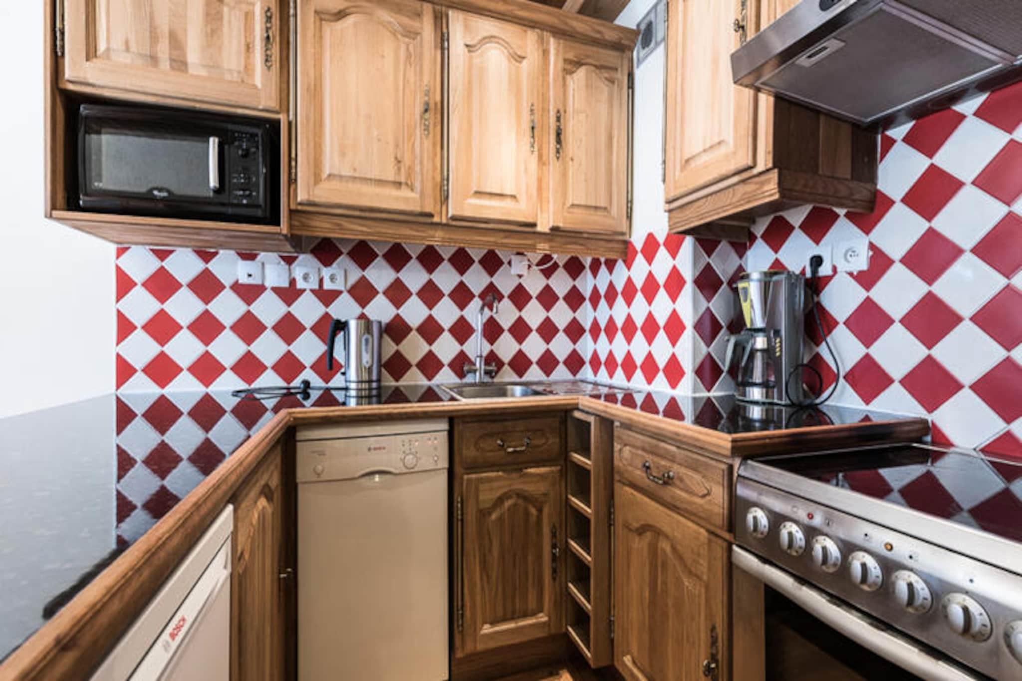 Højt over Tignes-le-Lacs glitrende vand tilbyder denne indbydende lejlighed et roligt tilflugtssted i hjertet af de franske alper. Perfekt beliggende i det rolige Almes-område, kun 600 meter fra Tignes-le-Lacs livlige centrum, hvor butikker, restauranter og afterski-aktiviteter skaber en livlig atmosfære. Med Paquis- og Chaudannes-stoleliftene kun 100 meter væk begynder dine alpine eventyr praktisk talt lige uden for døren, uanset om du snor dig gennem frisk puddersne eller udforsker naturskønne sommerstier. Den vestvendte balkon inviterer dig til at nyde de gyldne nuancer af den nedgående sol, mens du nyder den betagende udsigt over de omkringliggende tinder. \n\nIndvendigt er lejligheden omhyggeligt designet til komfort og praktisk anvendelighed. Den er på 51 kvadratmeter og har plads til op til seks gæster med en hyggelig stue/spisestue, et fuldt udstyret køkken med opvaskemaskine, ovn, elektrisk kogeplade og mikrobølgeovn samt to indbydende sovepladser. Det største soveværelse har køjesenge til fire, mens soveværelset i kabinen tilbyder en hyggelig dobbeltseng. Et moderne badeværelse og separat toilet sikrer bekvemmelighed for alle. Yderligere faciliteter inkluderer et tv, rigelig opbevaringsplads og et skirum i stueetagen for nem adgang til pisterne. \n\nUd over lejligheden tilbyder Tignes spænding året rundt. Om vinteren kan du nyde fordelagtige priser på liftkort til skisportsområderne Tignes og Val d'Isère i verdensklasse. Sommeren forvandler regionen til et udendørs paradis med My Tignes-kortet, der giver adgang til aktiviteter som mountainbiking, paddleboarding og paragliding. Uanset om du søger adrenalinpumpende eventyr eller rolige øjeblikke midt i alpin skønhed, er denne bolig din port til uforglemmelige oplevelser. Book nu og fordyb dig i bjergenes magi.