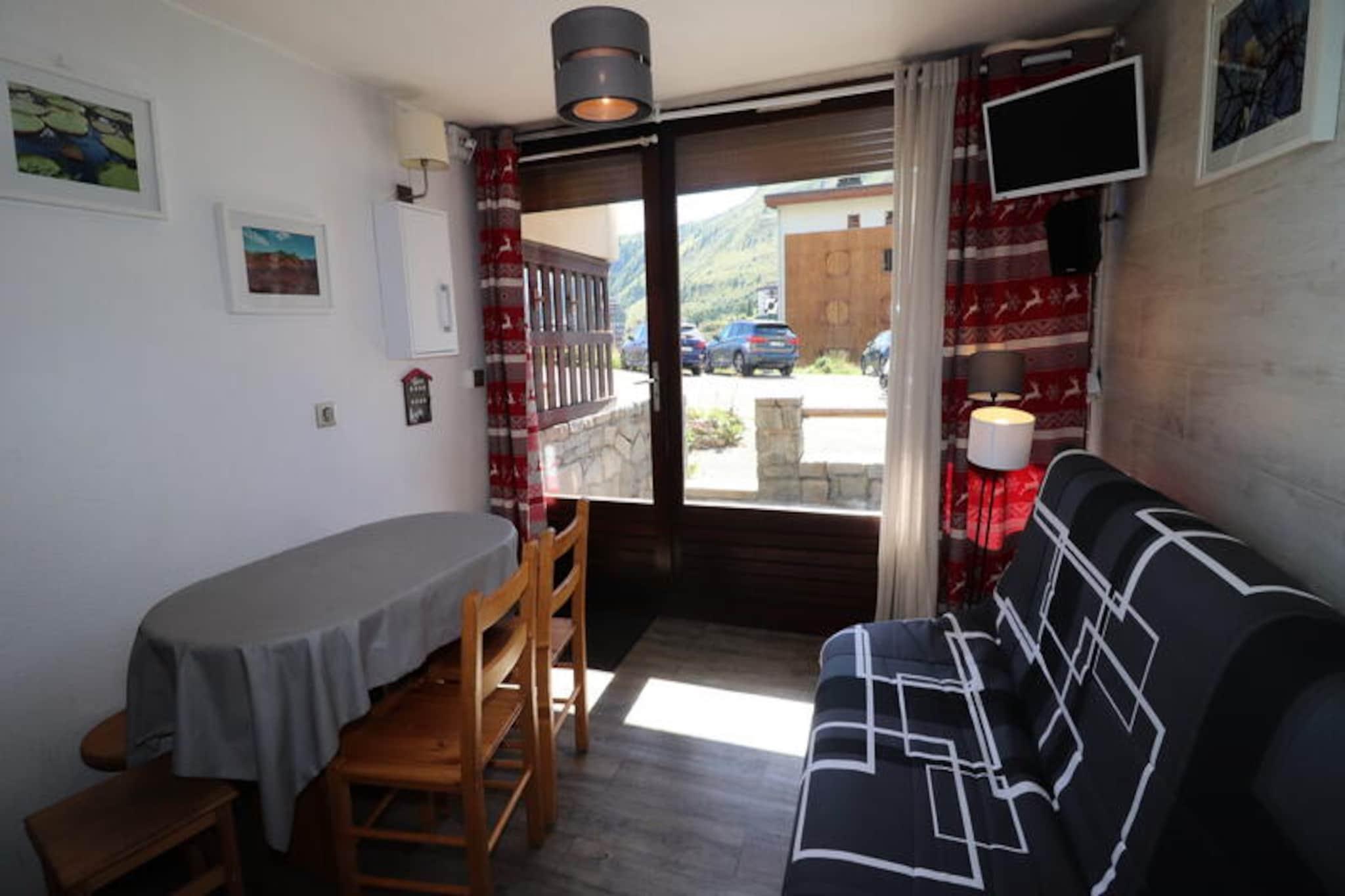 I udkanten af ??det fredfyldte Les Almes-kvarter i Tignes-le-Lac tilbyder denne charmerende studiolejlighed et fredeligt tilflugtssted, kun 500 meter fra det pulserende feriestedscentrum og de berømte skiløjper i Tignes. Forestil dig at træde ud på din private østvendte terrasse hver morgen, indånde den friske alpeluft og forberede dig på en dag med eventyr i en af ??de mest ikoniske skisportssteder i de franske alper. Uanset om du er her for vintersport eller sommeraktiviteter, sikrer dette hyggelige tilflugtssted et mindeværdigt ophold. \n\nDet 20 m² store studio er designet til op til fire gæster og er omhyggeligt udstyret til at give komfort og bekvemmelighed. Stuen har en dobbelt sovesofa og et tv til afslappende aftener, mens tekøkkenet er komplet med opvaskemaskine, køleskab og mikrobølgeovn, hvilket gør madlavning ubesværet. Et bjerghjørne med køjesenge tilføjer et strejf af alpin charme, og badeværelset er udstyret med alt det nødvendige. For vinterentusiaster sikrer skiboksen i stueetagen nem opbevaring af dit udstyr. \n\nTignes-le-Lac tilbyder et væld af nærliggende attraktioner og aktiviteter. Om vinteren kan du drage fordel af fordelagtige priser på liftkort til Tignes og Val d'Isère, der giver adgang til pister i verdensklasse. Om sommeren giver My Tignes-kortet adgang til en række spændende aktiviteter, lige fra mountainbiking til vandsport. Med butikker, restauranter og underholdning kun en kort gåtur væk, finder du alt hvad du behøver inden for rækkevidde. \n\nUanset om du søger adrenalinfyldte eventyr eller rolige øjeblikke omgivet af betagende alpine landskaber, er denne studiolejlighed i Tignes-le-Lac din perfekte base for en uforglemmelig ferie.