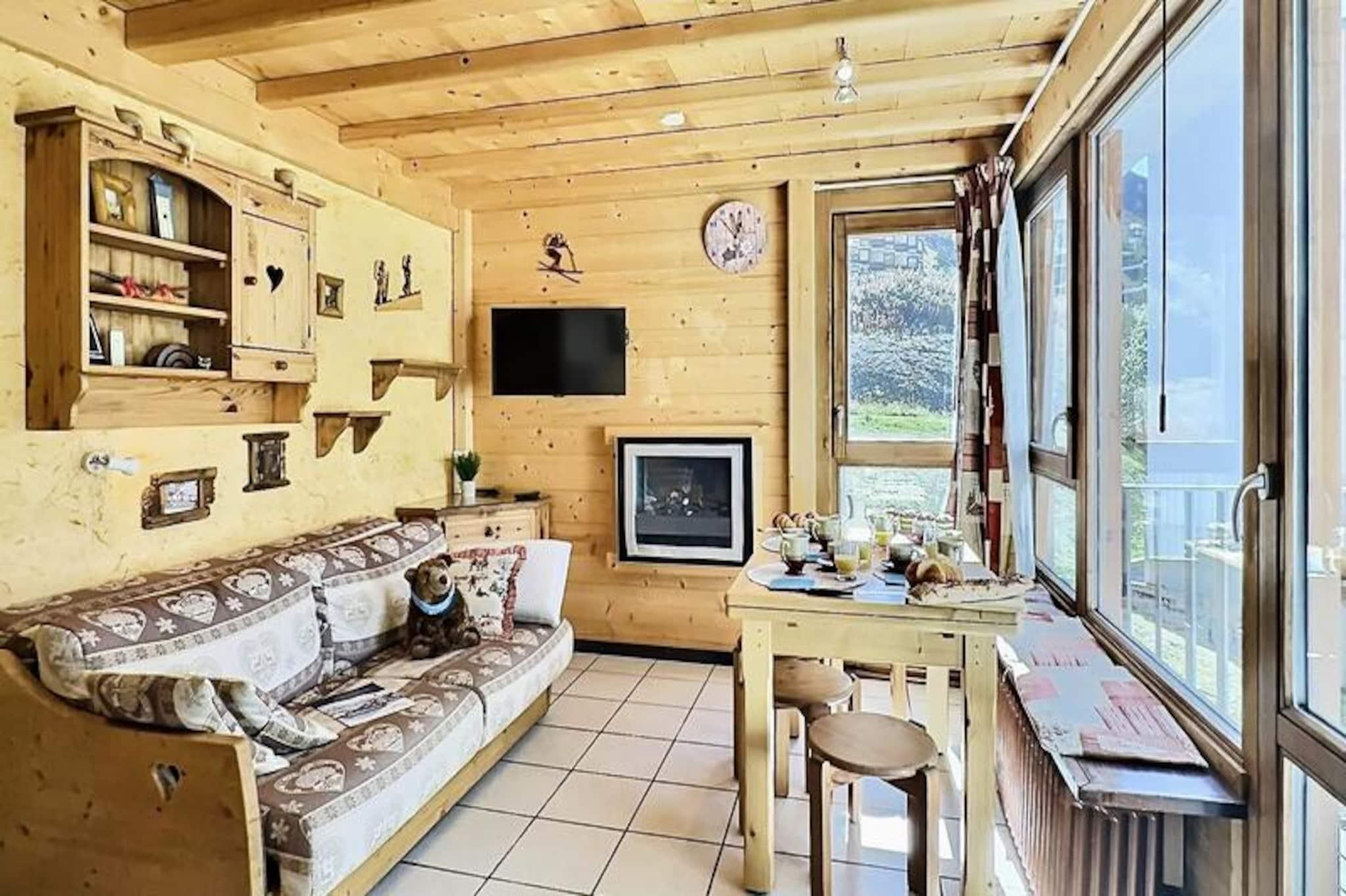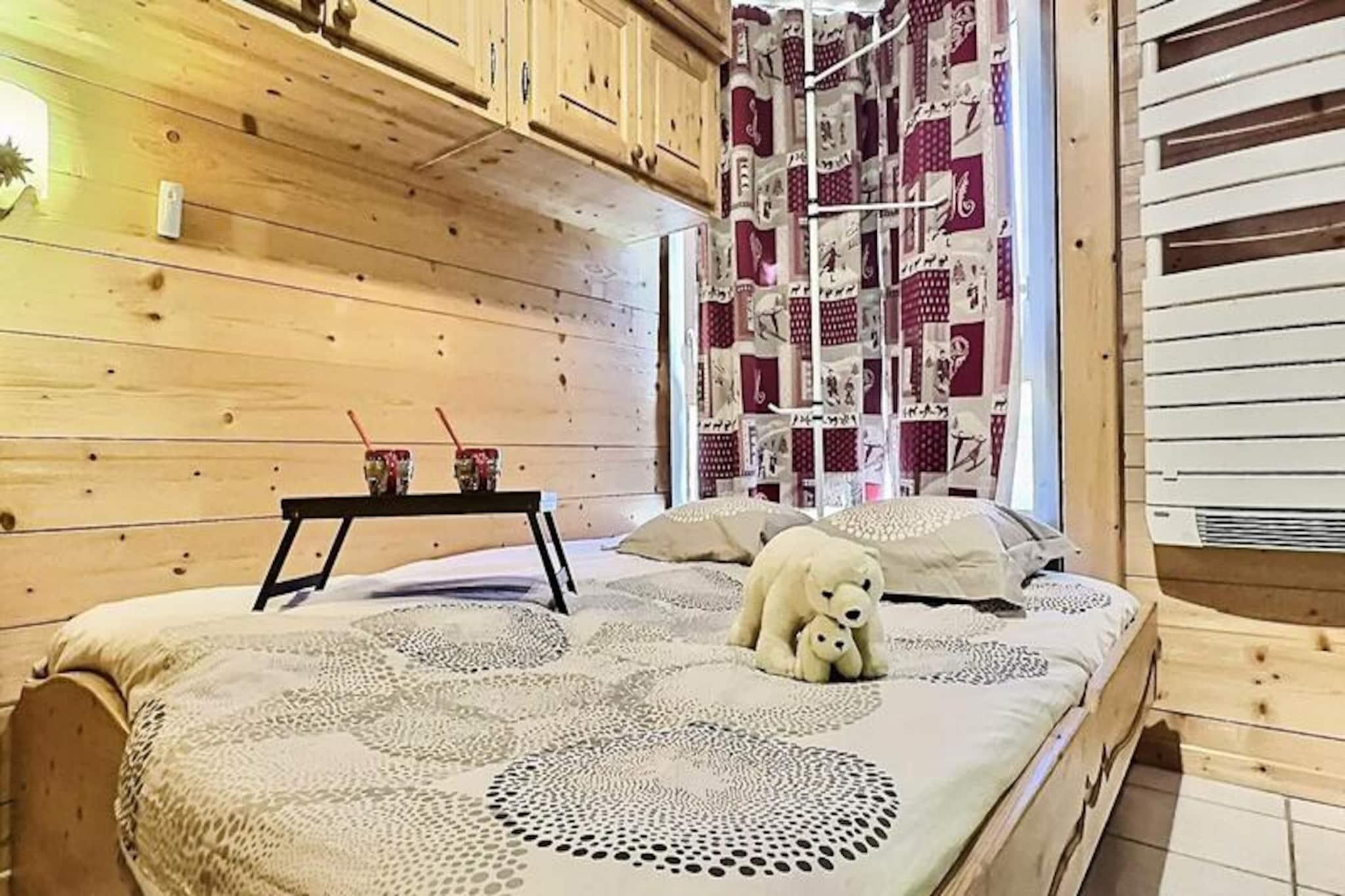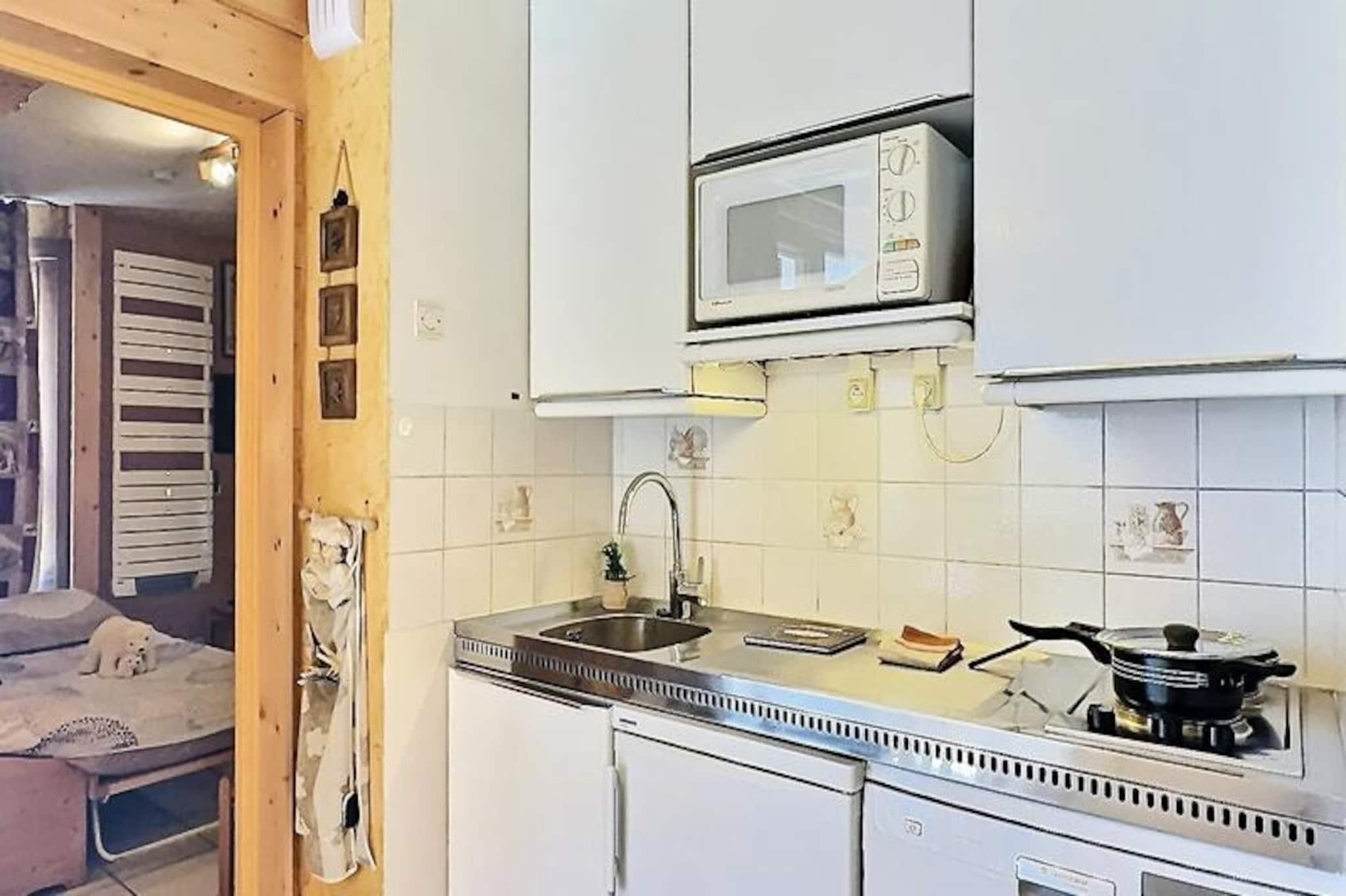 I det fredfyldte Lavachet-distrikt i Tignes tilbyder denne charmerende lejlighed i stueetagen et hyggeligt tilflugtssted for op til fire gæster. En kort fem minutters gåtur forbinder dig med pisterne, skilifterne, skiskolen og de lokale butikker, hvilket gør det til en ideel base for både vintereventyr og sommerferier. Den rolige atmosfære i kvarteret sikrer et fredeligt ophold, samtidig med at du stadig er tæt på det pulserende hjerte af feriestedet. Fra balkonen kan du nyde udsigten over pisterne, der lover spænding og skønhed gennem årstiderne.\n\nLejligheden er 28 m² stor og har en gennemtænkt planløsning for at maksimere komforten. Stuen har en sovesofa, mens soveværelset tilbyder køjesenge og en udtrækssovesofa, hvilket sikrer fleksible sovemuligheder for familier eller små grupper. Køkkenet er fuldt udstyret med elektriske kogeplader, mikrobølgeovn, opvaskemaskine og køleskab, hvilket gør det nemt at tilberede måltider efter en dag med udforskning. Et moderne badeværelse med bruser og separat toilet øger bekvemmeligheden, mens faciliteter som et tv og et skiskab forbedrer dit ophold.\n\nUd over lejligheden tilbyder Tignes uendelige muligheder for eventyr. Om vinteren er pisterne til alle niveauer, mens sommeren forvandler regionen til et paradis for vandreture, mountainbiking og vandsport. Det nærliggende turistkontor giver alle de oplysninger, du har brug for til at planlægge dine aktiviteter, og de lokale butikker og restauranter sikrer, at du er veludstyret og velnæret. \n\nUanset om du søger spændende alpine sportsgrene eller rolige øjeblikke omgivet af betagende natur, er denne lejlighed i Tignes din port til uforglemmelige minder. Med sin førsteklasses beliggenhed og komfortable faciliteter er det det perfekte valg til din næste bjergferie.