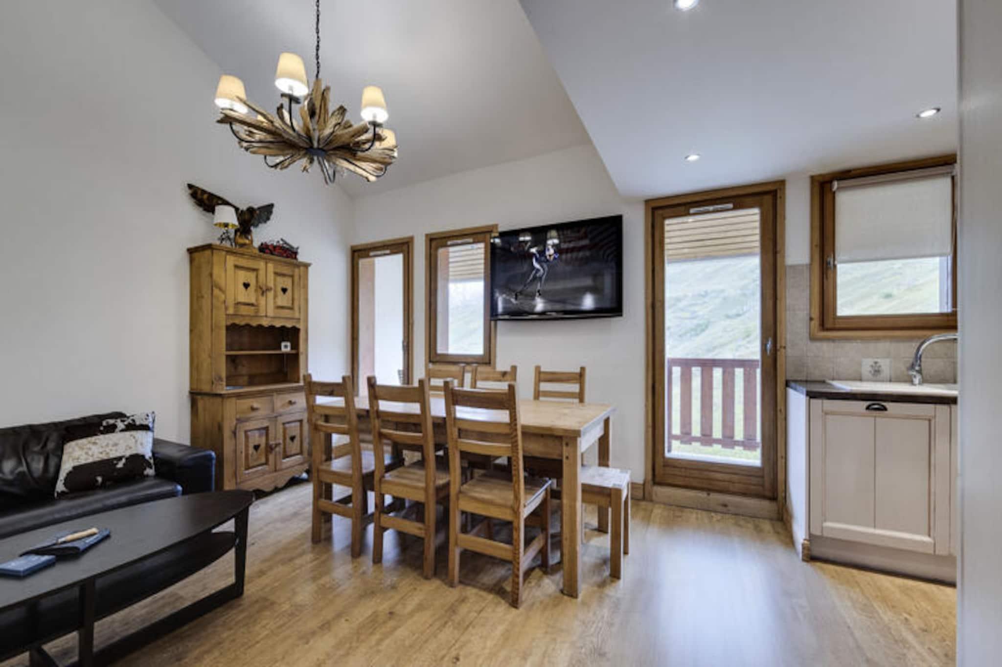 Højt over Tignes le Lacs glitrende vand tilbyder denne elegante duplexlejlighed et roligt alpint tilflugtssted med direkte ski-in/ski-out adgang ved foden af ??Chardonnet-skiliften. Fra sin øverste etage i La Divaria-residensen vil du blive mødt af en betagende udsigt over søen og de omkringliggende tinder, der sætter tonen for en uforglemmelig bjergferie. Uanset om du er her for at svæve gennem uberørte pister eller blot nyde Alpernes rolige skønhed, lover denne ejendom en perfekt balance mellem eventyr og afslapning. Lejligheden er designet til at rumme op til otte gæster og kan prale af en gennemtænkt planløsning på tværs af to etager. Stueetagen har et åbent køkken, en hyggelig stue med fladskærms-tv og en spiseplads, der åbner ud til en balkon, hvor du kan nyde den friske bjergluft. To soveværelser, herunder et dobbeltværelse og et køjesengsværelse til børn, suppleres af et badeværelse, et brusebad og en privat sauna til afslapning efter en dag på pisterne. Ovenpå tilbyder mezzaninen et rummeligt dobbeltværelse og et dobbeltværelse, hvilket sikrer komfort og privatliv for alle gæster. Moderne bekvemmeligheder som Wi-Fi, sengetøj og opredte senge ved ankomst forbedrer dit ophold, mens en privat parkeringsplads og skiboks øger bekvemmeligheden. Beliggende øverst på Rue de la Poste tilbyder boligen nem adgang til det pulserende hjerte af Tignes le Lac. En korttidsparkering ved bygningens indgang gør det nemt at aflæsse bagage, og der er bekvemt placeret genbrugsfaciliteter i nærheden. Ud over skiløb byder området på et væld af aktiviteter, lige fra skøjteløb på søen til at udforske den livlige afterski-scene. Om sommeren forvandles de alpine enge til en legeplads for vandrere og cyklister. Uanset om du søger spændende vintersport eller fredelige sommerferier, er Apartment Divaria 17 din port til det bedste af Tignes. Lad den majestætiske natur og den exceptionelle komfort i denne bolig skabe dyrebare minder i mange år fremover.