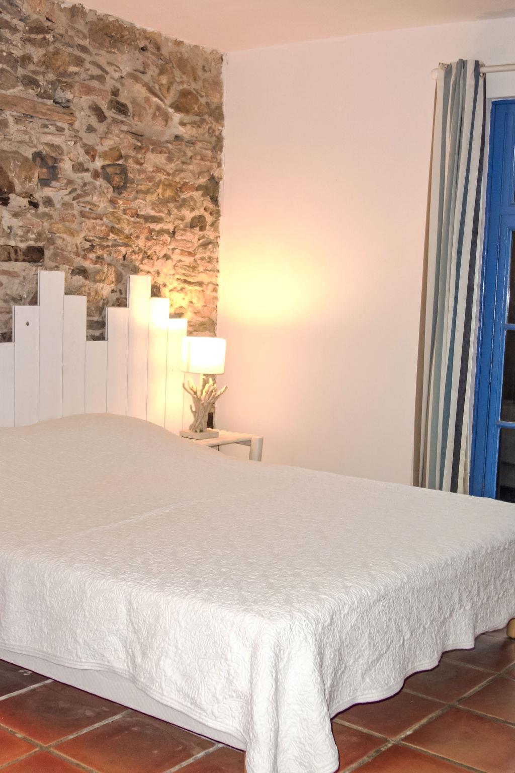 "Oleander", 3-room house 80 m2 on 2 levels. Object suitable for 2 adults + 2 children. Beautiful and antique furnishings: living room with satellite TV, CD-player and DVD. 1 room, Low door height 180 cm with 1 french bed (1 x 160 cm, length 200 cm). Large, open kitchen (mini-oven, dishwasher, 4 ceramic glass hob hotplates, toaster, kettle, microwave, freezer, electric coffee machine) with dining table. Exit to the terrace. Shower, sep. WC. Electric heating. Upper floor: gallery with sloping ceilings with 2 beds (90 cm, length 200 cm). Terrace partly roofed, large terrace 50 m2. Terrace furniture, barbecue, deck chairs (4). View of the garden and Church Sant Nazari de Torderes. Facilities: washing machine, mosquito net. Internet (WiFi). Please note: non-smokers only. Please note: SEASON 2024 Swimming pool UNAVAILABLE Twisting construction on several levels with a central corridor from which one accesses all the rooms (sometimes by a few steps) as well as the large terrace by a steep staircase. Instead of an enclosed bedroom, some sleeping areas are located in an open-plan area (gallery, alcove, etc.).