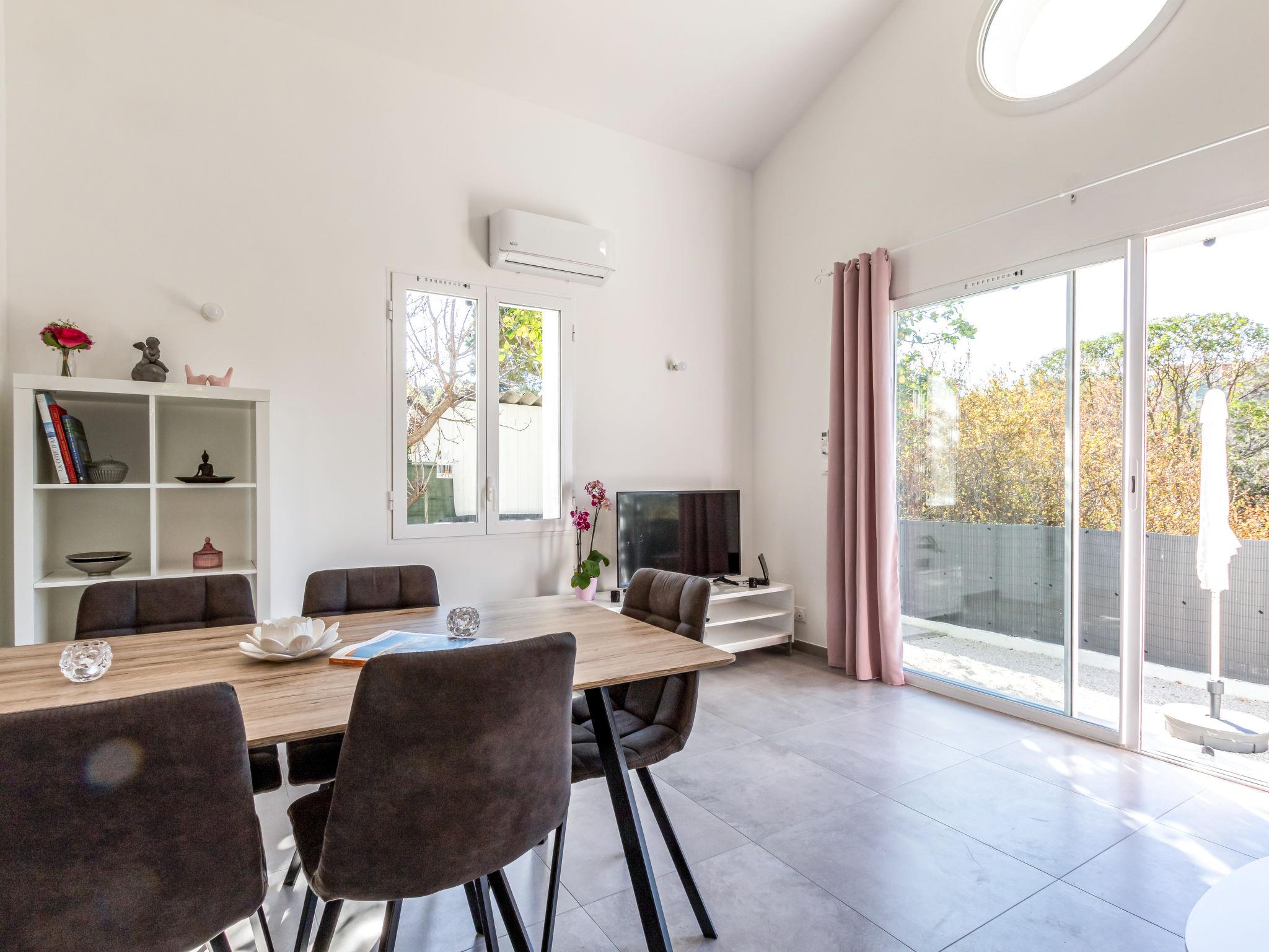 3-room villa 61 m2. Bright, beautiful and modern furnishings: living/dining room with TV (flat screen). Exit to the terrace. 2 rooms, each room with 1 french bed (140 cm, length 190 cm). Kitchenette (oven, dishwasher, 3 induction hot plates, microwave, freezer, electric coffee machine). Shower, sep. WC, double hand-basin. Electric heating, air-conditioning. Large terrace. Terrace furniture, electric barbecue, deck chairs (2). Facilities: washing machine, safe, iron. Internet (WiFi, free). Please note: non-smoking house. TV only FR. Smoke alarm. Offer by a private individual according to Art. 155, IV of CGI. FR8370.117.1
