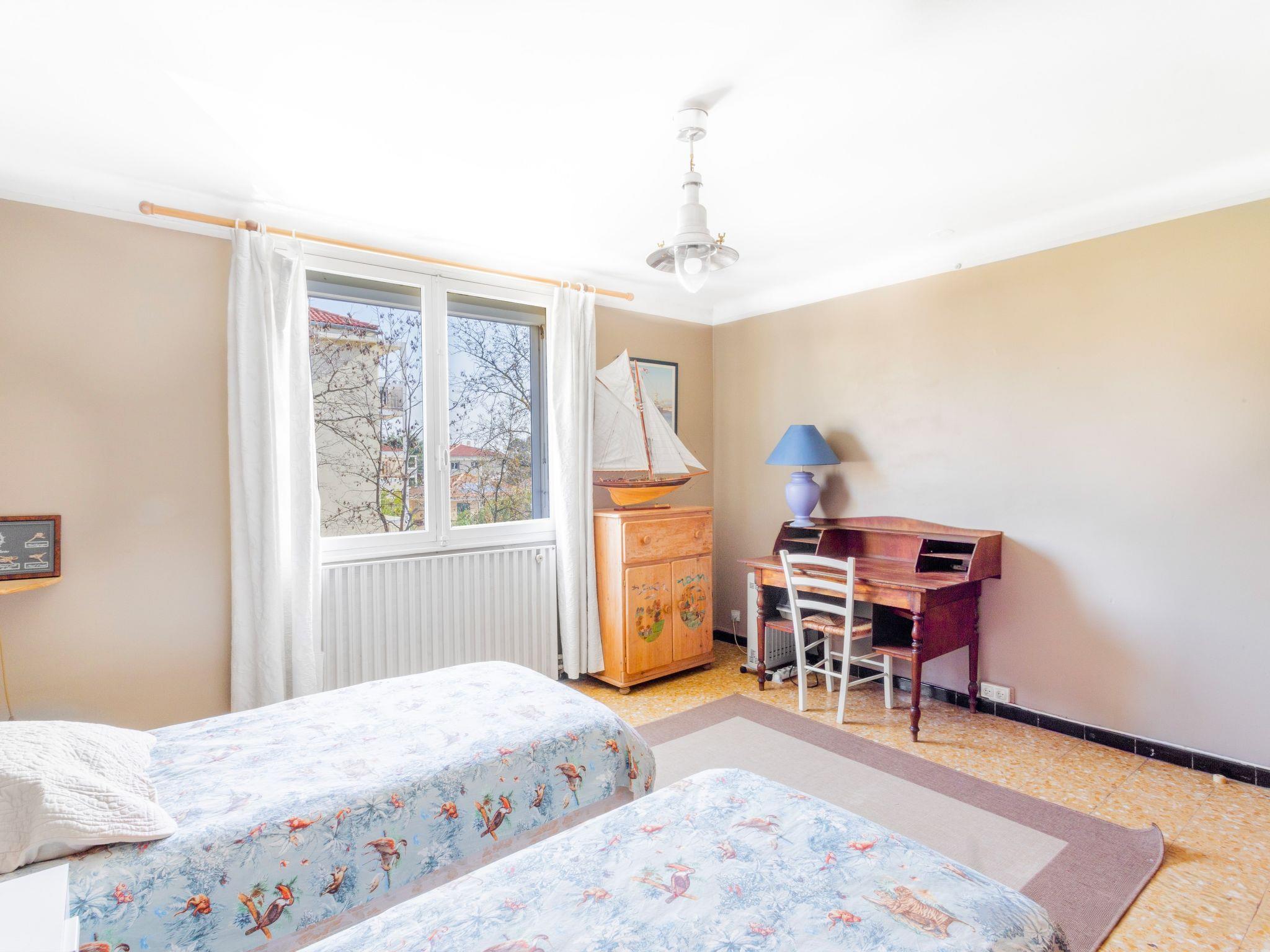 In the district of Serinette 3 km from the centre of Toulon, 7 km from the centre of Le Pradet, 18 km from the centre of Hyeres, in the residential district, 2.2 km from the sea, 2.7 km from the beach. Private: property 640 m2 (fenced), well-kept garden, swimming pool fenced (6 x 4 m, depth 120 - 150 cm, seasonal availability: 01.Jan. - 31.Dec.). Parking (for 3 cars) on the premises. Grocery 2 km, supermarket 2 km, shopping centre 3 km, restaurant 2.5 km, bar 2.5 km, bakery, bus stop 250 m, railway station "Toulon" 3.5 km, sandy beach "Le Mourillon" 2.7 km. Nearby attractions: Cap Brun, Hyeres, Porquerolles, Iles des Embiez, Musee national de la Marine, Presqu'île de Giens. The owner does not accept any youth groups. Neighbourhood highly sensitive to noise. Quietness and good behaviour expected.